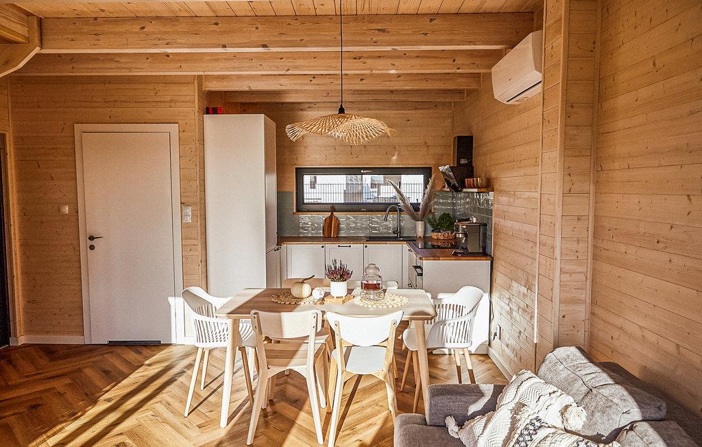 Velkommen til dette hyggelige rækkehus, der med sine hyggelige værelser er de optimale rammer for en hyggelig stund med familien. Efter en dejlig dag på ferie kan I finde jer tilpas i sofaen i stuen, spille brætspil, spise sammen og gennemgå, hvad I har oplevet sammen i stilfulde rammer.