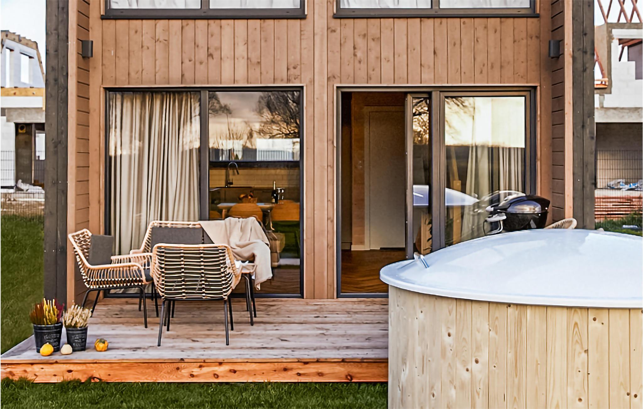 Skab varige ferieminder i dette indbydende feriehus med udendørs spabad nær havet.