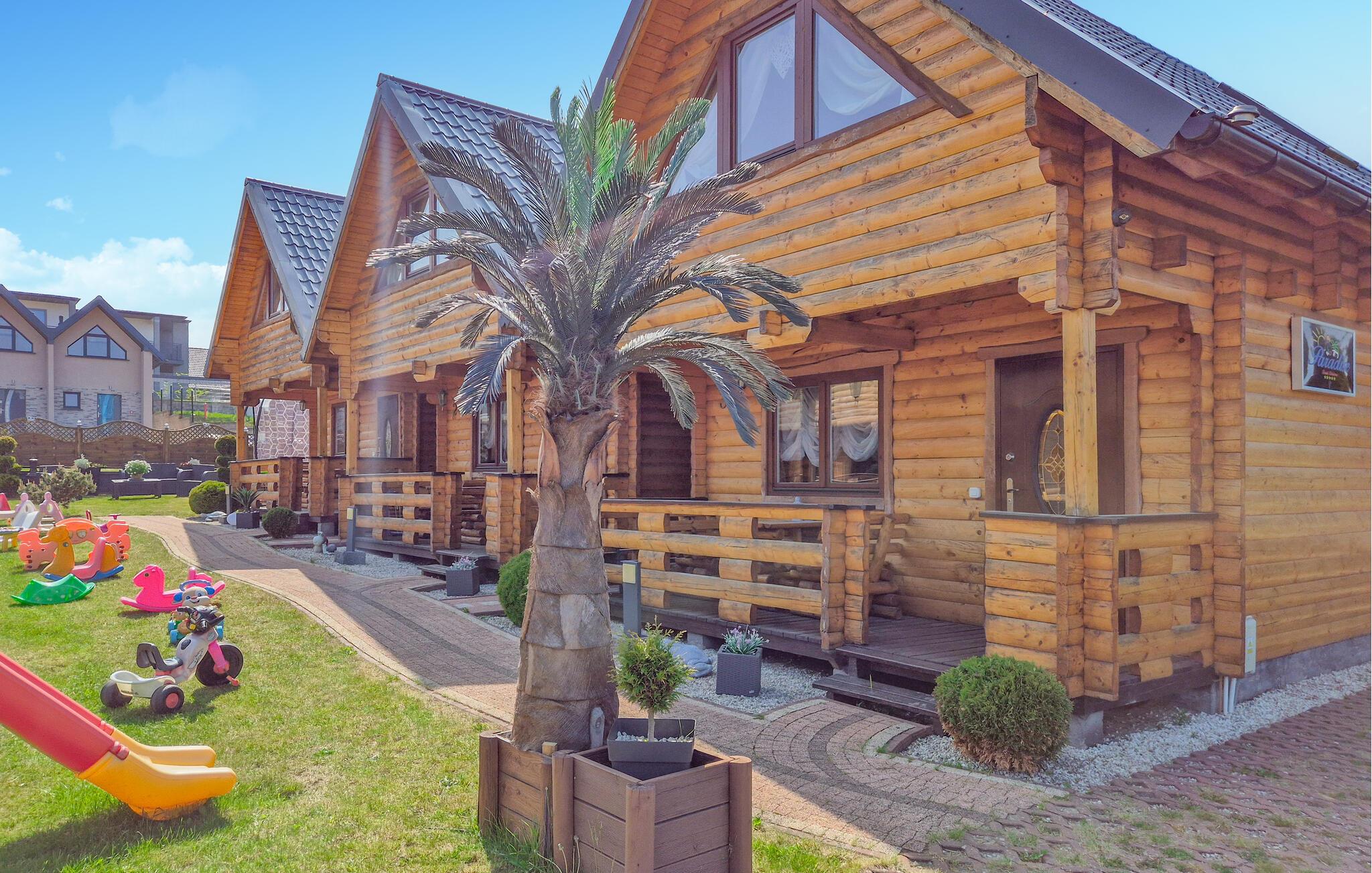 Velkommen til dette indbydende træhus, der ligger i en hyggelig park tæt på stranden og danner rammen om et vidunderligt ophold ved familien. Huset er flot og kompakt indrettet med masser af træ over hele linjen, der giver det indre et varmt og rustikt udtryk. Sammen med de fine faciliteter får I her en skøn base, hvor I kan slappe af efter dagens udflugter, tilberede en lækker aftensmad i køkkenet og flade ud i sofaen med en god film til sent.