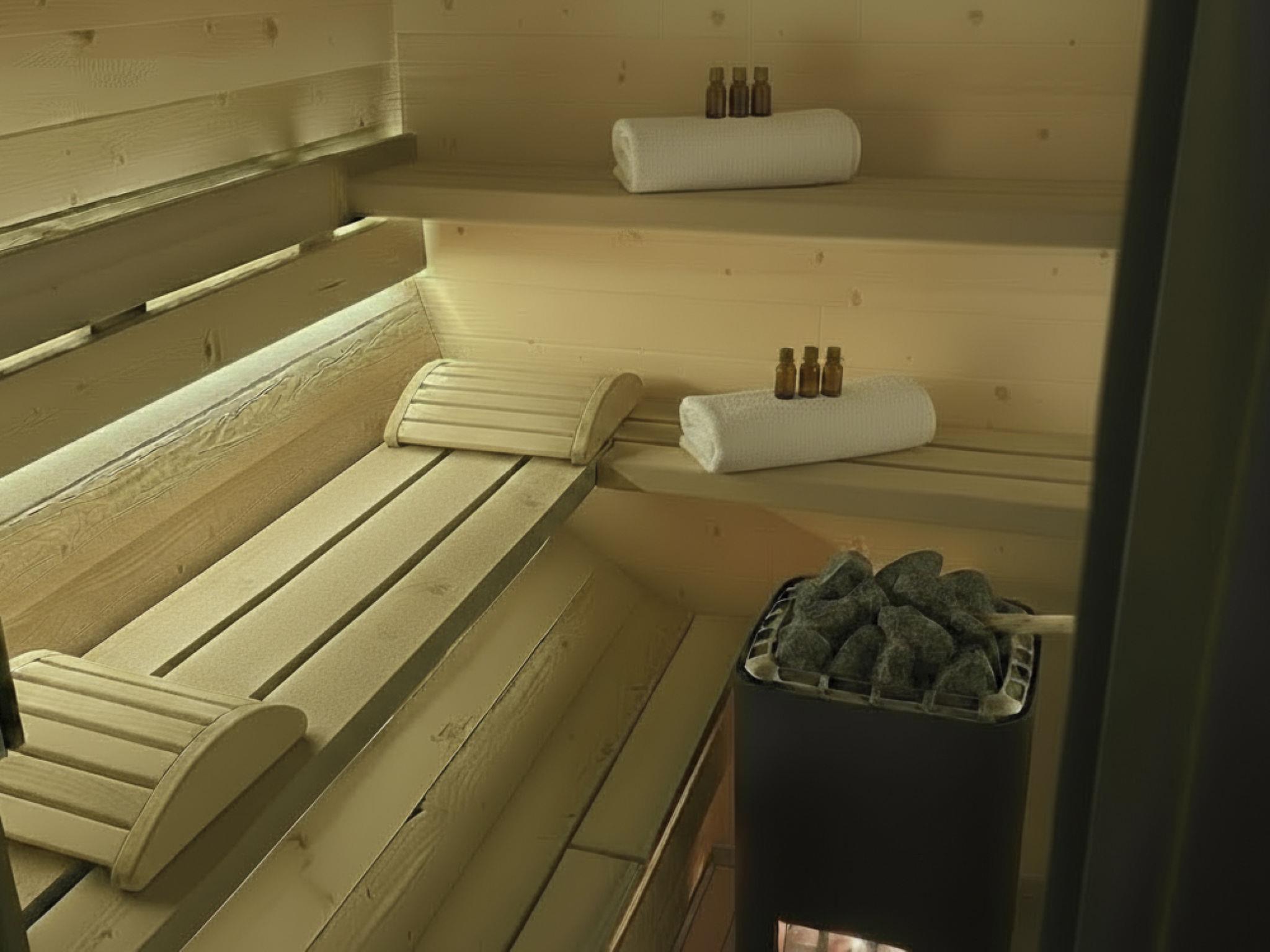 Inside, you will find an ambience that invites you to feel at home. Underfloor heating in all rooms ensures warmth and cosiness all year round. The fully equipped kitchen with induction hob, dishwasher, filter coffee machine and kettle leaves nothing to be desired. A fireplace is available for cosy evenings, while you can relax in the sauna for your exclusive use. There is even a washing machine for your convenience.
