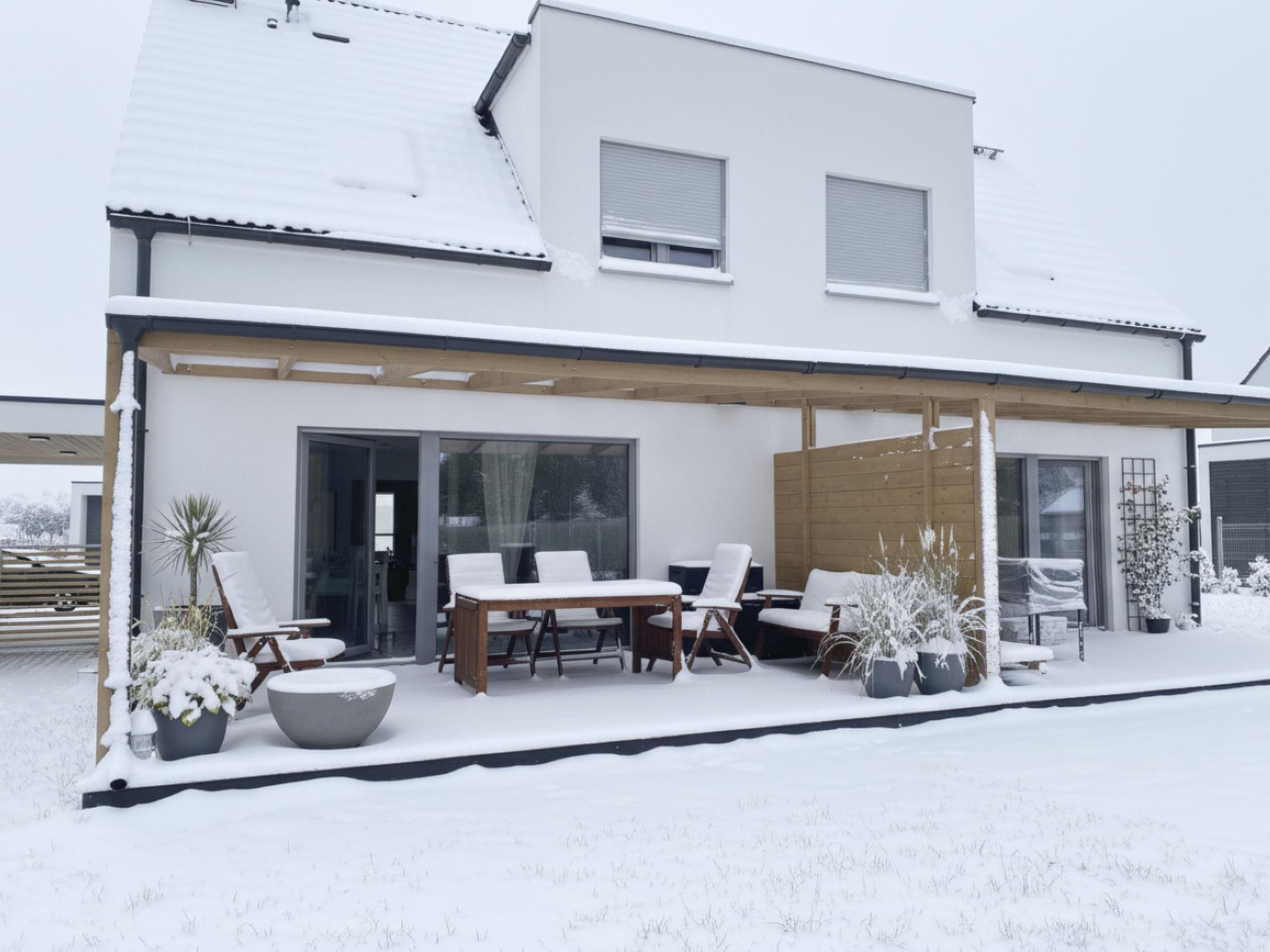 The outdoor area is characterised by a fully fenced plot, which is particularly suitable for guests with pets. You can enjoy sunny days and balmy evenings on the terrace. The private garden offers plenty of space for relaxation and outdoor activities, making every moment feel like a holiday.