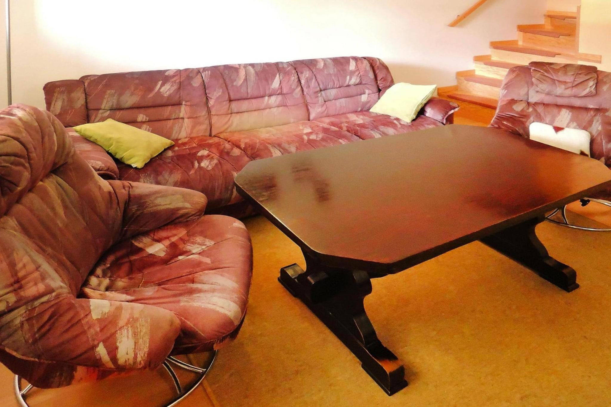 Stueetage: (åbent køkken(elkedel, cooker, komfur(Komfur med fire kogeplader, gas), espressomaskine, køle-fryseskab), Stue/soveværelse(enkeltsovesofa, Fjernsyn(parabol, Tyske TV-kanaler)), badeværelse(bruser, håndvask, toilet)) På 1. etage: (soveværelse(dobbeltseng), soveværelse(2x enkeltseng)) varme(olie), have(privat), havemøbler, grill, parkering