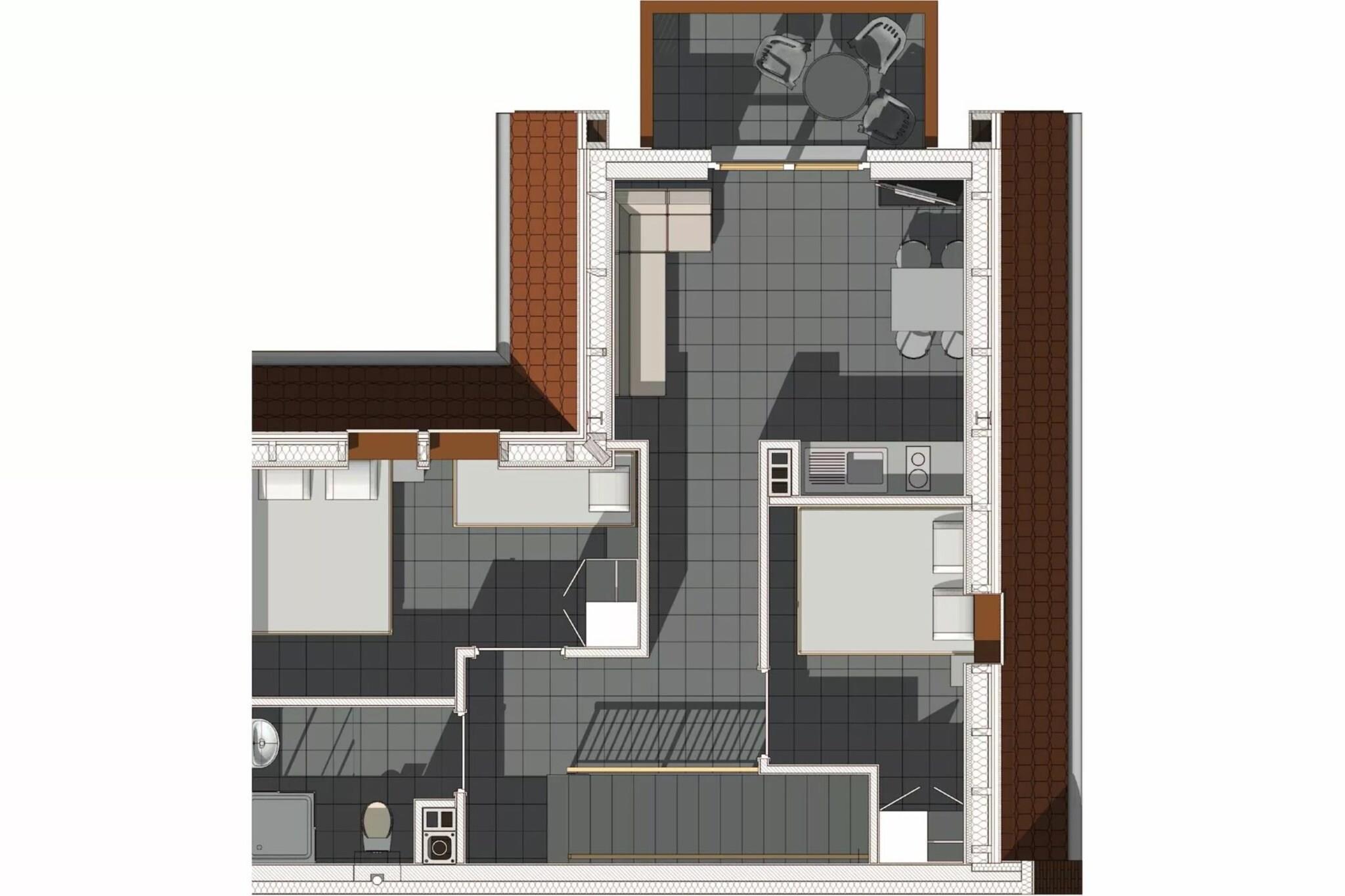 På 1. etage: (åbent køkken(kogeplade(Komfur med to kogeplader, elektrisk), elkedel, kaffemaskine, opvaskemaskine , køle-fryseskab), stue / spisestue(dobbeltsovesofa, Fjernsyn(fladskærm, Tyske TV-kanaler), spisebord(5 personer)), soveværelse(enkeltseng, dobbeltseng), soveværelse(enkeltseng, enkeltseng), badeværelse(bruser, håndvask, toilet, føntørrer)) Reception, Internetadgang, Legeområde, Græsplæne, vaskemaskine(deles med andre gæster, betalt), balkon, varme(central, gulvvarme), have(deles med andre gæster, indhegnet, 3000 m2), havemøbler, solstole, grill(trækul), parkering, trampolin(deles med andre gæster), Parasol, sandkasse(deles med andre gæster), rutsjebane(deles med andre gæster), bordtennisbord(deles med andre gæster), bordfodbold(deles med andre gæster), fitnessapparater(deles med andre gæster), barnestol, strygebræt, strygejern, Gyngestativ, baby crib(free)