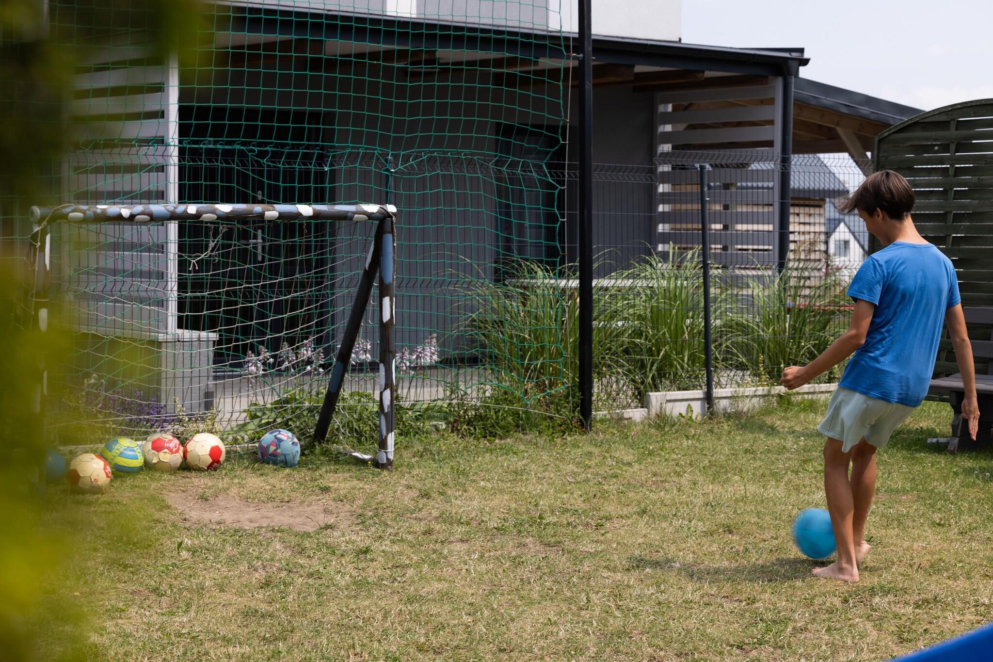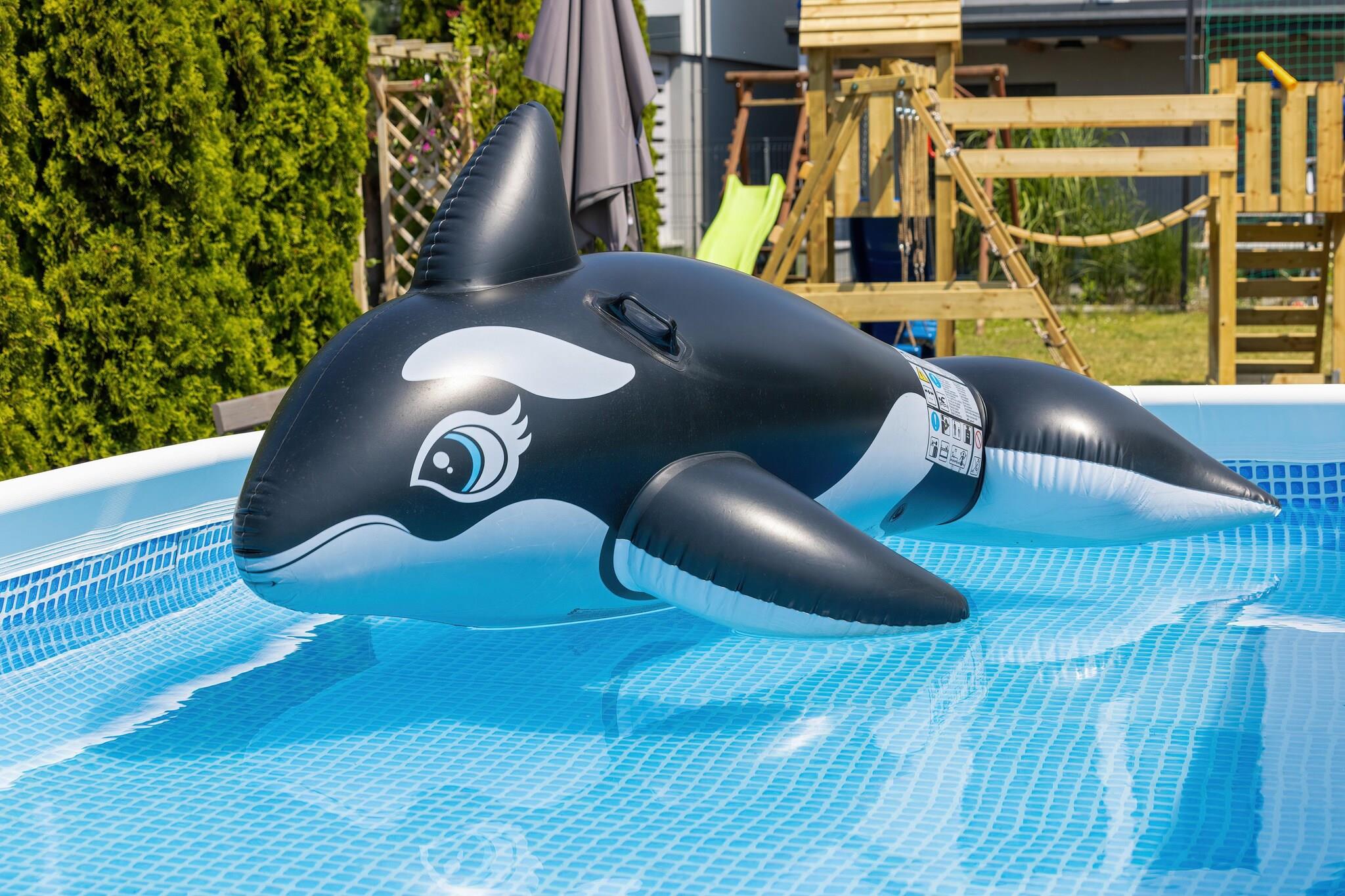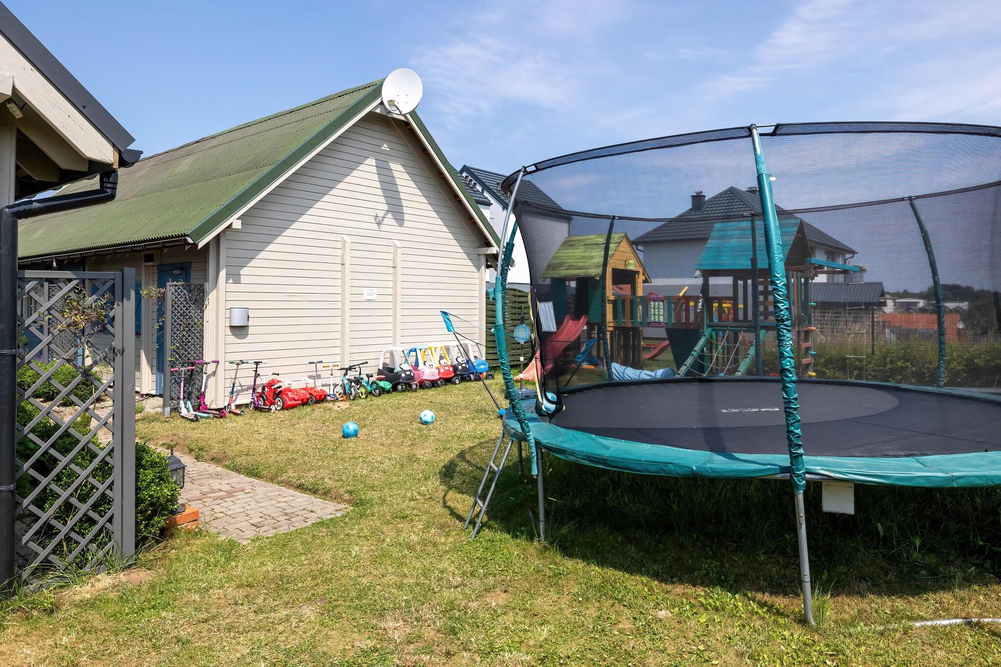 Stueetage: (tekøkken(elkedel, brødrister, komfur(Komfur med to kogeplader, elektrisk), espressomaskine, mikrobølgeovn, køle-fryseskab), stue / spisestue(Fjernsyn(Tyske TV-kanaler), spisebord, sofahjørne), badeværelse(bruser, håndvask, toilet)) På 1. etage: (soveværelse(enkeltseng, dobbeltseng), soveværelse(enkeltseng, dobbeltseng)) Parkering, Børne swimmingpool, Havemøbler, grill, balkon eller terrasse, trampolin, liggestole, sandkasse, legeredskaber, rutsjebane, barnestol, baby crib(free)