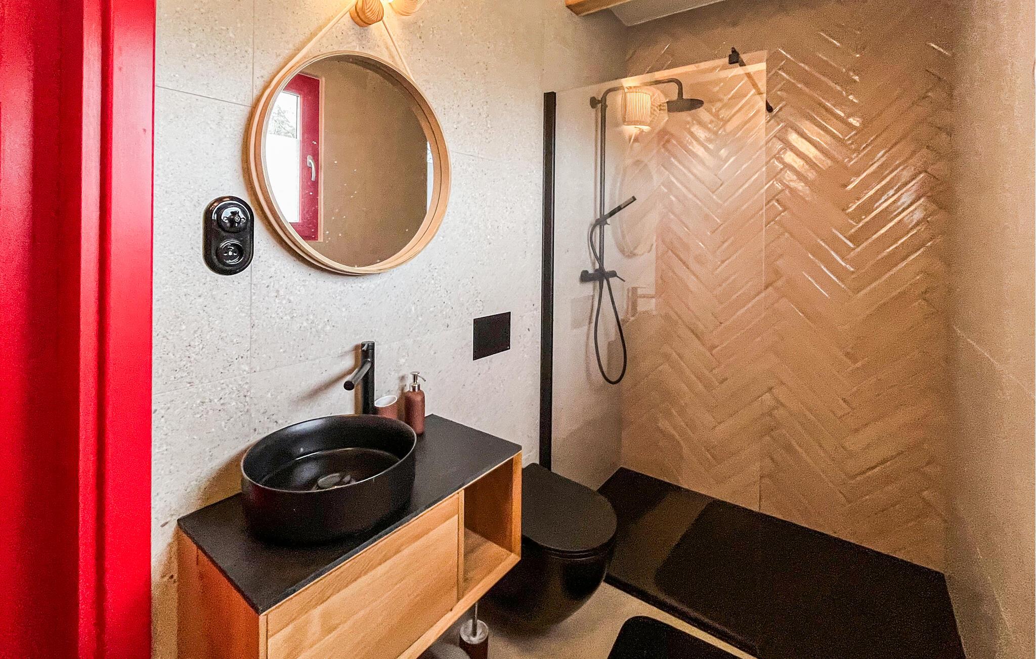 Badeværelse (nr. 1) - WC. Varmt og koldt vand. Bruser