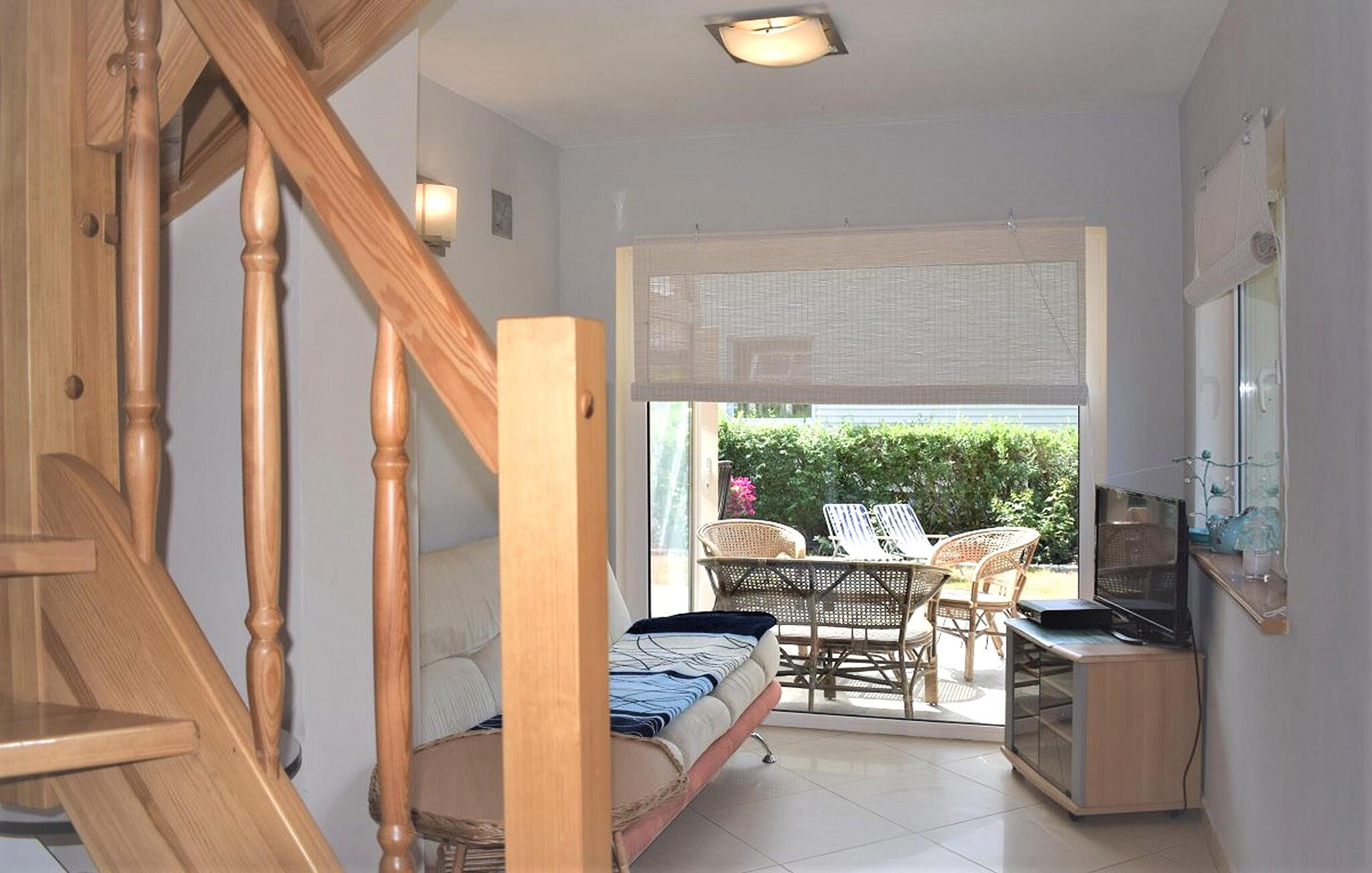 Læg hverdagen bag jer og nyd en afslappende pause for to i denne lejlighed, smukt beliggende ikke langt fra havet. Brug de lyse rum som base for dejlige dage på stranden og udforskning af området og glæd jer til hyggelige aftener på sofaen efter en begivenhedsrig dag.