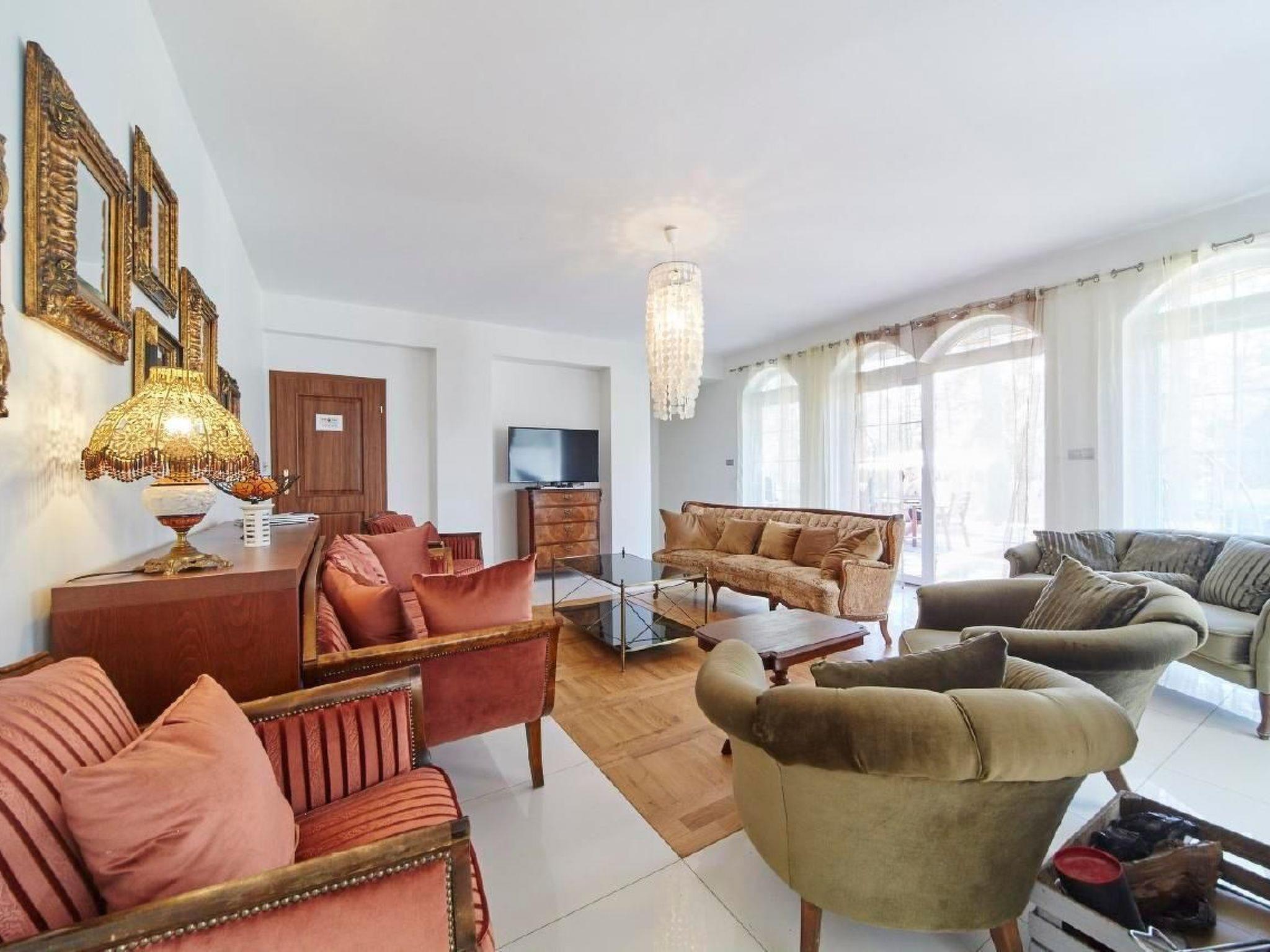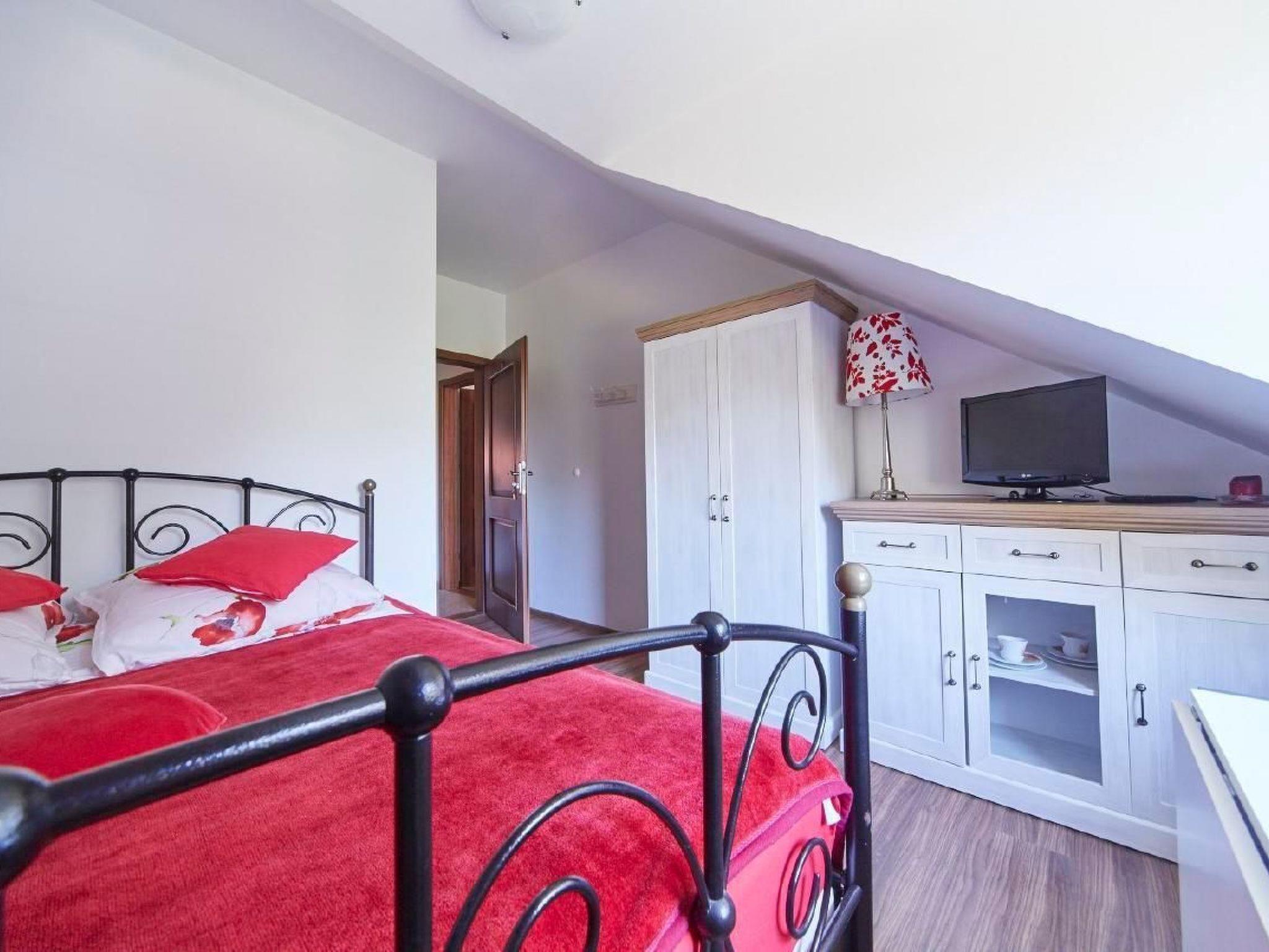 The interior of our house is synonymous with comfort and a homely atmosphere. Guests have at their disposal a spacious living room with a fireplace to keep warm on chilly evenings, a kitchen lounge fully equipped with the necessary accessories and a club lounge, the ideal place to relax. For the little ones, we have prepared a cot, allowing families with small children to stay comfortably. In addition, the property is equipped with a sauna, which will allow you to fully relax and unwind.