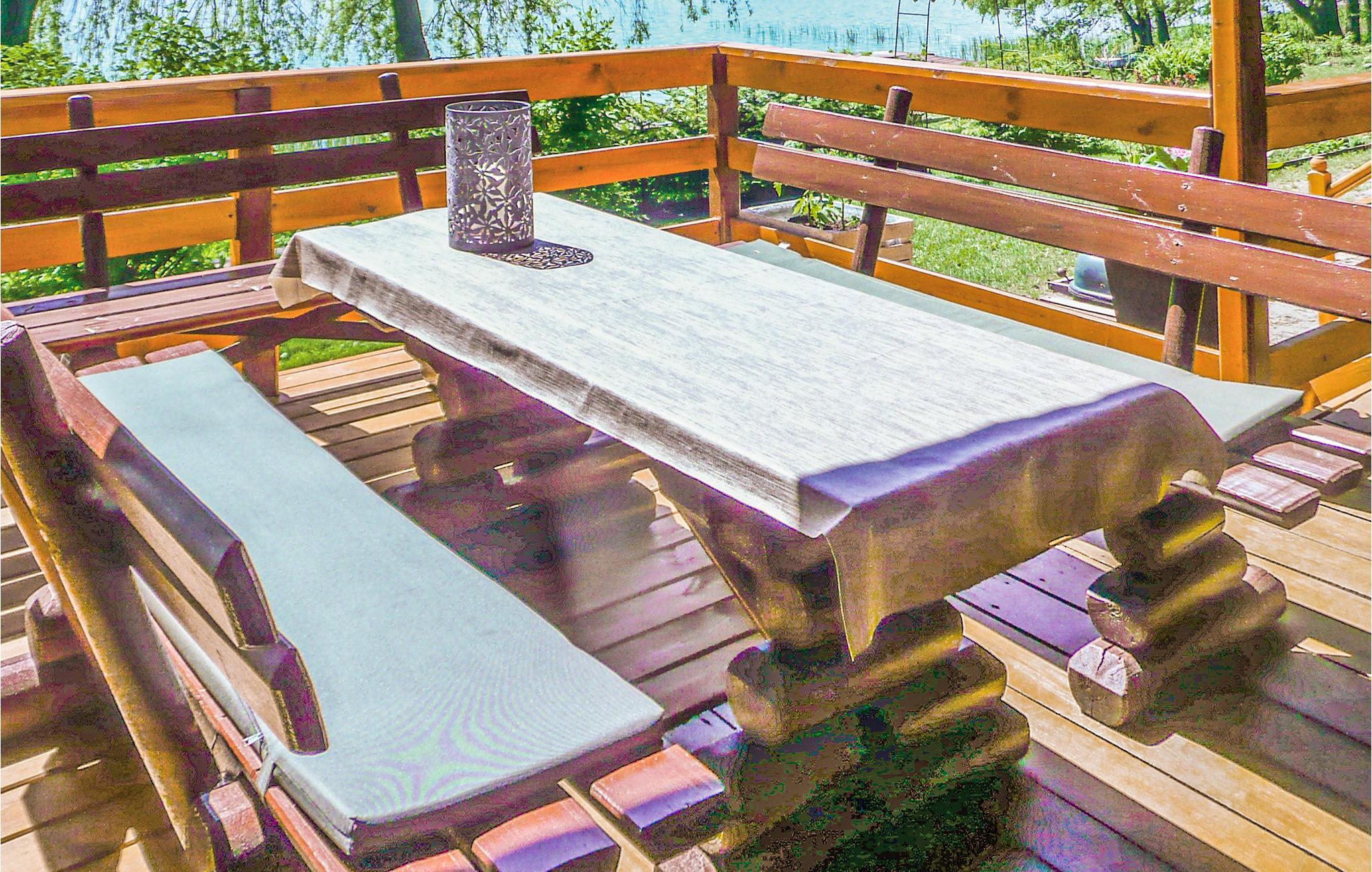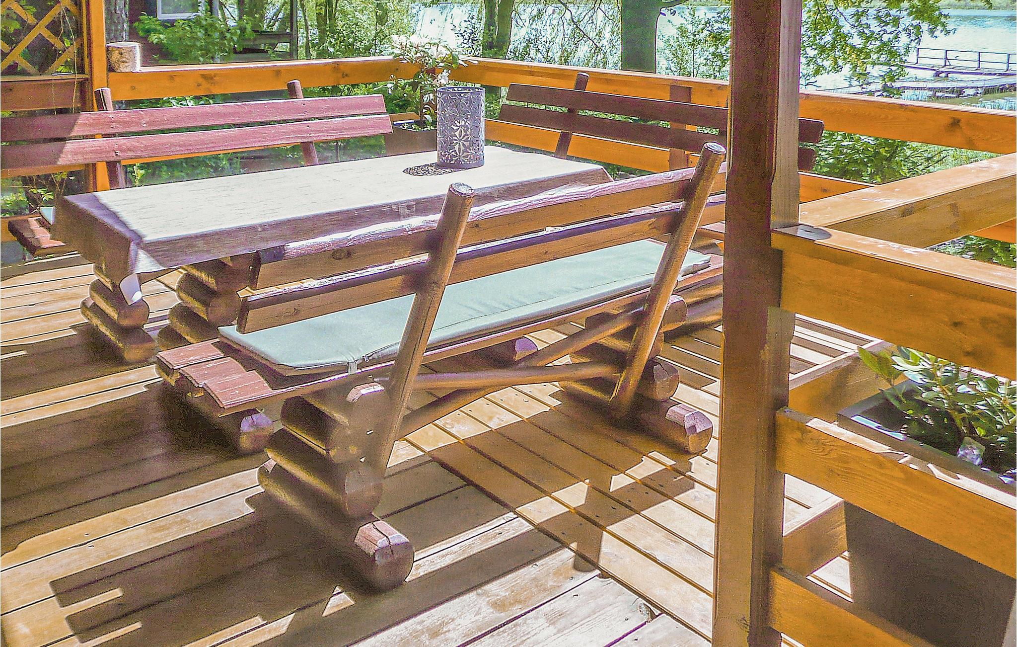 Gå udenfor og tilbring tid på den overdækkede terrasse med træmøbler. Tag plads på bænkene og nyd nærheden til vandet. Lad udsigten vandre over søen eller Læn jer tilbage i de stillede liggestole. Udforsk haveområdet, der er udstyret med enkle siddepladser eller gå direkte til kysten, hvor gangstier fører ud i vandet.