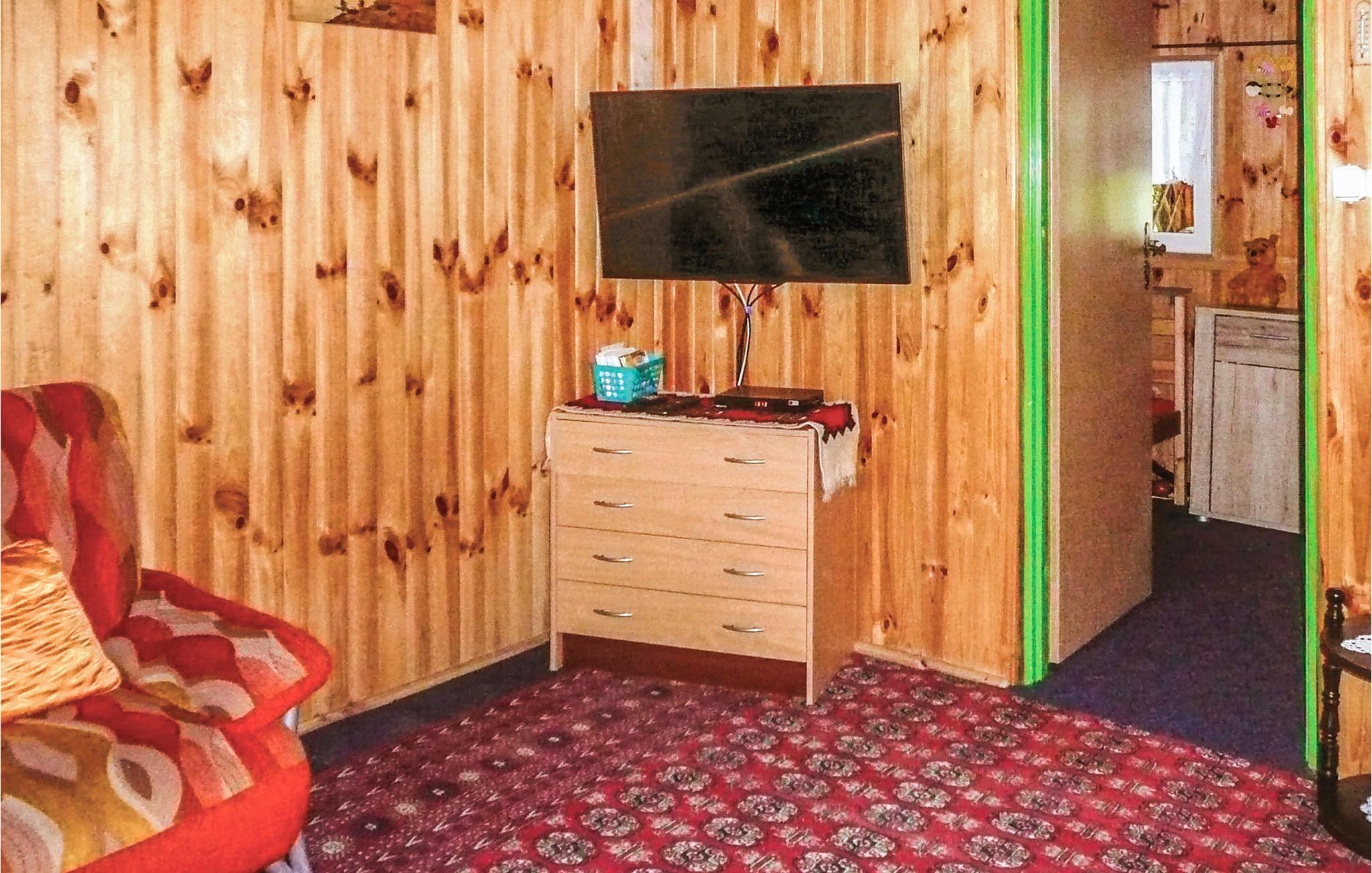 Jeres enkle feriehus ligger lige ud til Pauzenskie-søen og tilbyder indkvartering tæt på naturen. I bor i Arizona-feriehuskomplekset, hvor flere huse ligger på en fælles grund. find jer til rette i interiøret, der er møbleret med møbler i forskellige aldre. Læn jer tilbage i de komfortable lænestole eller spis ved det lille bord med udsigt over pejsen. Tilbered jeres måltider i det funktionelle køkken og organiser jeres ophold, som I ønsker.