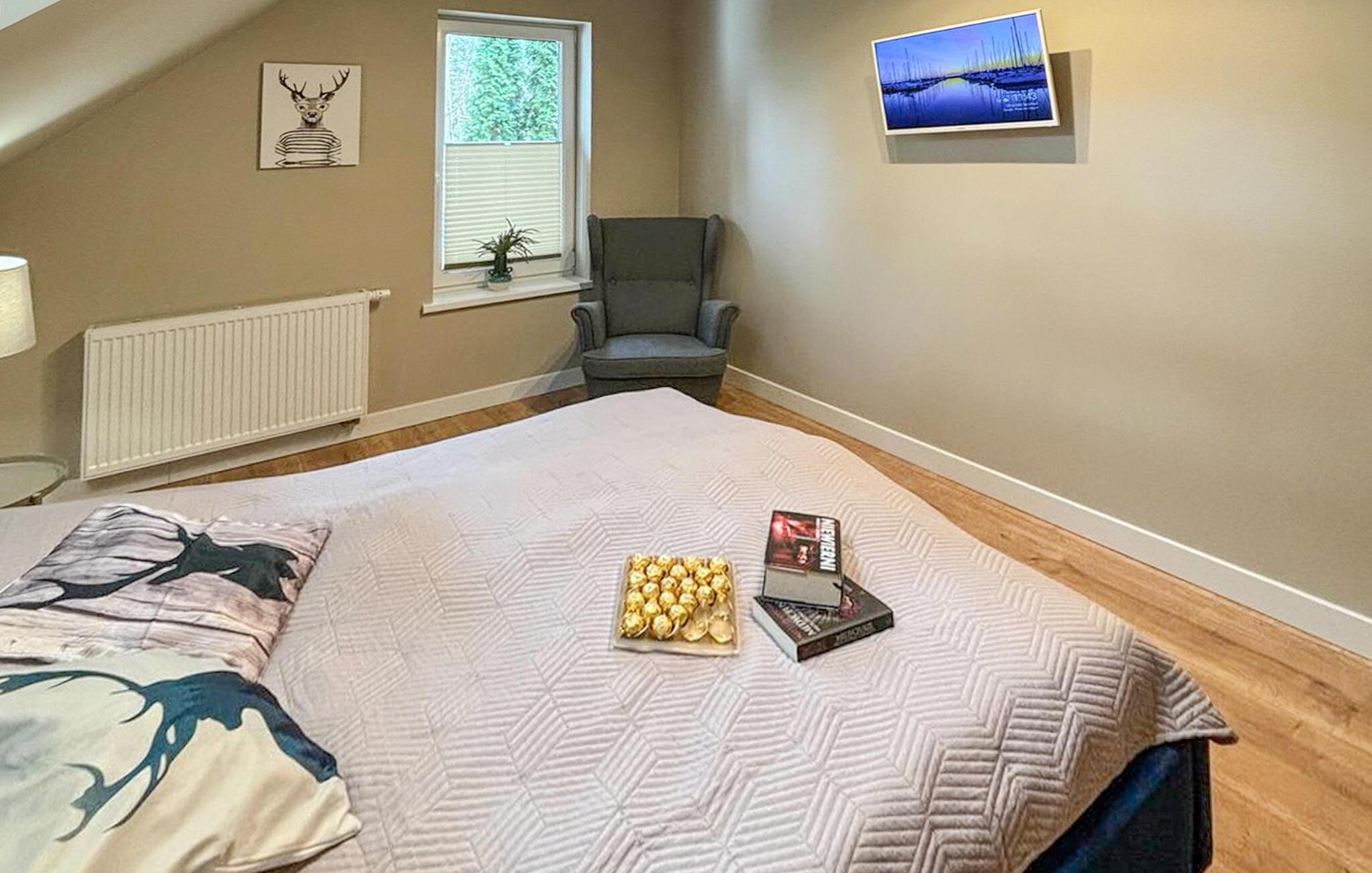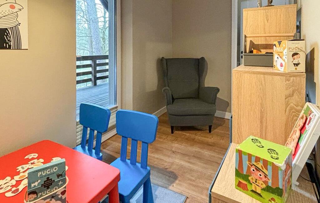 I dette komfortabelt indrettede feriehus vil jeres børn føle sig lige så godt tilpas som de voksne. Lad de små lege i det farverige legerum, mens I svinger grydeskeen i det indbydende køkken. Tænd op i brændeovnen, synk ned i den komfortable sofagruppe med en god bog, eller tilbring tiden med en hyggelig spilleaften.