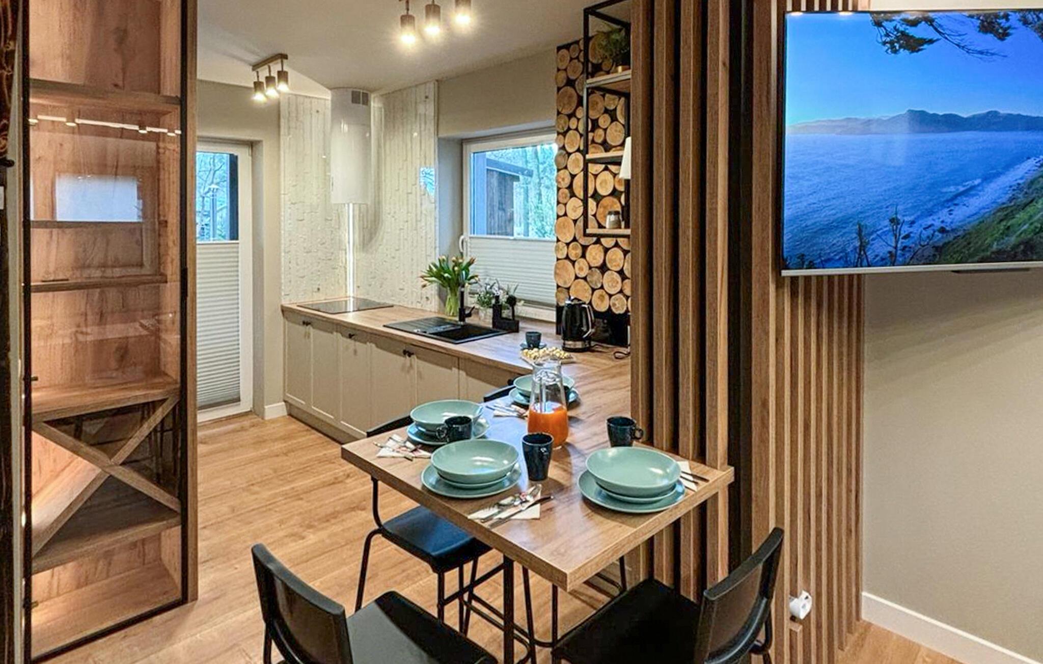 På solrige dage kan I nyde morgenmaden på træterrassen og beundre udsigten til det grønne landskab. Forkæl jer selv med afslappende øjeblikke i spabadet, og lad dagens oplevelser bundfælde sig over et glas vin.