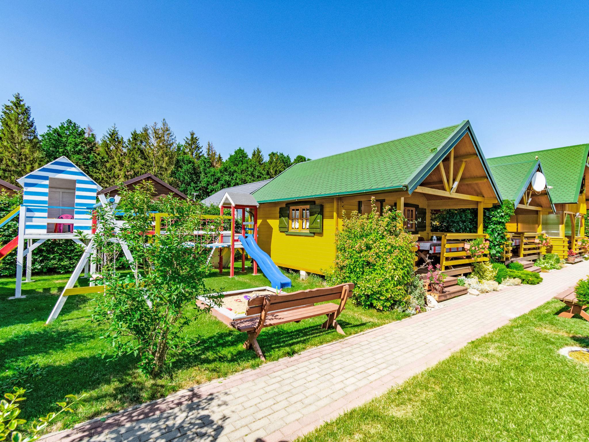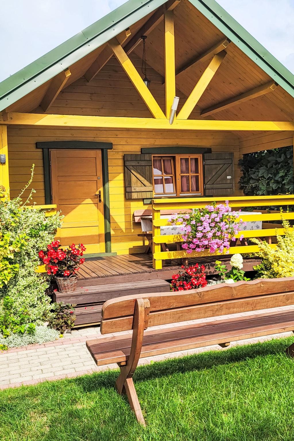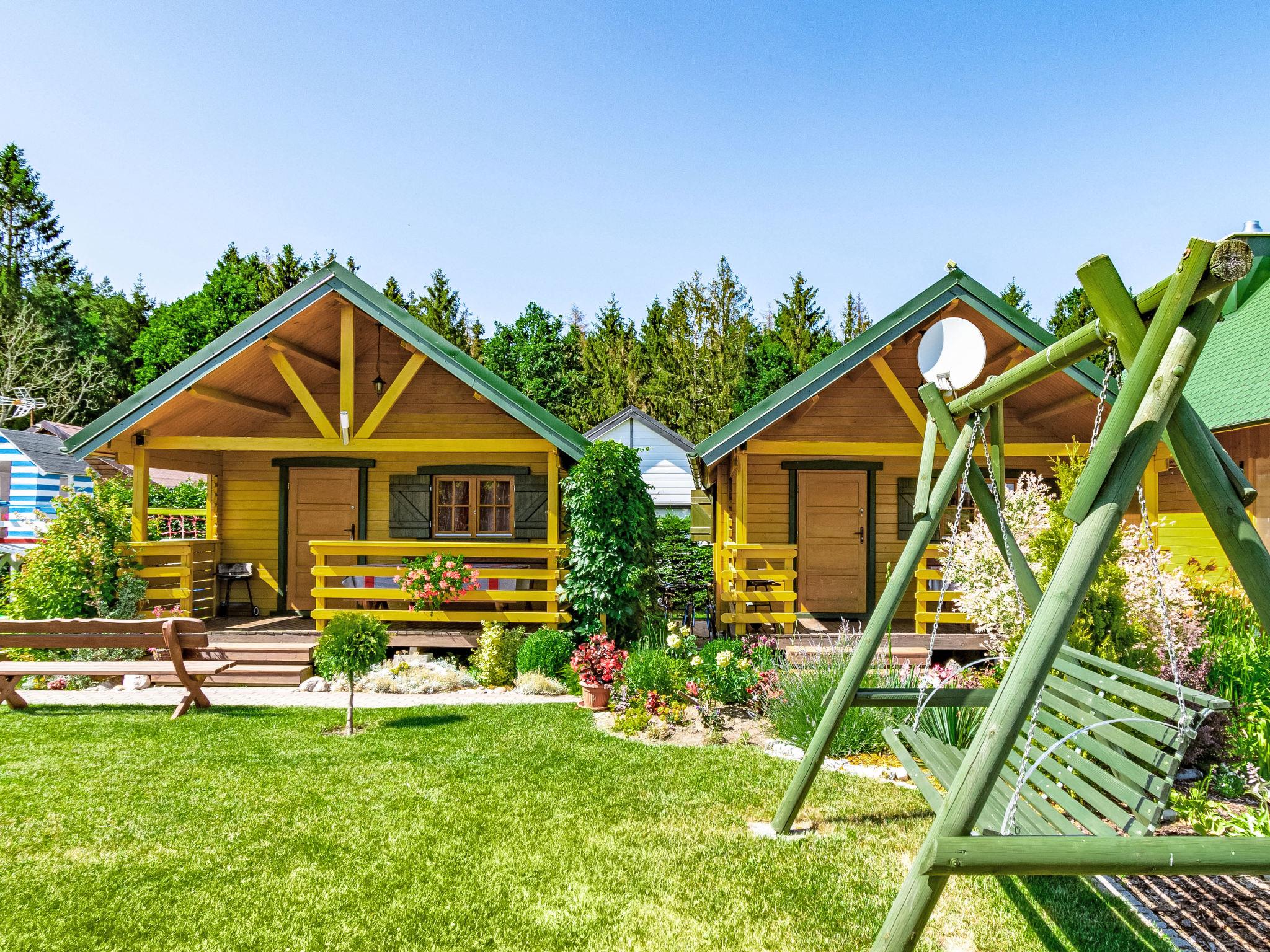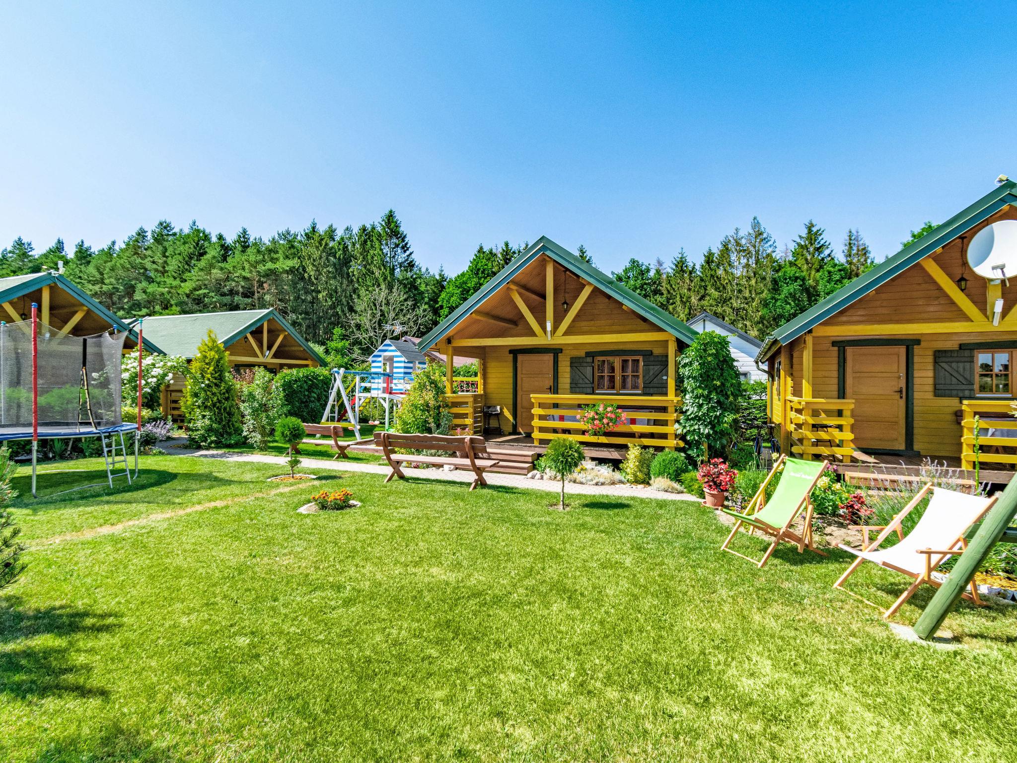 Cosy holiday village "Zacisze Baltyku", built in 2016, renovated in 2020. On the outskirts, in a sunny position, 1 km from the beach, in the countryside. For shared use: property 1'200 m2 (fenced), well-kept garden, meadow. Children's playground (slide, swing, sandbox). In the house: WiFi, trampoline, tumble dryer. Motor access to the grounds (via unmade road). Parking at the house. Shop, grocery 900 m, supermarket 15 km, restaurant 900 m, bus stop 1.1 km, sandy beach 1 km, indoor swimming pool 5 km, public bathing area 1 km. Tennis 4 km, minigolf 4 km, riding stable 4 km. Nearby attractions: Jaroslawiec 4 km, Plaza Polski Dubaj 4 km, Motylarnia 4 km. Please note: the photograph shows a typical example. Additional accommodations can be booked. The holiday properties may differ in living space, floorplan, equipment and furnishing.