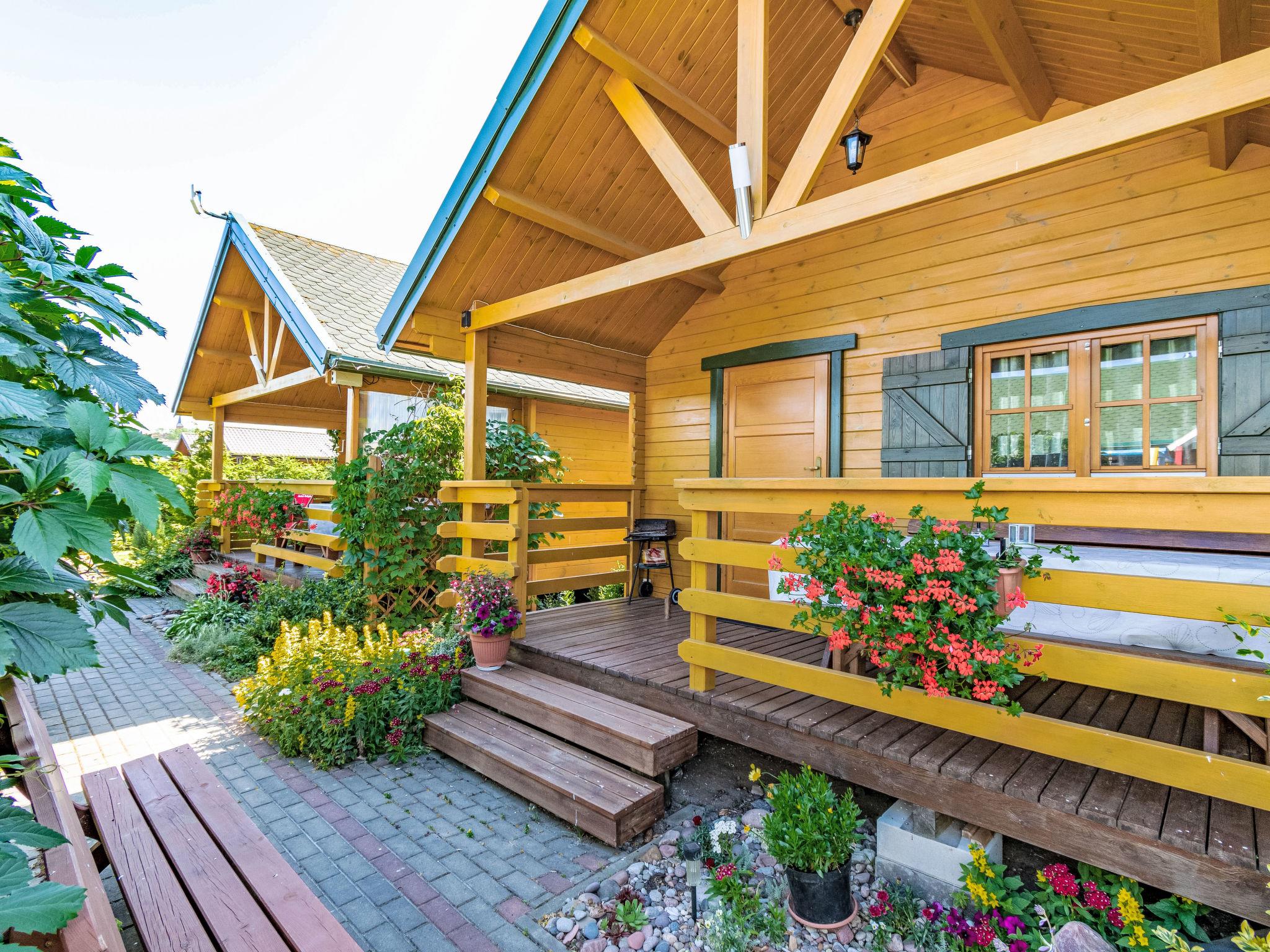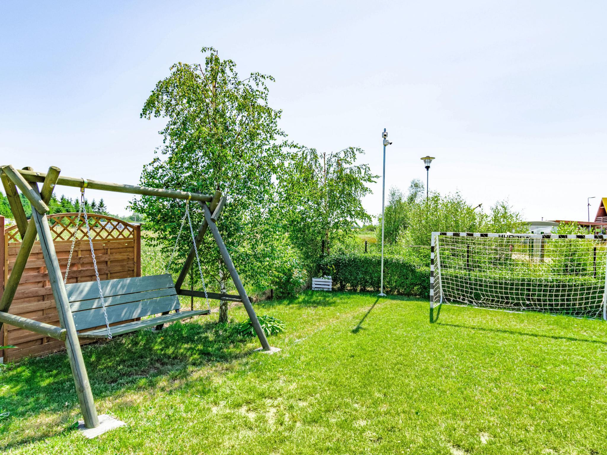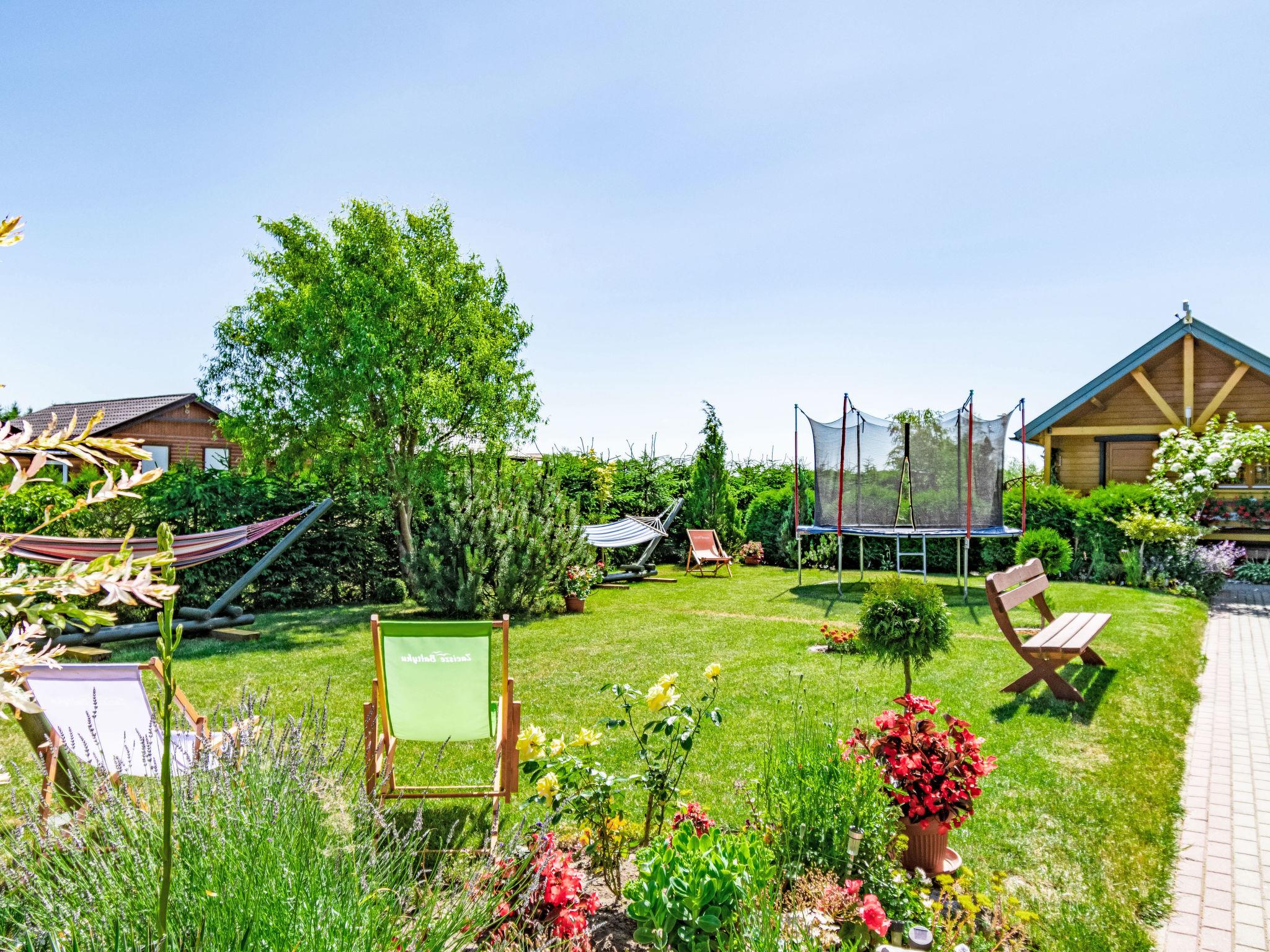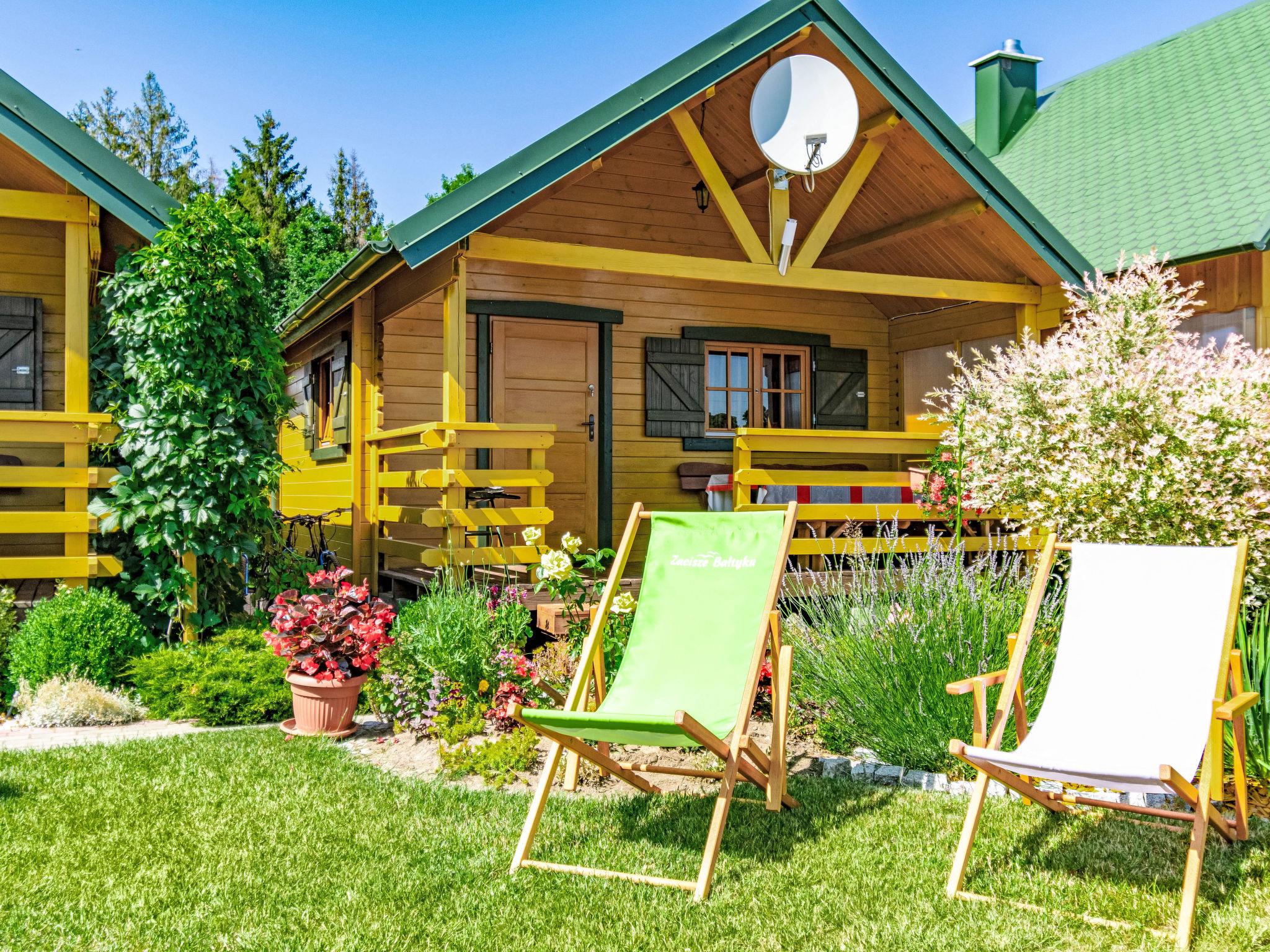 Cosy holiday village "Zacisze Baltyku", built in 2016, renovated in 2020. On the outskirts, in a sunny position, 1 km from the beach, in the countryside. For shared use: property 1'200 m2 (fenced), well-kept garden, meadow. Children's playground (slide, swing, sandbox). In the house: WiFi, trampoline, tumble dryer. Motor access to the grounds (via unmade road). Parking at the house. Shop, grocery 900 m, supermarket 15 km, restaurant 900 m, bus stop 1.1 km, sandy beach 1 km, indoor swimming pool 5 km, public bathing area 1 km. Tennis 4 km, minigolf 4 km, riding stable 4 km. Nearby attractions: Jaroslawiec 4 km, Plaza Polski Dubaj 4 km, Motylarnia 4 km. Please note: the photograph shows a typical example. Additional accommodations can be booked. The holiday properties may differ in living space, floorplan, equipment and furnishing.