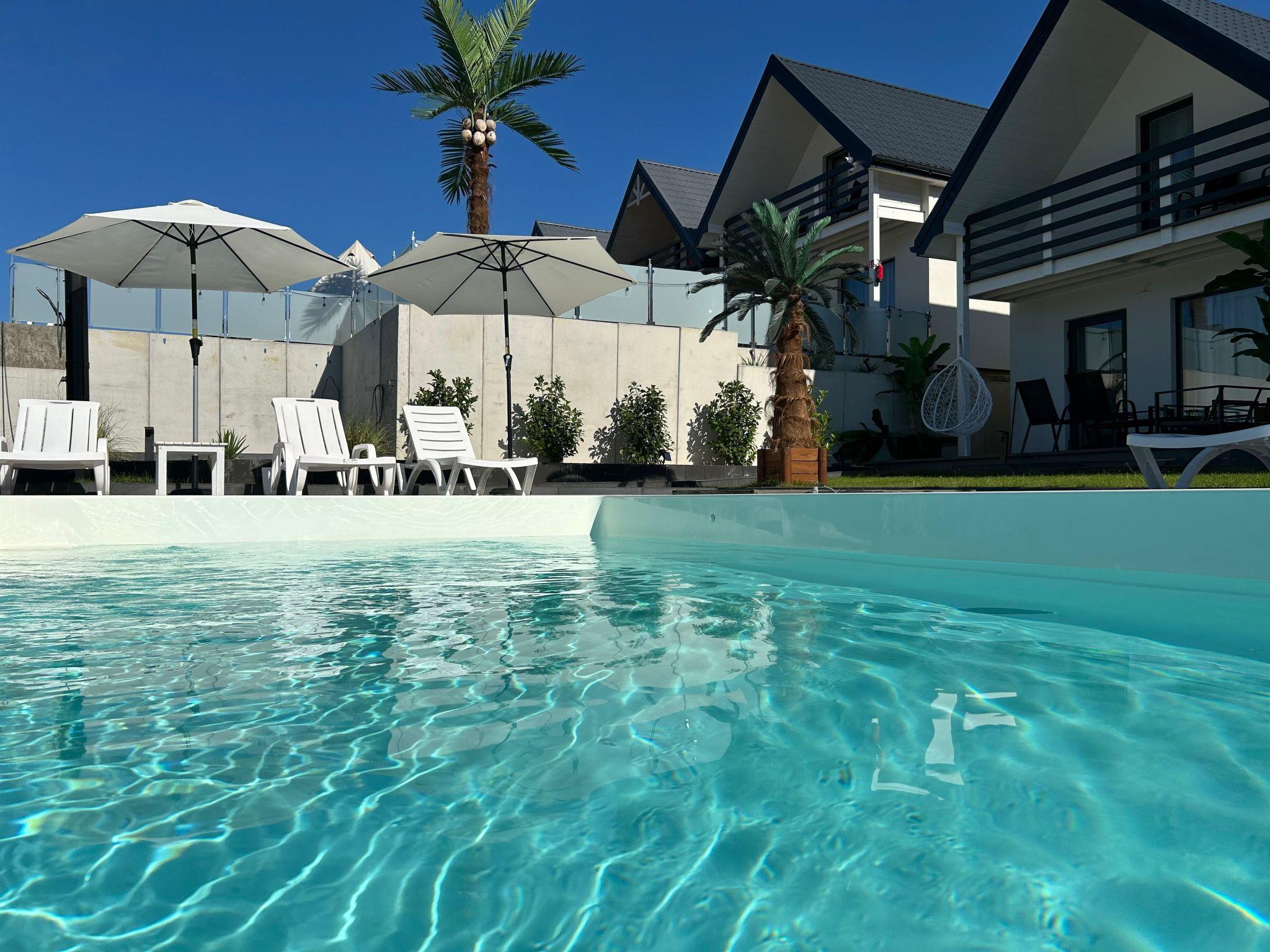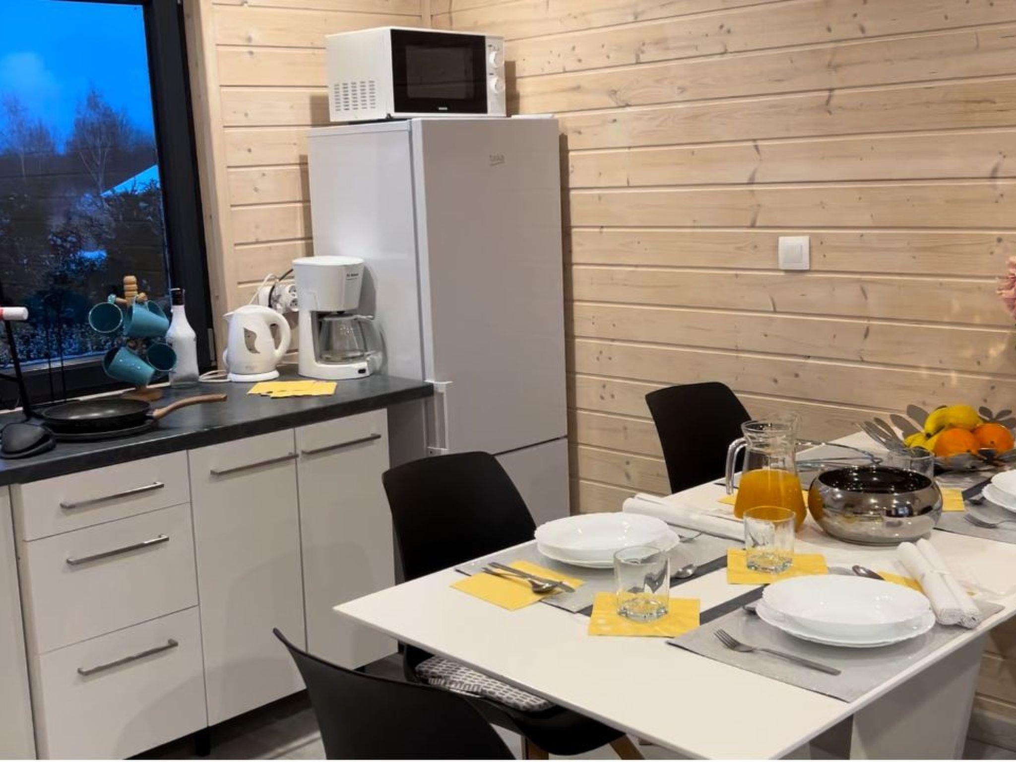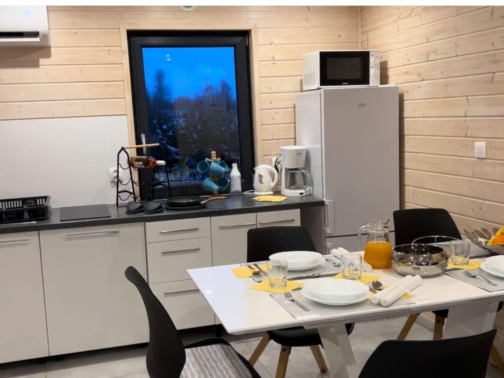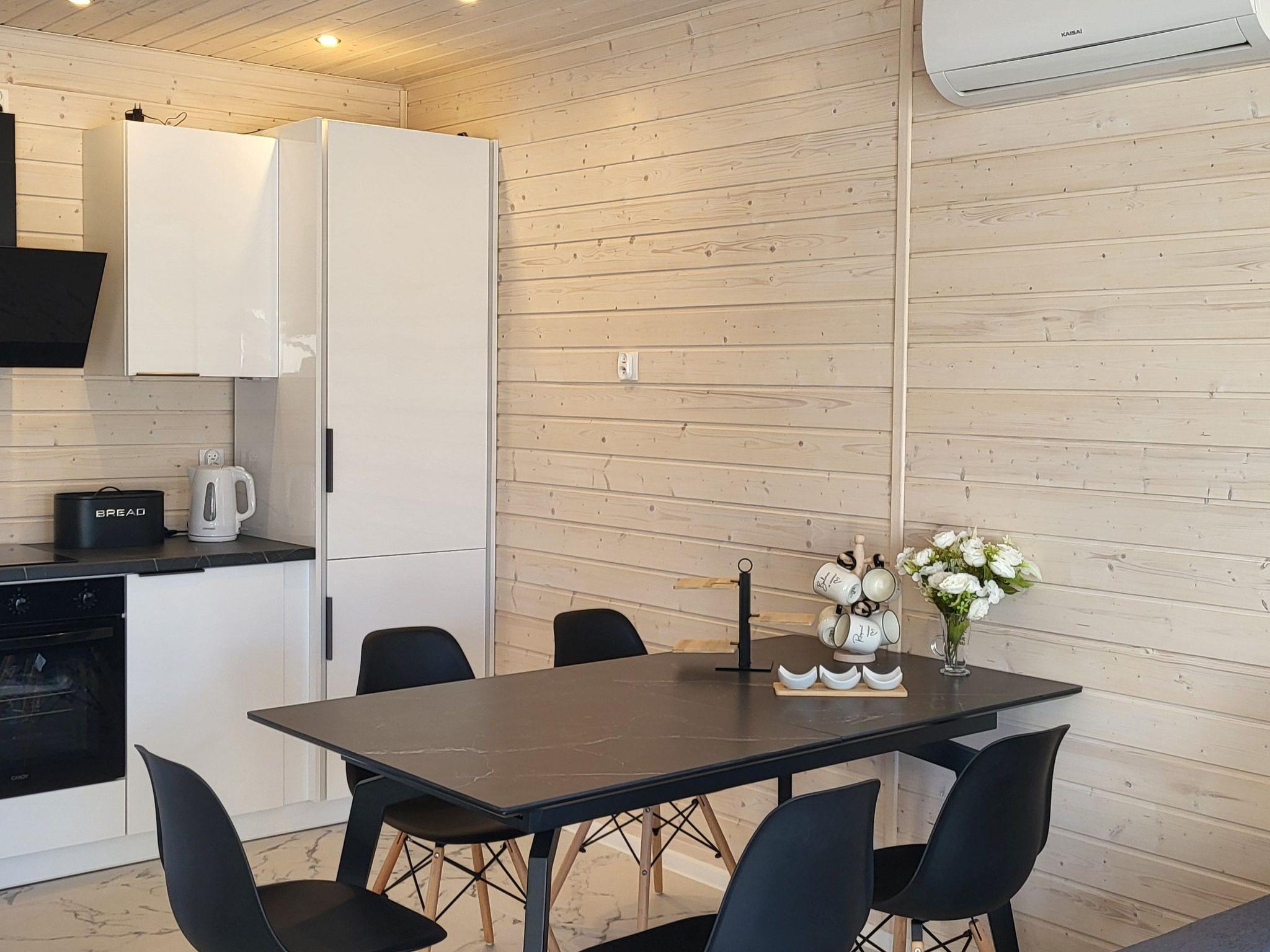 We offer a comfortable cottage with 2 bedrooms. In one bedroom there are 2 double beds. They are large and very comfortable. In the second bedroom there is a double bed and a single bed. From the bedroom there is an exit to the balcony. On the ground floor there is a living room with a kitchenette with access to the terrace. The living room has a corner sofa with a sleeping function for 2 persons, a bench, a single wardrobe and a chest of drawers. The kitchenette is equipped with a cooker, fridge-freezer, kettle, coffee maker, microwave and all other necessary utensils such as glasses, cups, plates, cutlery, pots. In this area there is a table with chairs where you can dine comfortably and conveniently. The bathroom has a shower, toilet and washbasin. A hairdryer is provided. The bathroom has underfloor heating. The cottages are heated and cooled with air conditioning . In autumn and spring they are additionally heated with radiators as required.