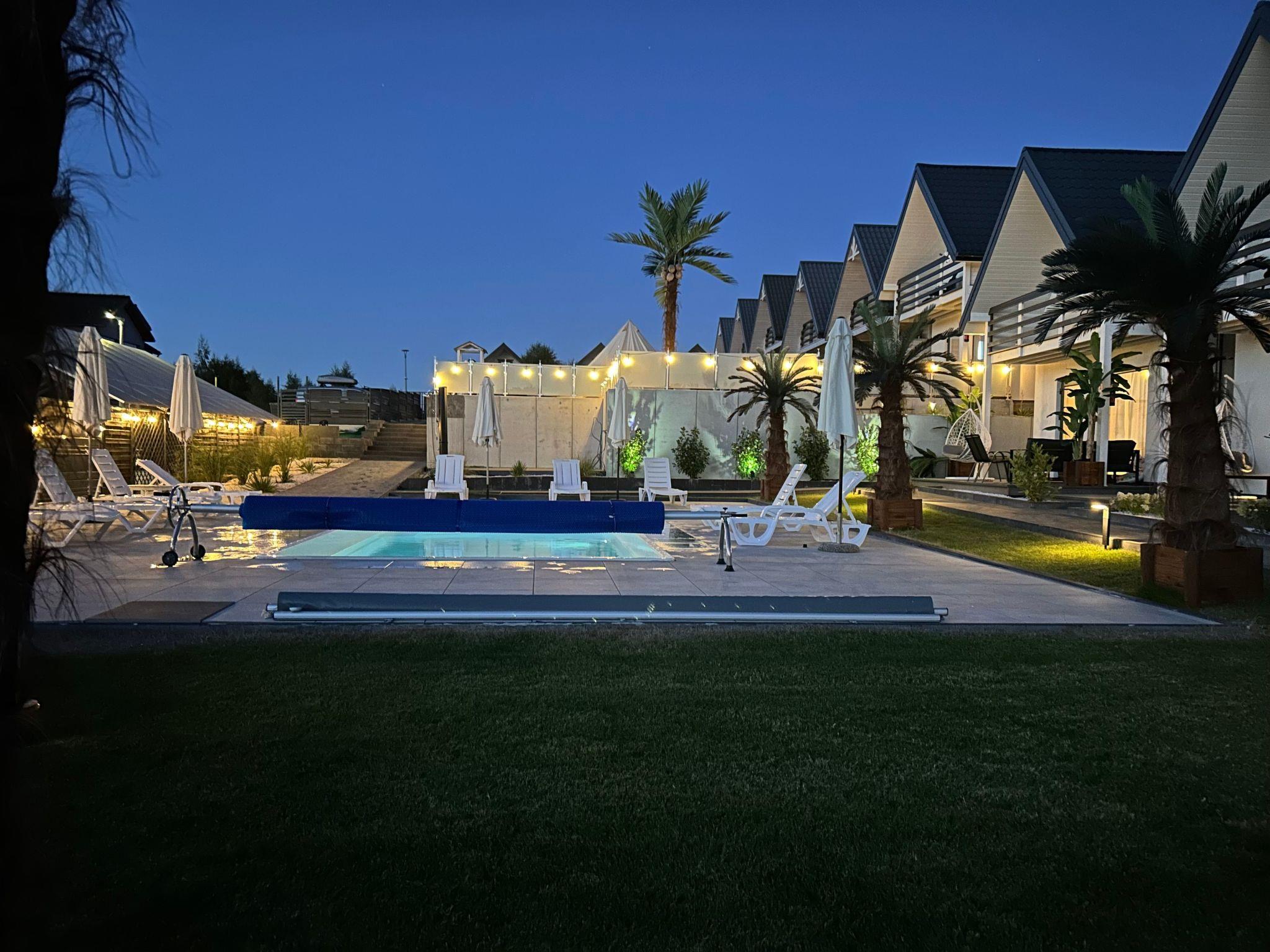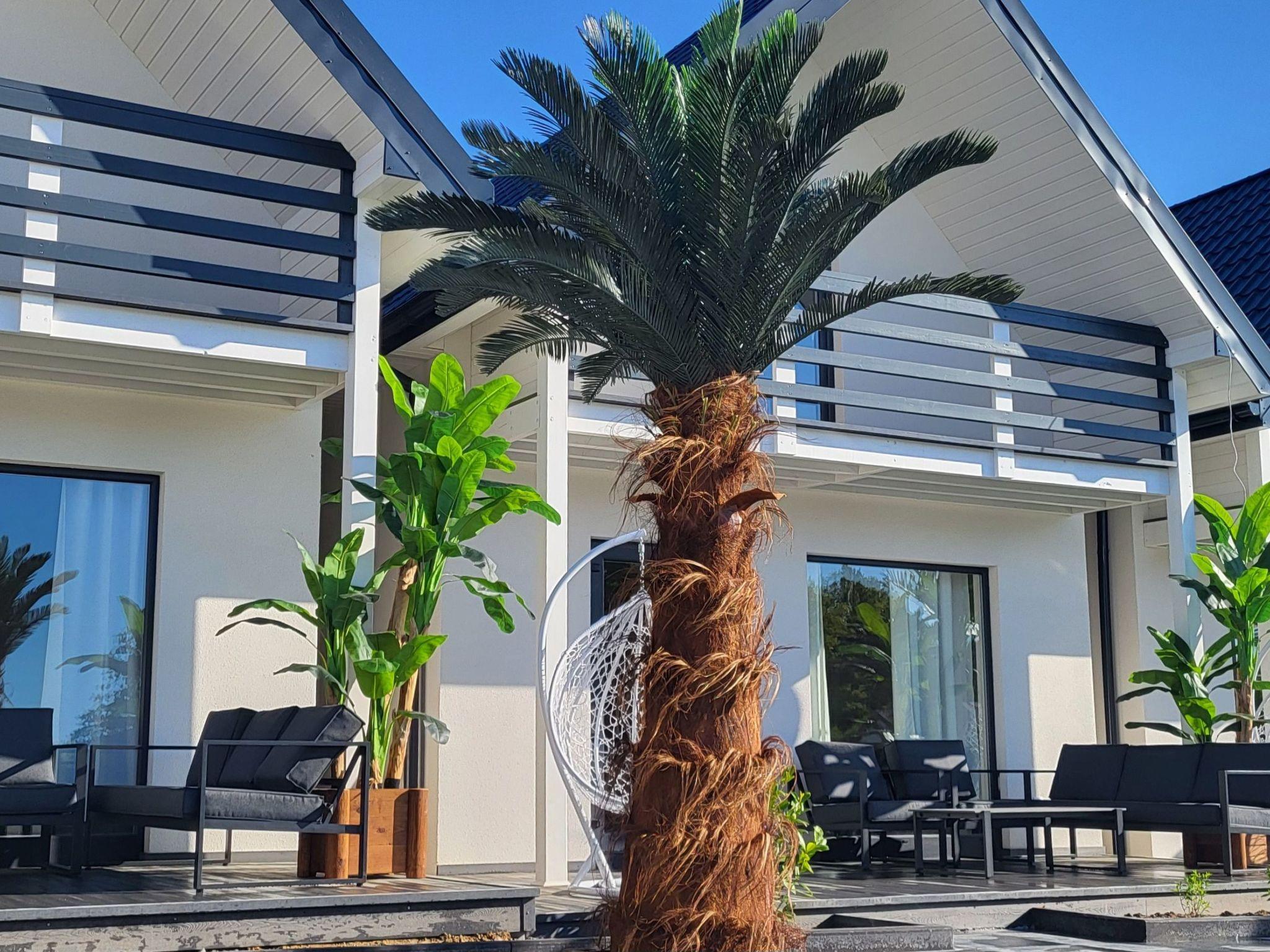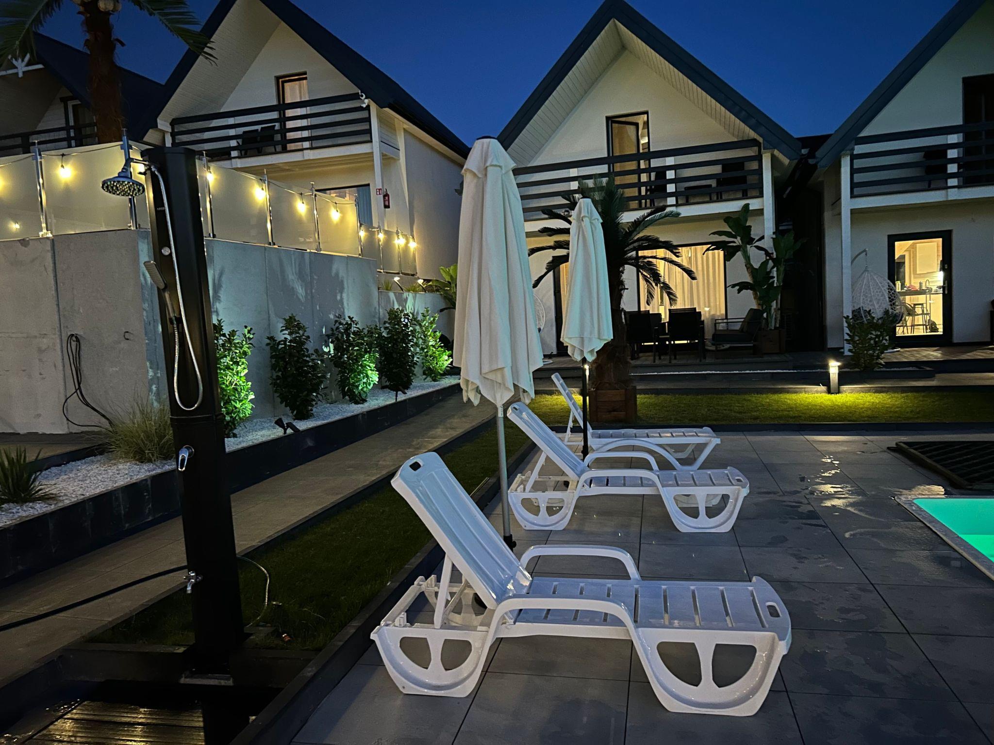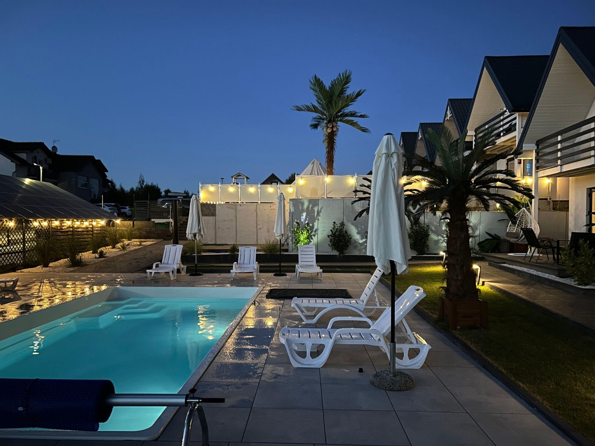 We offer a comfortable cottage with 2 bedrooms. In one bedroom there are 2 double beds. They are large and very comfortable. In the second bedroom there is a double bed and a single bed. From the bedroom there is an exit to the balcony. On the ground floor there is a living room with a kitchenette with access to the terrace. The living room has a corner sofa with a sleeping function for 2 persons, a bench, a single wardrobe and a chest of drawers. The kitchenette is equipped with a cooker, fridge-freezer, kettle, coffee maker, microwave and all other necessary utensils such as glasses, cups, plates, cutlery, pots. In this area there is a table with chairs where you can dine comfortably and conveniently. The bathroom has a shower, toilet and washbasin. A hairdryer is provided. The bathroom has underfloor heating. The cottages are heated and cooled with air conditioning . In autumn and spring they are additionally heated with radiators as required.