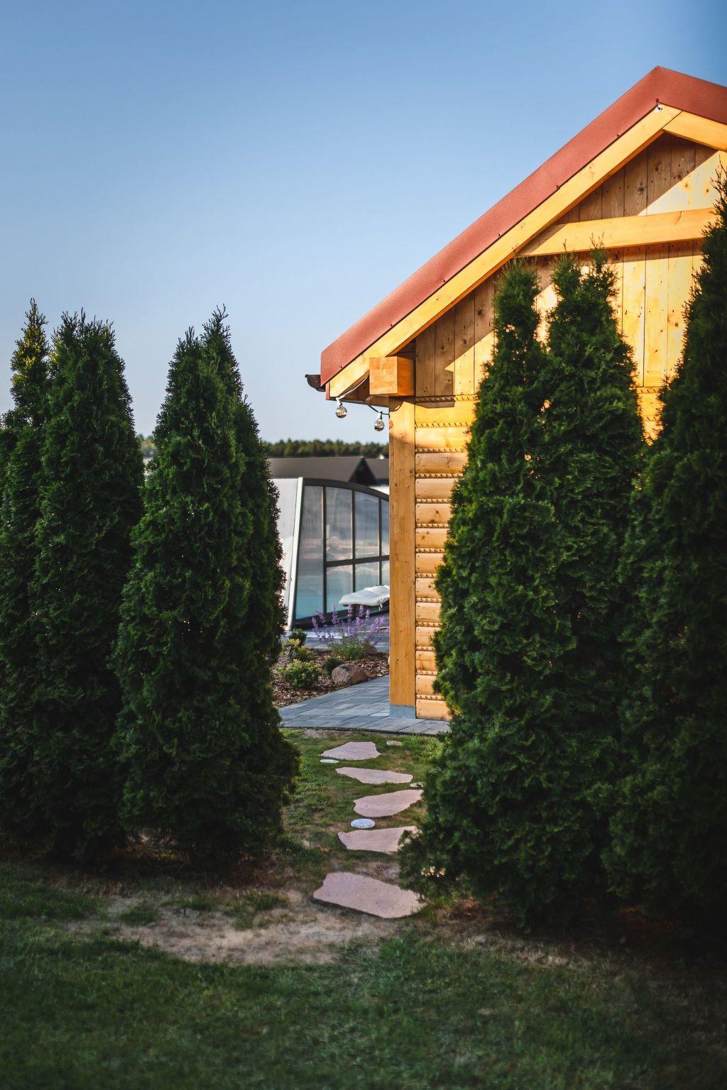 The interior of each cottage creates a functional space, providing everything you need to feel at home. Comfortable seating, a TV for shared evenings and a capsule coffee machine and kettle will make every moment spent inside enjoyable. Spacious bedrooms guarantee a restful night's sleep, while a shared bathroom with shower adds to the comfort of daily use. A laundry dryer, also for shared use, is available in the building, which is particularly useful for families with children or groups of friends.