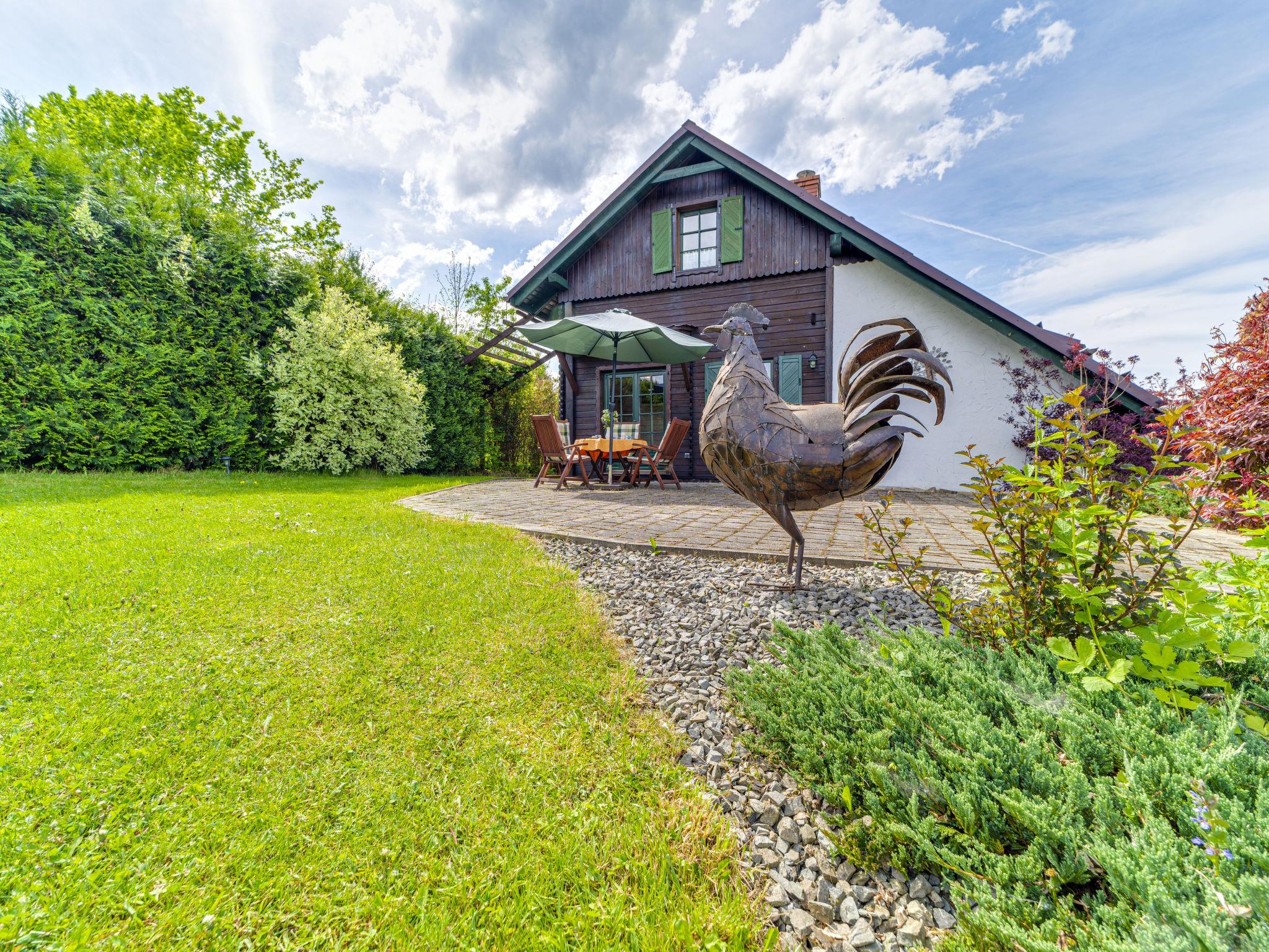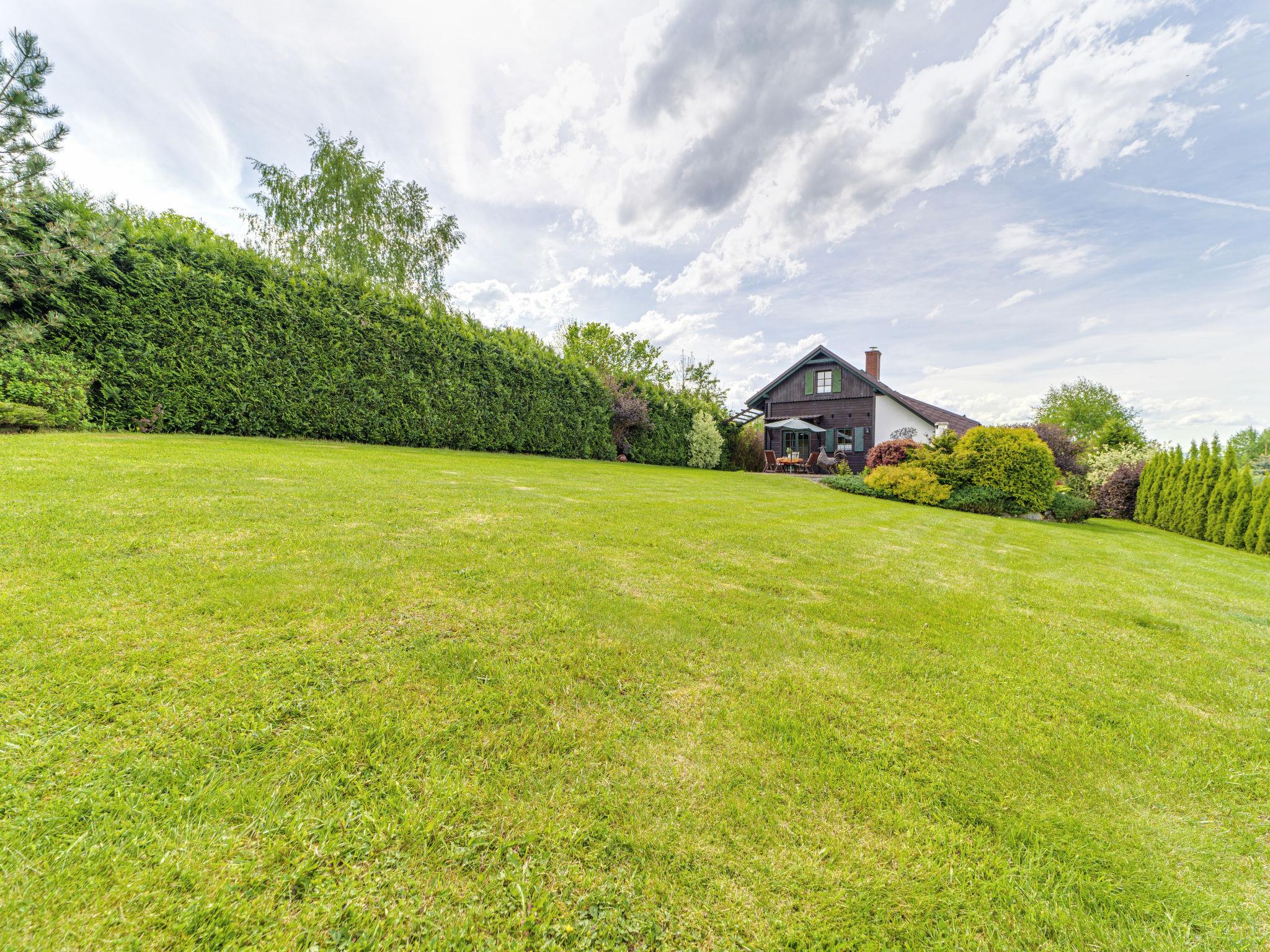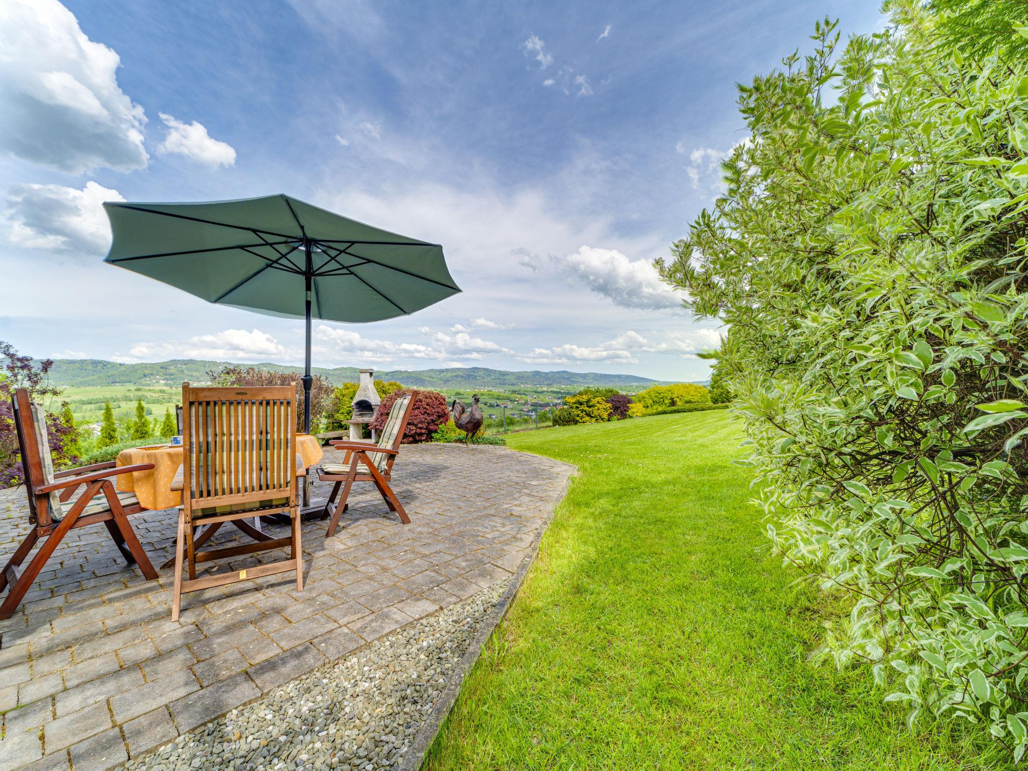 Single-family house "Kogucik". On the outskirts, in a quiet, sunny, elevated position, 4 km from the lake, 1 km from the river, located by a road, in the countryside. Private: property 1'100 m2 (fenced). Motor access to the house. Parking at the house. Grocery 1 km, supermarket 5 km, restaurant 2 km, bus stop 1 km, indoor swimming pool 4 km. Tennis 2 km. Well-known lakes can easily be reached: Zywieckie 4 km. Please note: suitable for families.