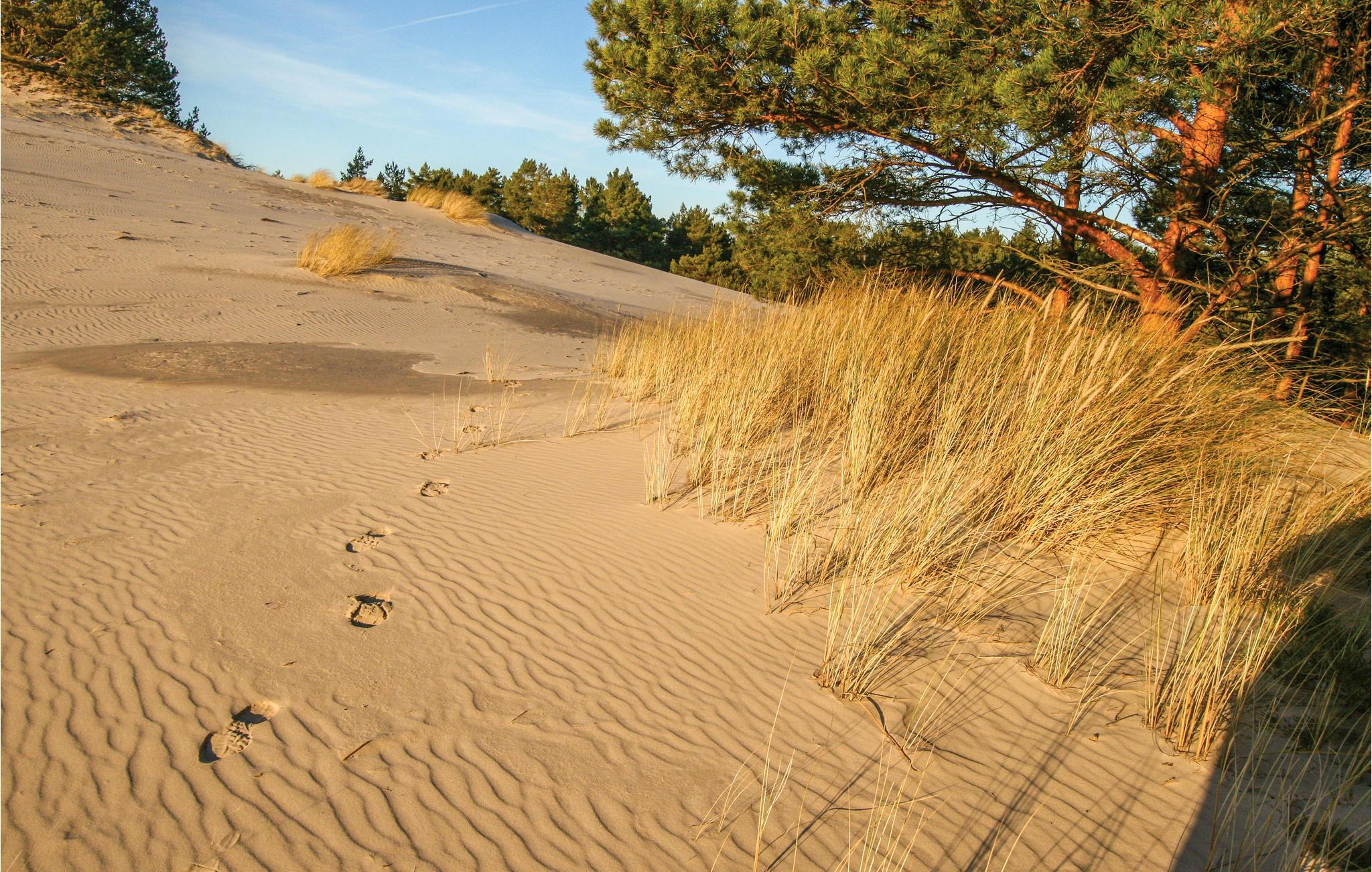 I den lille hyggelige landsby Sarbsk ligger dette enkelt og robust indrettede feriehus. Her kan I bl.a. bruge ferien på at lære at surfe. En populær seværdighed er den første ’Sea Park’ i Polen, hvor I kan opleve sæler eller se det første præhistoriske 3D akvarium i verden. Der er legeplads på grunden hvor familiens børn kan få timer til at gå. I kan slappe af på terrassen og nyde udsigten over omgivelserne. Ideel til to familier, eller en gruppe venner, der vil holde ferie sammen.