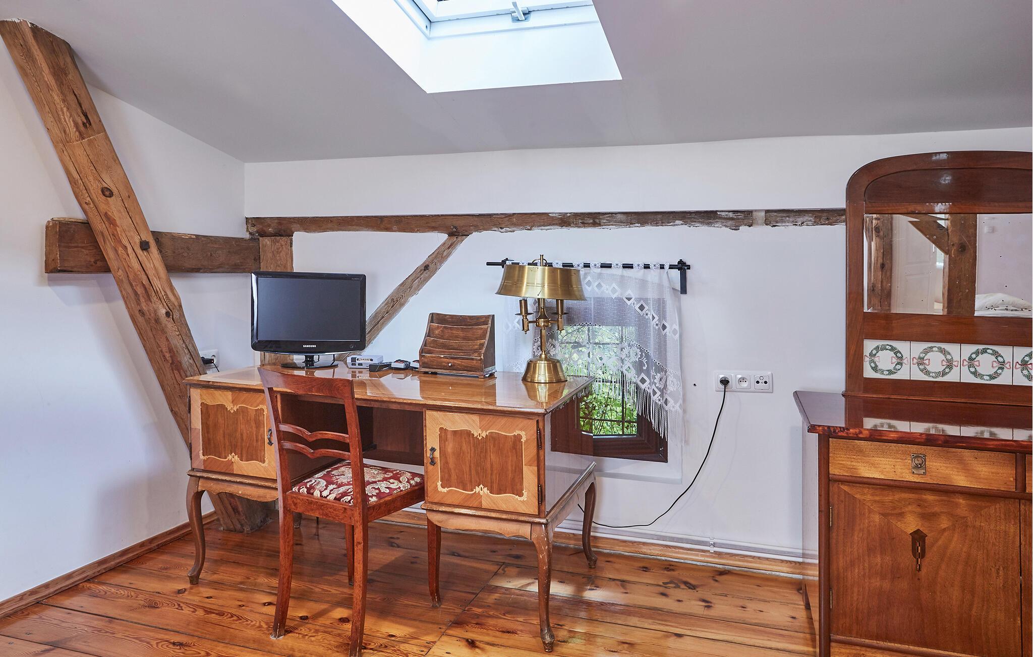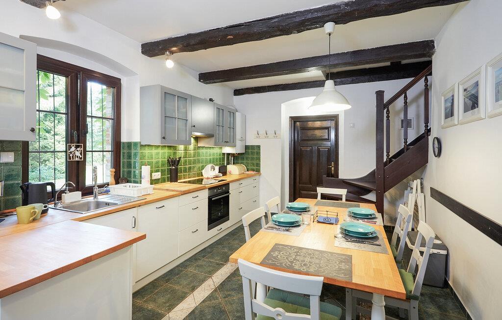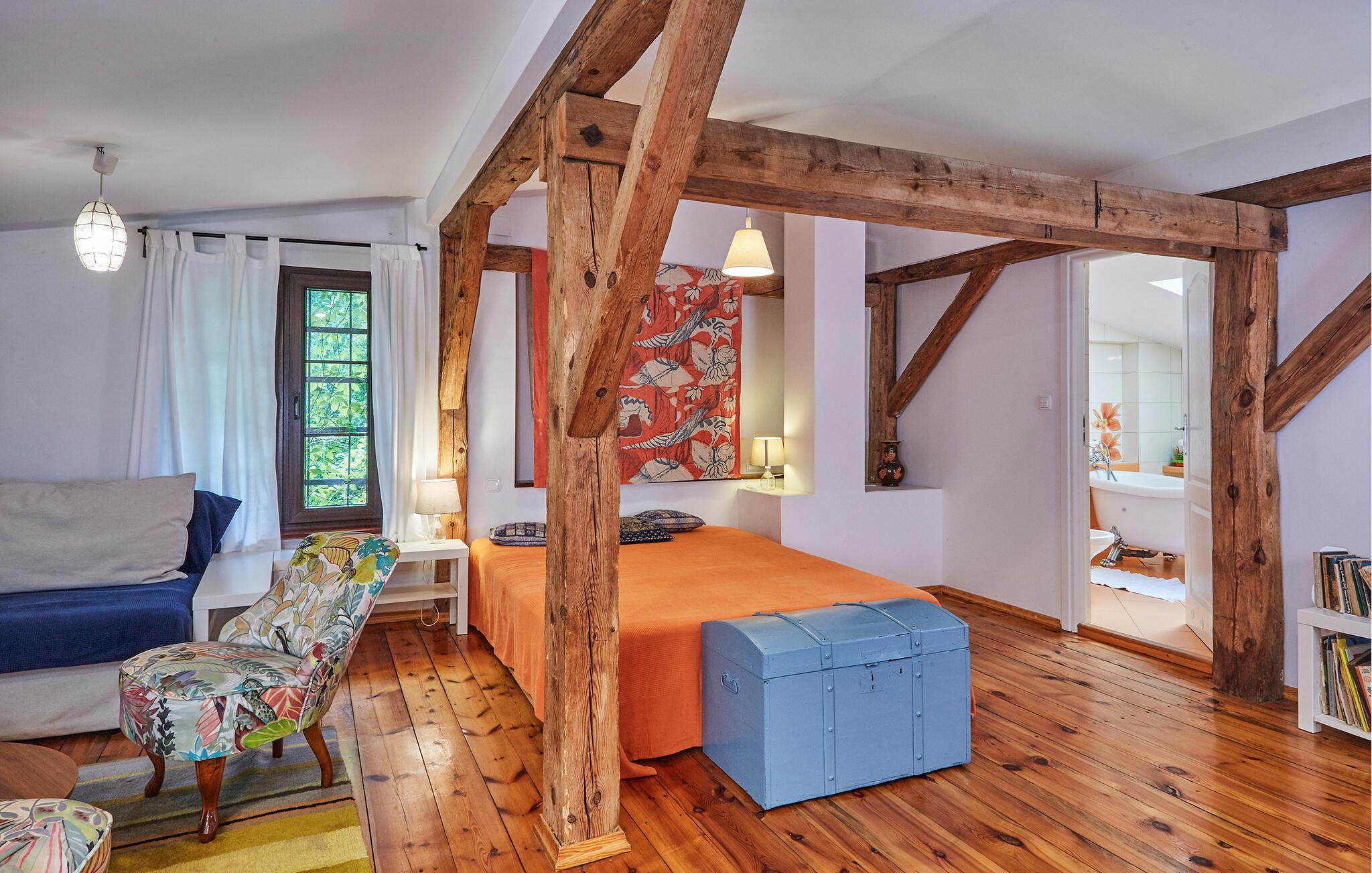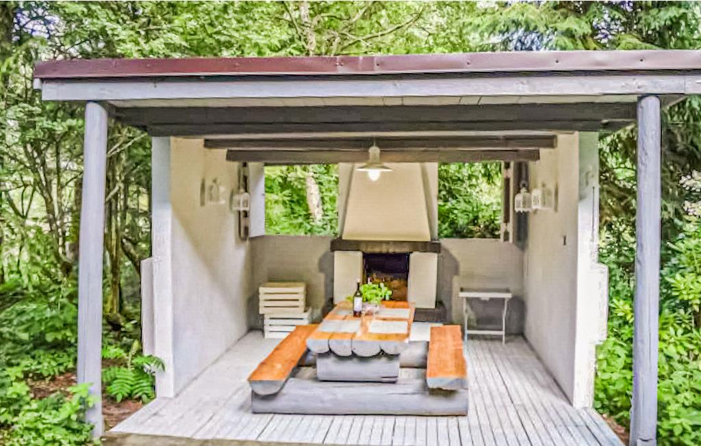 Dette feriehus har en stor grund, og herfra har I panoramaudsigt til landskabet. Måske har I lyst til at begynde dagen med en dukkert i udendørspoolen eller lade musklerne bløde op i saunaen. Derefter kan I sætte jer med en god morgenmad og lægge dagens program.
