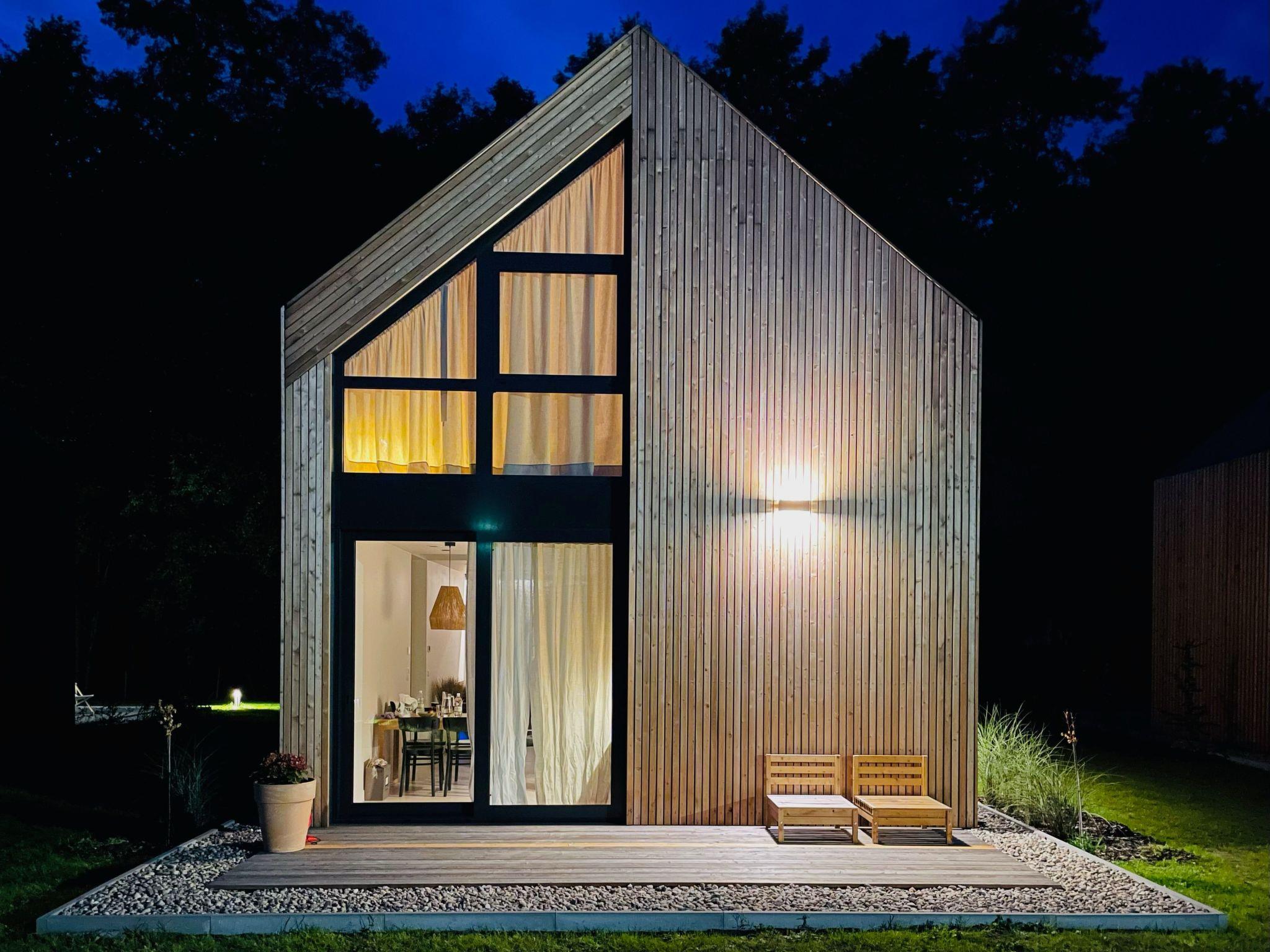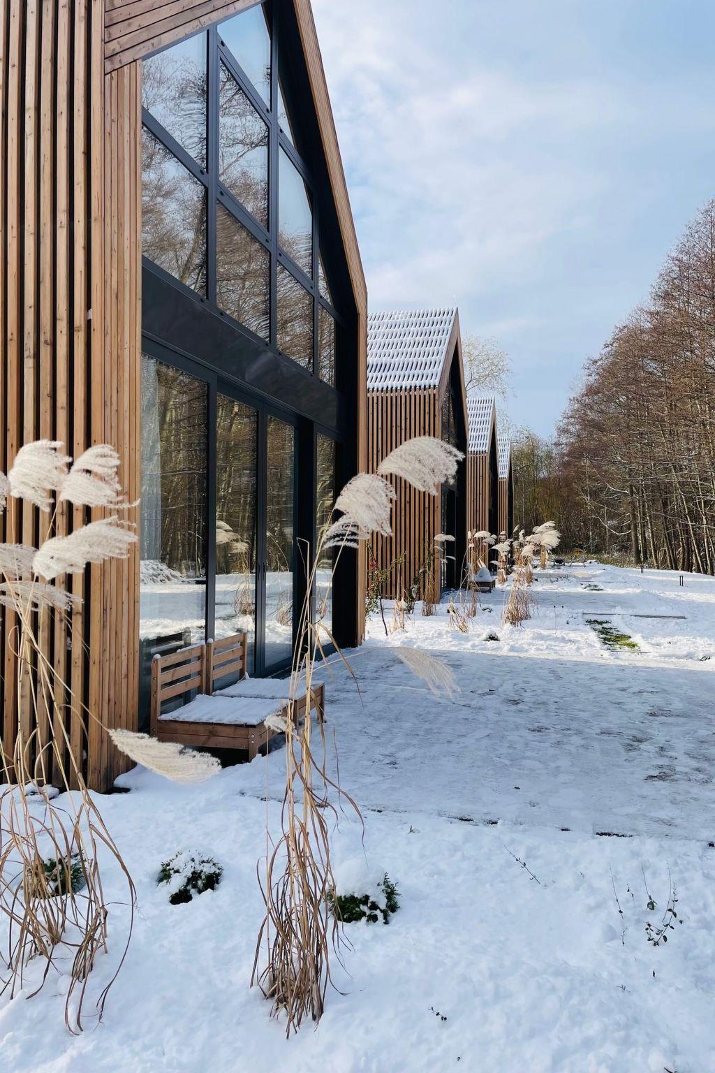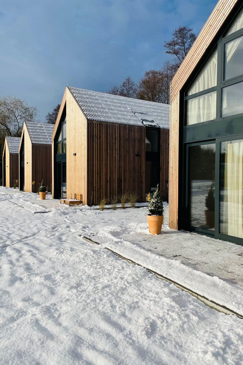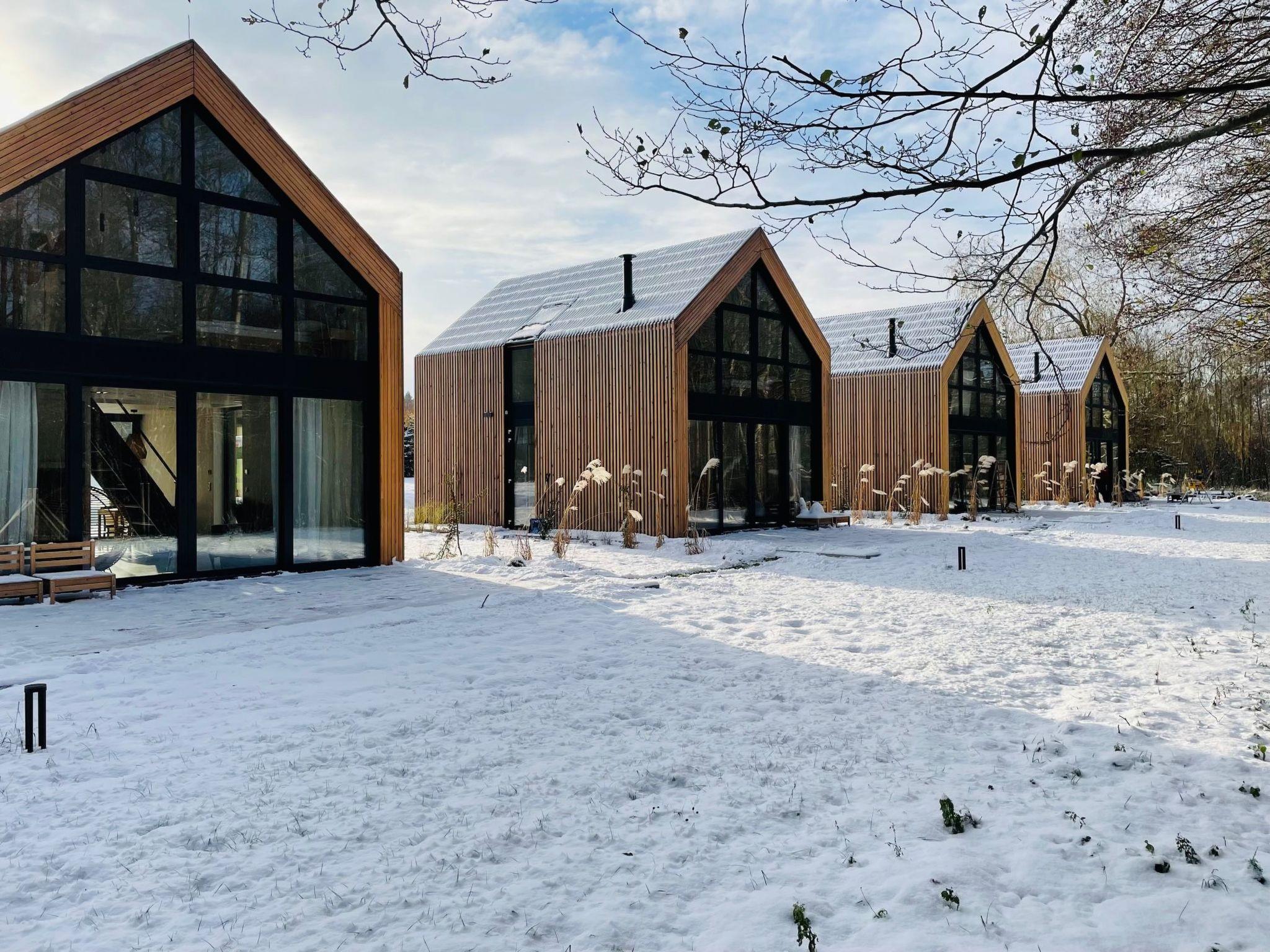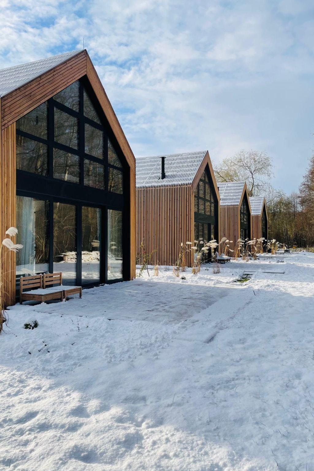 Our offer includes 4 intimately situated luxury houses, made of the highest quality natural materials, in timber frame construction, with panoramic aluminium windows overlooking the forest wall and the stream. The settlement is located just 2.5 km from the most beautiful sandy beach on the Baltic Sea.