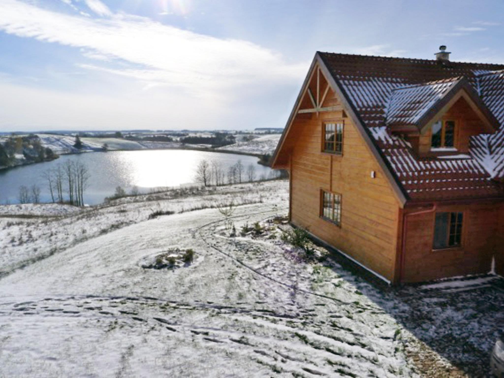 Dworczysko 6 km from Sejny: Child friendly single-family house "Dworczysko", built in 2010, surrounded by meadows and fields. Outside the resort, 6 km from the centre, in a secluded, sunny position on top of a hill, 100 m from the lake, in the countryside. Private: property 45'000 m2, meadow. Terrace (25 m2), garden furniture, barbecue, fireplace, children's playground. In the house: washing machine, heating to be paid on the spot. Available: bicycles (8). Motor access to the house (1 km via unmade road). Parking at the house on the premises. Shop 6 km, supermarket 6 km, restaurant 6 km, bus stop 3 km, indoor swimming pool 35 km, bathing lake 100 m. Tennis 3 km, ski lift 50 km. Nearby attractions: prywatna plaza piaszczysta 100 m. Well-known ski regions can easily be reached: Druskienniki 50 km. Well-known lakes can easily be reached: Dubelek 100 m, Sztabinki 500 m, Bierzniki 1km, Galadus, Holny 2 km, Sejny 7 km. Please note: car recommended. Suitable for families, baby equipment on request (included). Fishing [permit required]. Check-in and check-out are fully automatic. There is no person responsible for the keys on site - keys are collected from a box and keys should be left in this box when leaving the house.