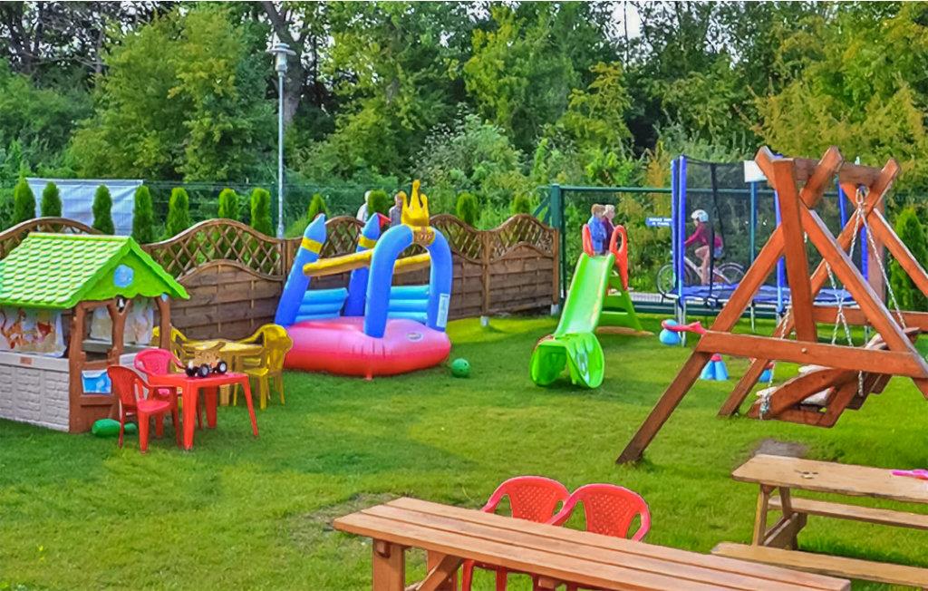 I har adgang til en stor, fælles, indhegnet grund, hvor I kan slappe af i solen, mens børnene leger. Der er en lille legeplads med legehus, rutsjebane, gynge, sandkasse og klatrestativ. I nærheden er der gode muligheder for at gå ture eller cykle ud i landskabet. Hvis vejret er dårligt, kan I også tilbringe en hyggelig dag i vandlandet, som er 3 km væk.