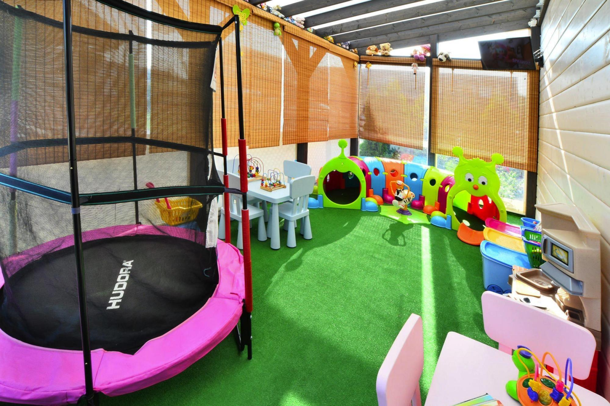 Stueetage: (åbent køkken(kogeplade(Komfur med to kogeplader, induktion), elkedel, brødrister, kaffemaskine, mikrobølgeovn, opvaskemaskine , køle-fryseskab, vaskemaskine), stue / spisestue(dobbeltsovesofa, Fjernsyn(fladskærm, parabol, Tyske TV-kanaler), spisebord(6 personer)), badeværelse(bruser, håndvask, toilet, føntørrer)) På 1. etage: (soveværelse(dobbeltseng, køjeseng), soveværelse(dobbeltseng, køjeseng)) Reception, Internetadgang, Parkering, Bordfodbold, Bordtennis, Cykeludlejning, Bordtennis, Indendørs legerum, Legeområde, Græsplæne, babybadekar, Bubble bath(udendørs, betalt), sauna(betalt, 4 personer), varme(elektrisk, gennem aircondition), klimaanlæg, terrasse(overdækket), have(deles med andre gæster, indhegnet, 1000 m2), havemøbler, solstole, grill(trækul), trampolin(deles med andre gæster), sandkasse(deles med andre gæster), legeredskaber(deles med andre gæster), rutsjebane(deles med andre gæster), cykler til rådighed(betalt), barnestol, strygebræt, strygejern, legetøj, Solcreme, Gyngestativ, baby crib(free)