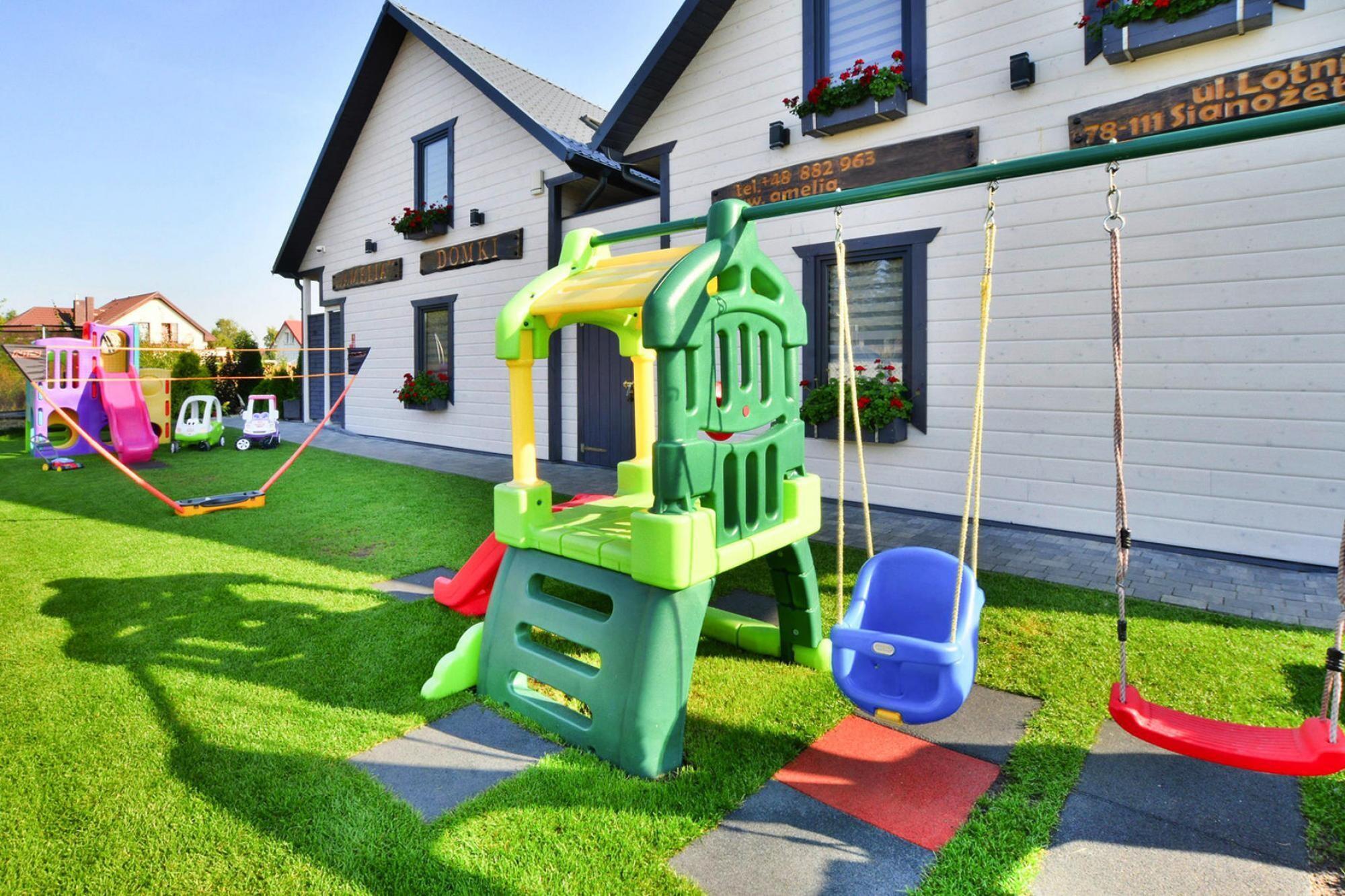 Et familieferiested i et meget roligt område, 200 m fra stranden. Kun få skridt til feriestedets centrum. På den indhegnede grund er der 11 komfortable rækkehuse og sauna (mod betaling). Husene er i to etager. I stueetagen er der stue med TV og bord. Stuen er forbundet med et veludstyret køkken. Der er også et badeværelse med bruser i stueetagen (der er en vaskemaskine). Der er 2 soveværelser ovenpå. Husene har overdækkede terrasser med havemøbler og grilludstyr. Der er varme. Trådløst internet er tilgængeligt. Der er en særdeles attraktiv legeplads for de mindste, samt et flot og veludstyret legerum. Der er cykeludlejning samt sauna og spabad (mod betaling). Prisen for opholdet inkluderer: sengelinned, internet, parkering, barneseng og høj stol (tilmelding nødvendig). Sianozety er et lille feriested beliggende cirka 10 km fra Kolobrzeg, i umiddelbar nærhed af en anden badeby - Ustronie Morskie. Sianozety ligger lige ved siden af ??en bred strand. Gyldent sand og blid adgang til havet tilskynder ferierende til at solbade og havet. I den nærliggende Ustronie Morskie er der også en 100 meter lang vandremole. Den internationale cykelrute R-10 løber gennem Sianozety. Den løber langs kysten og giver en fantastisk udsigt over både strande, klart hav og charmerende tørvemoser. Herfra kan du nemt og behageligt komme på cykel til den nærliggende Ustronie Morskie, men også til den store by Kolobrzeg.
