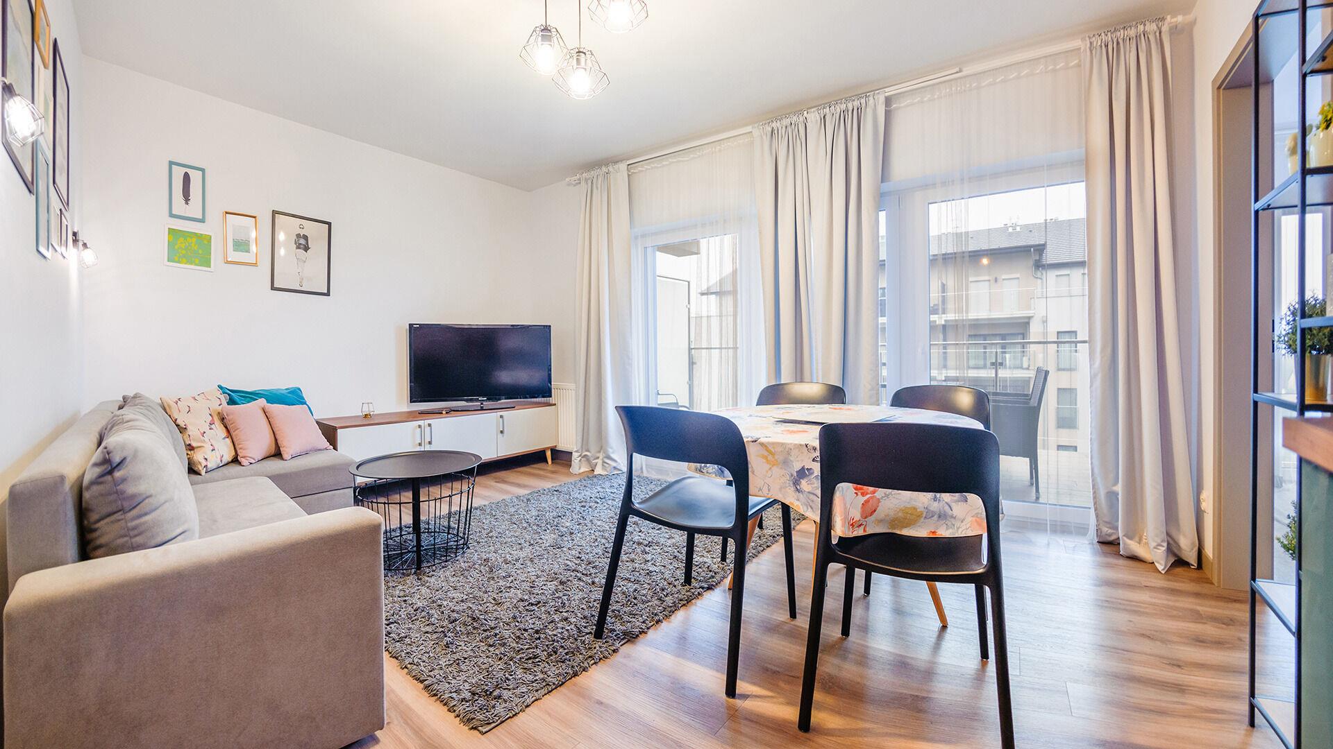 Zu den gewählten Apartments darf man mit dem Hund ankommen. Die zusätzlichen Kosten des Aufenthalts mit einem vierbeinigen Freund betragen 100 PLN (Einzelgebühr). Die Gäste, die den Aufenthalt mit dem Hund planen, bitten wir um eine frühere Kontaktaufnahme mit unserem Service im lokalen Büro.