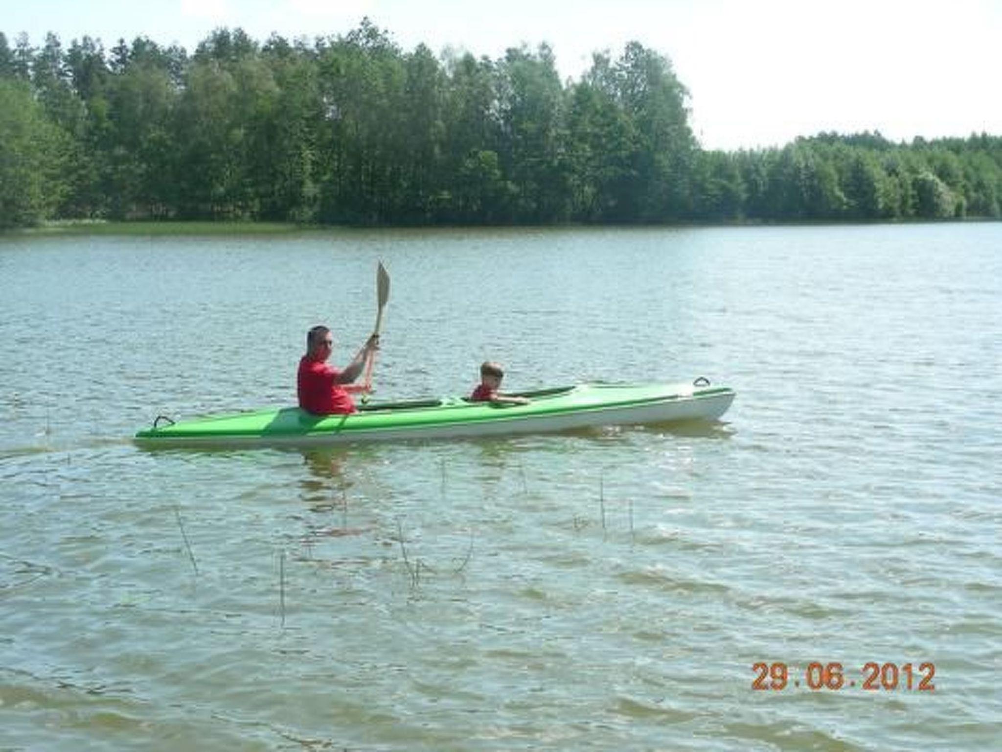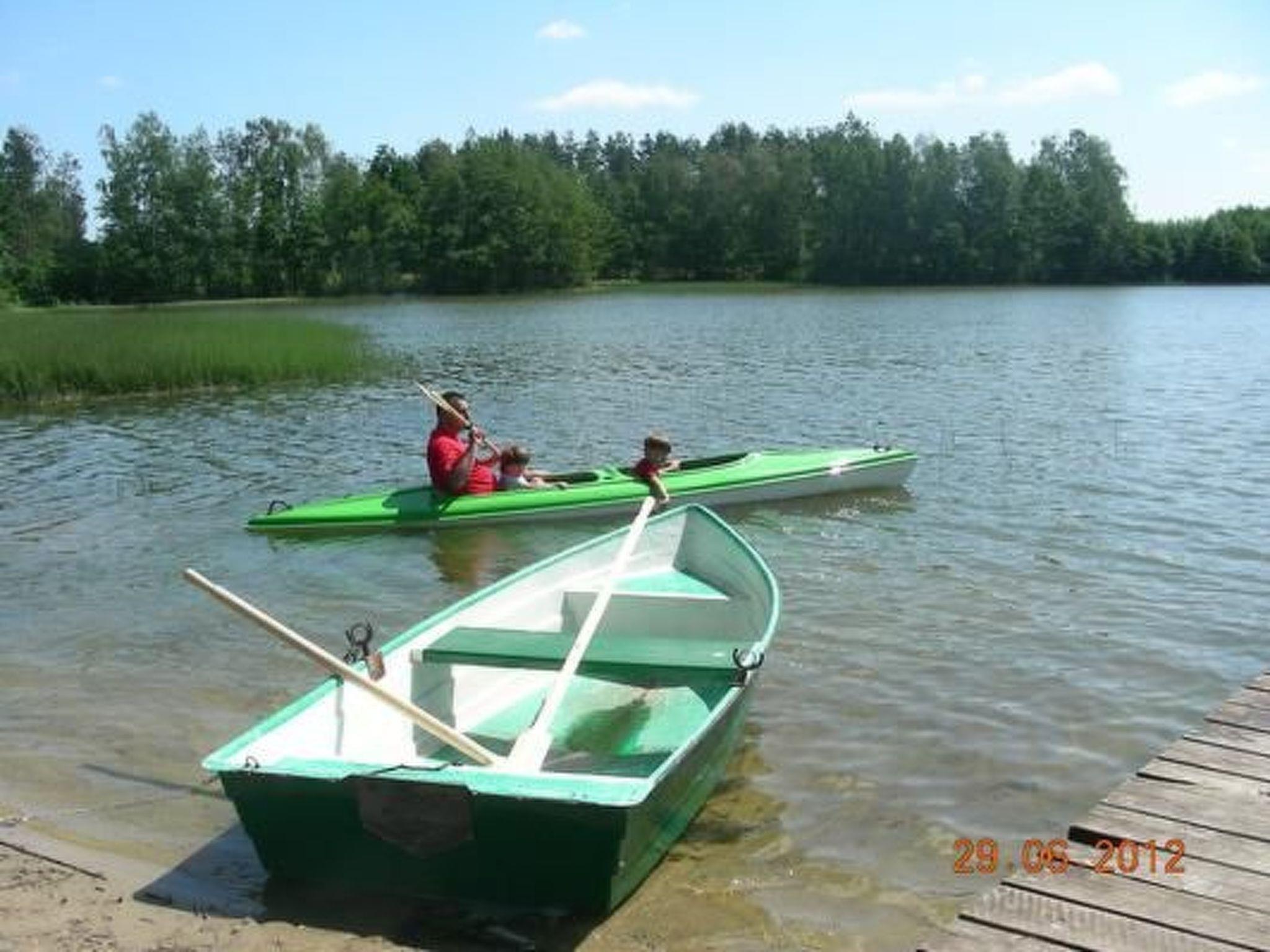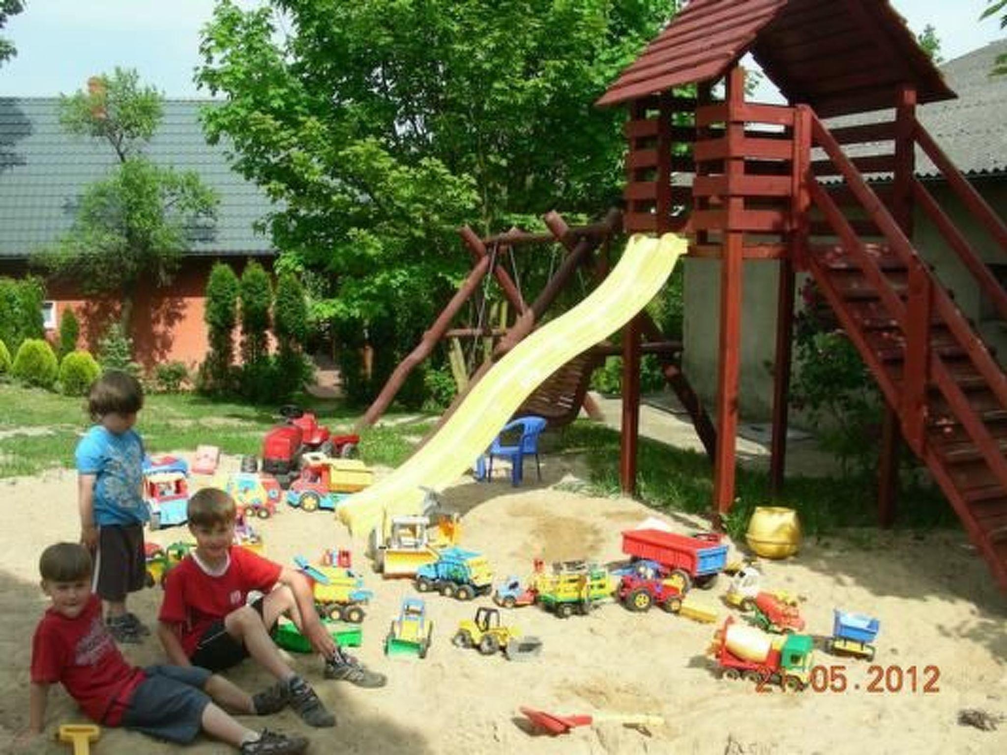Beautiful and stylishly furnished wooden house, located near the lake and the forest. There are 6 beds in the house. On the ground floor there is a living room with fireplace (32" TV), fully equipped kitchenette (fridge, gas cooker with oven, dishes), shower/WC. On the first floor there are 2 separate bedrooms and a balcony overlooking the lake. The property has a garden house, barbecue, swing, table, sandpit, children's playground, trampolines, volleyball court, fireplace, garden, pond with pier, parking. Very nice beach with a pier, good possibilities for swimming and fishing. At guests' disposal: boats, canoes, bicycles. Meals are optional (breakfast, lunch, dinner). Local products such as ham, pork tenderloin, bacon, sausage, turkey can be purchased on site. Fish can be smoked on request. Zalakowo is 70 km from Gdansk, 40 km from Koscierzyna, 30 km from Kartuzy and 8 km from Sierakowice. Leba - 55 km.