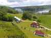 Vor den Hügeln befinden sich drei schöne, komfortable Vier-Personen-Ferienhäuser. Große Terrasse und Blick auf den See. Im Erdgeschoss wohnen und essen, im Obergeschoss schlafen und duschen. Mit kompletter Einrichtung wie zu Hause.
