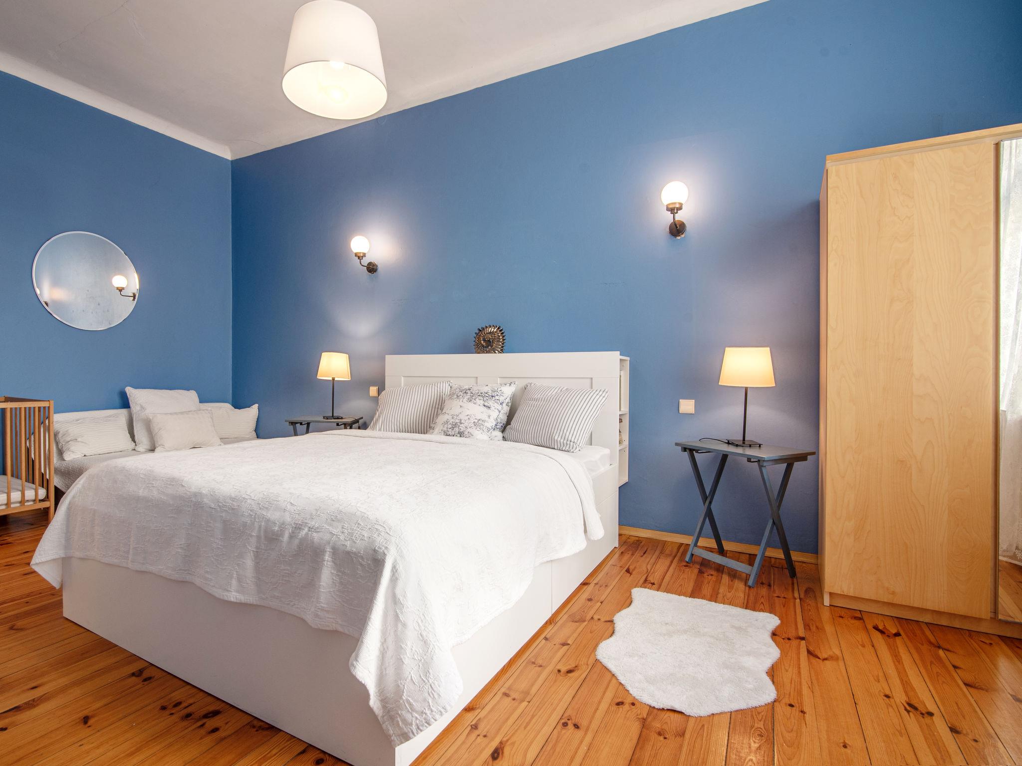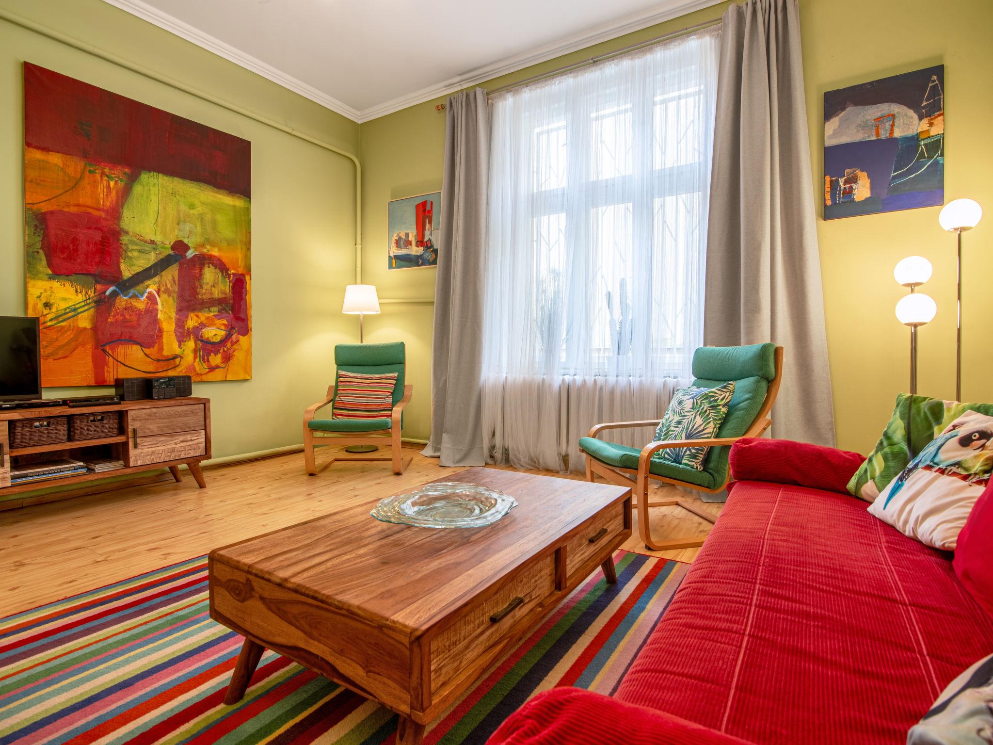 4-room apartment 97 m2, on the ground floor. Comfortable and beautiful furnishings: living room 20 m2 with cable TV, video, radio and DVD. 1 room 20 m2 with 2 beds (90 cm, length 200 cm). 1 room 19 m2 with 1 french bed (160 cm, length 200 cm). 1 small room 5 m2 with 1 bed (90 cm). Kitchen (4 hot plates, oven, electric coffee machine) with dining table. Shower/WC. Gas heating. Facilities: washing machine, children's high chair, baby cot for up to 3 year olds, hair dryer. Internet (WiFi, free). Please note: maximum 1 pet/ dog allowed. Smoke alarm. IMPORTANT: Deposit 800 PLN.