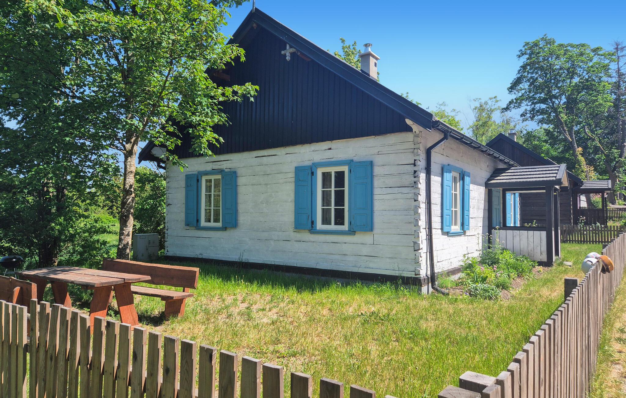 Dette charmerende træhus ligger kun nogle få meter fra bredden til en flod.