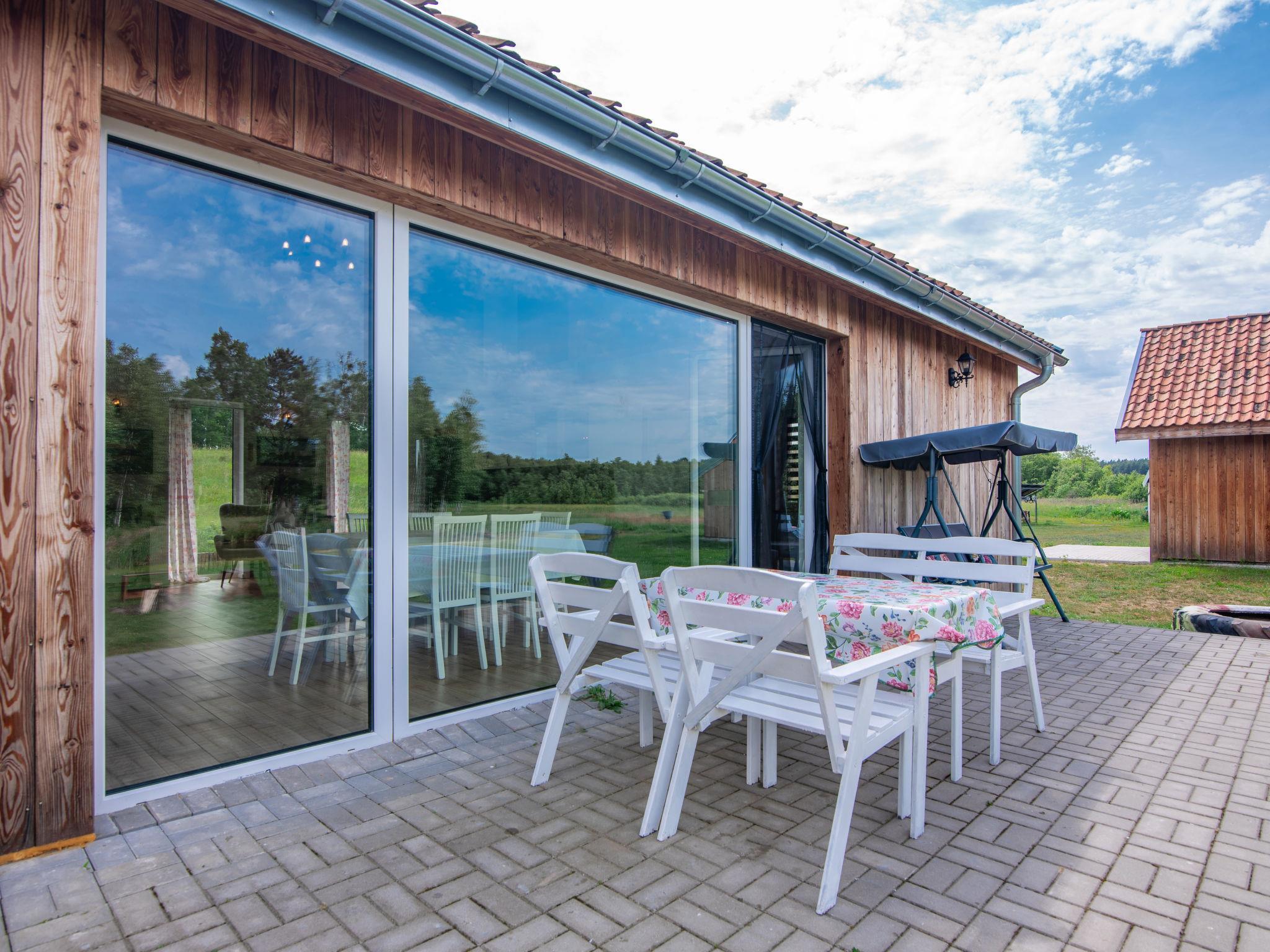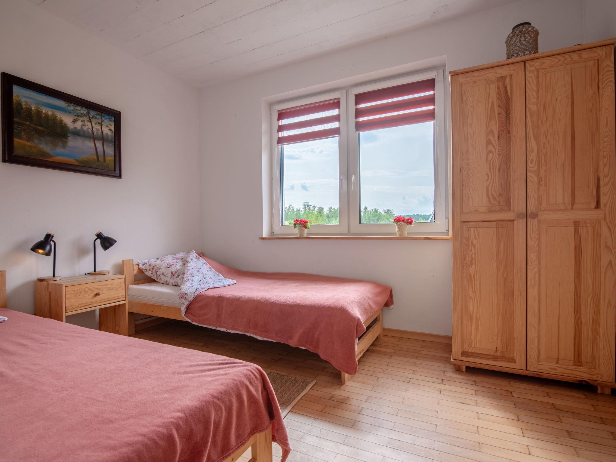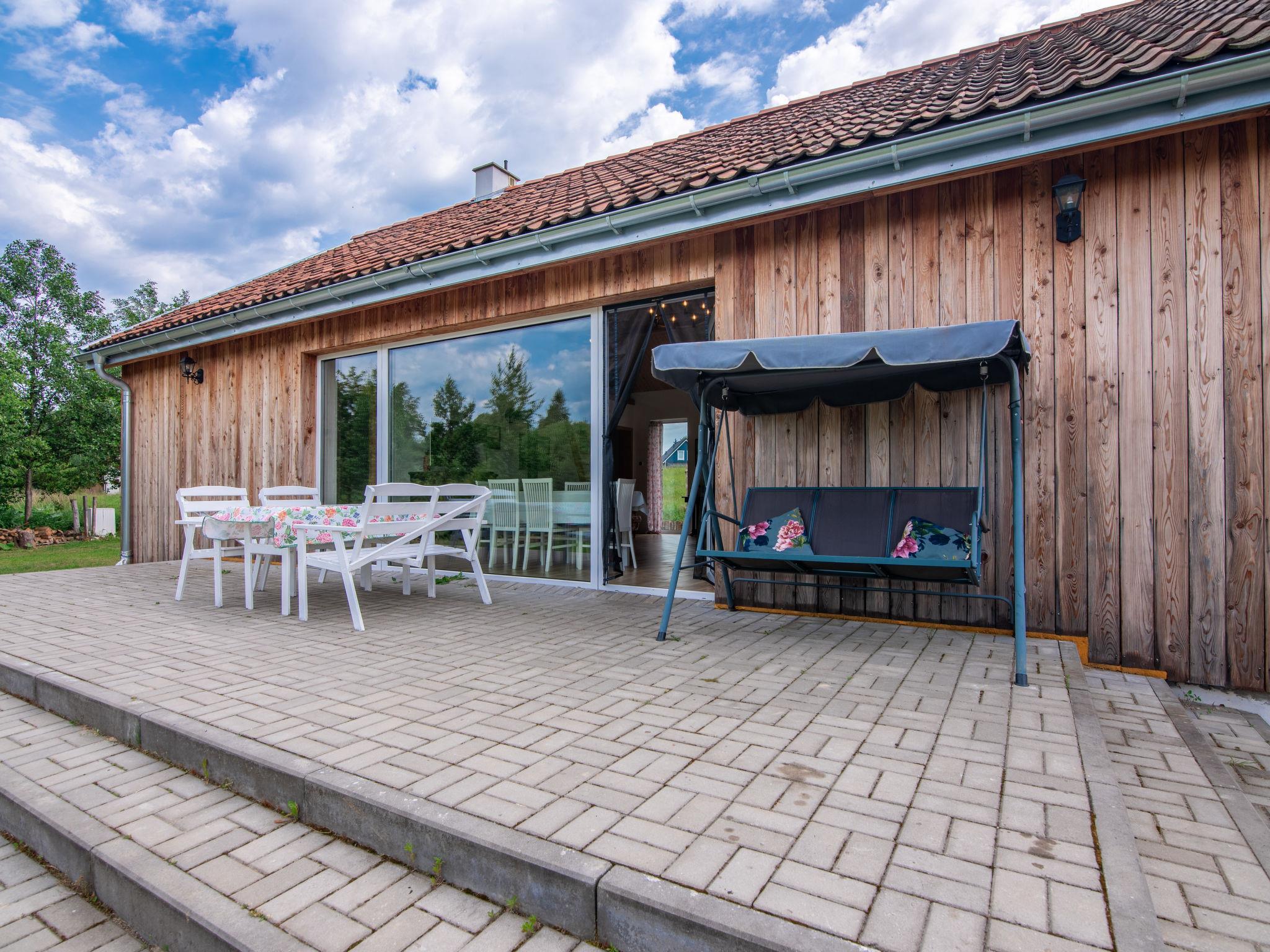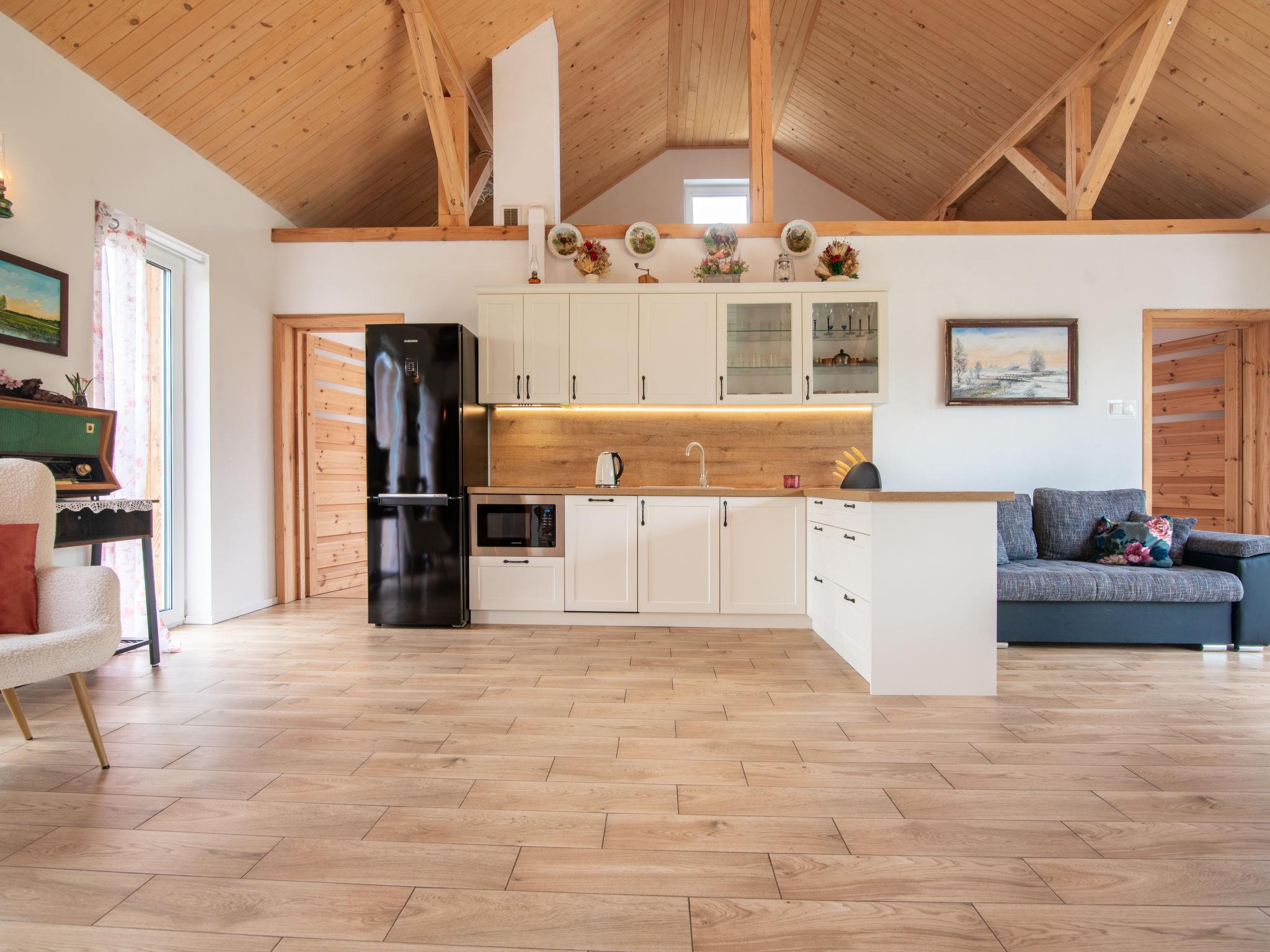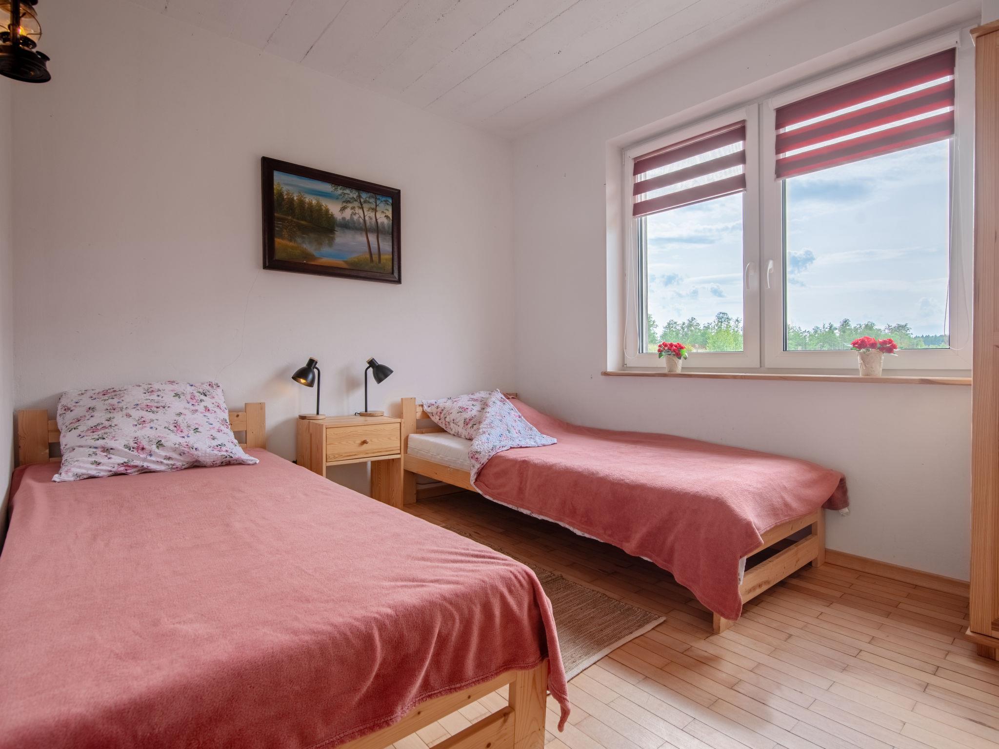 Single-family house "Zagroda nad Krutynia", built in 2022, surrounded by trees and meadows. Outside the resort, in a quiet, sunny position, 300 m from the lake, 500 m from the river, in the countryside. Private: property 15'000 m2, meadow 1'000 m2, pond. Hot tub, table tennis, terrace (30 m2), garden furniture, barbecue, children's playground. In the house: WiFi, sauna. Available: bicycles, canoe. Motor access to 50 m from the house (via unmade road). (1 step). Parking at the house. Shop 1.5 km, grocery 1.5 km, restaurant 1 km, bus stop 1.5 km, railway station 2 km, sandy beach, public bathing area 300 m. Children's playground 500 m. Nearby attractions: Ruciane Nida 22 km, Mikolajki 37 km, Krutynia 500 m.