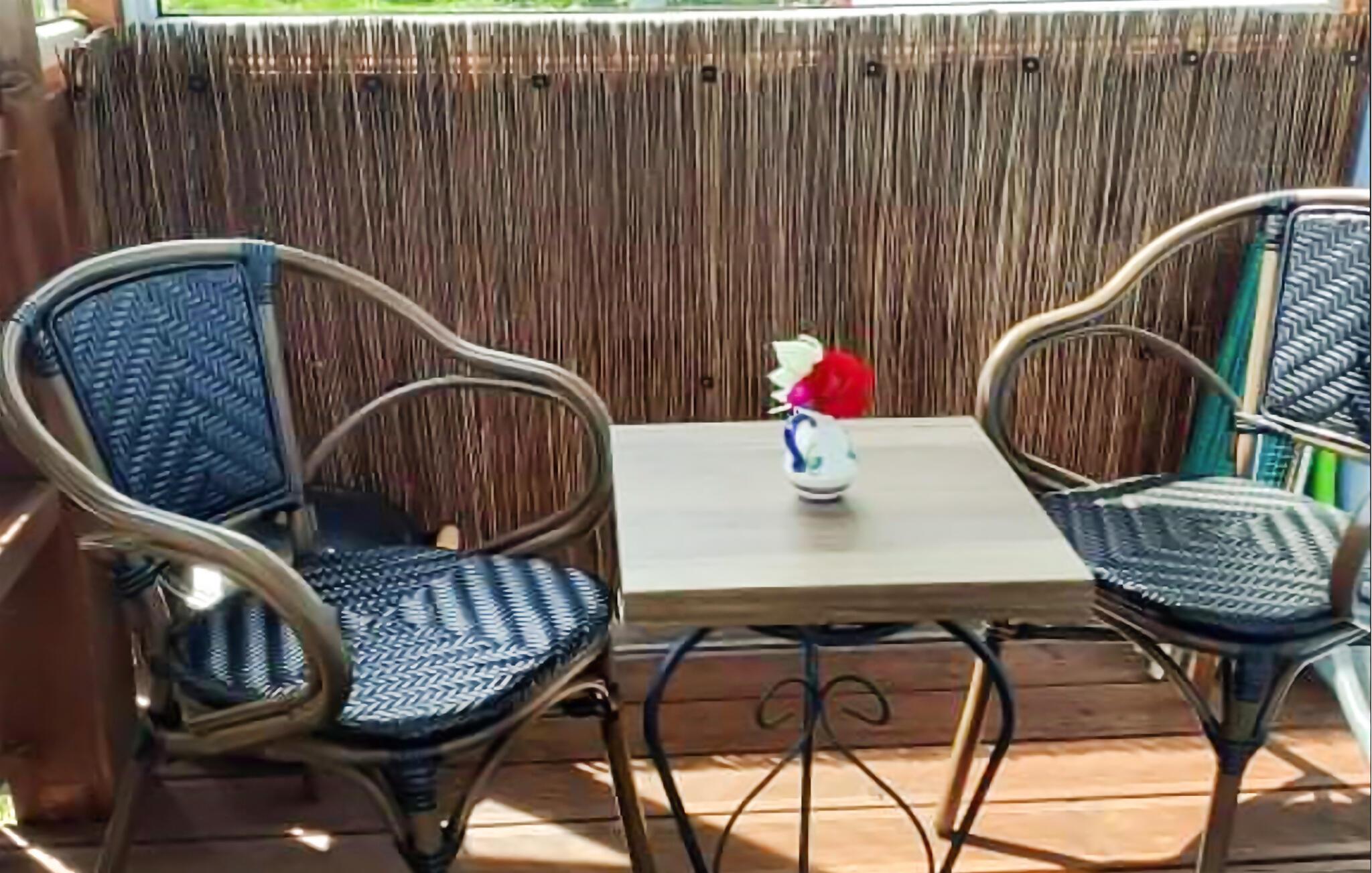 Boligen er enkelt indrettet, men den er virkelig hyggelig og rolig med mulighed for masser af frisk luft. De varme sommeraftener tilbringes bedst i den fælles have og på den fælles terrasse, hvor I også kan dase i solen i løbet af dagen.
