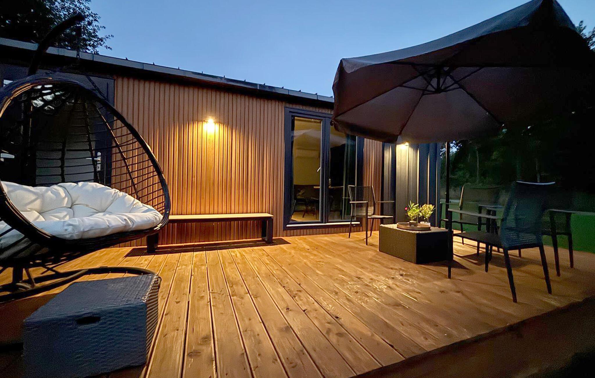 Træd ud på solterrassen og slap af. Tag plads i det udendørs spabad og slap af i det varme vand, mens I kigger ud over de naturlige omgivelser. Sid på loungemøblerne under skyggefulde træer eller hæng ud på den lille moles behagelige bænk lige ved vandet. Om aftenen skaber bålstedet i haven en særlig atmosfærisk atmosfære.
