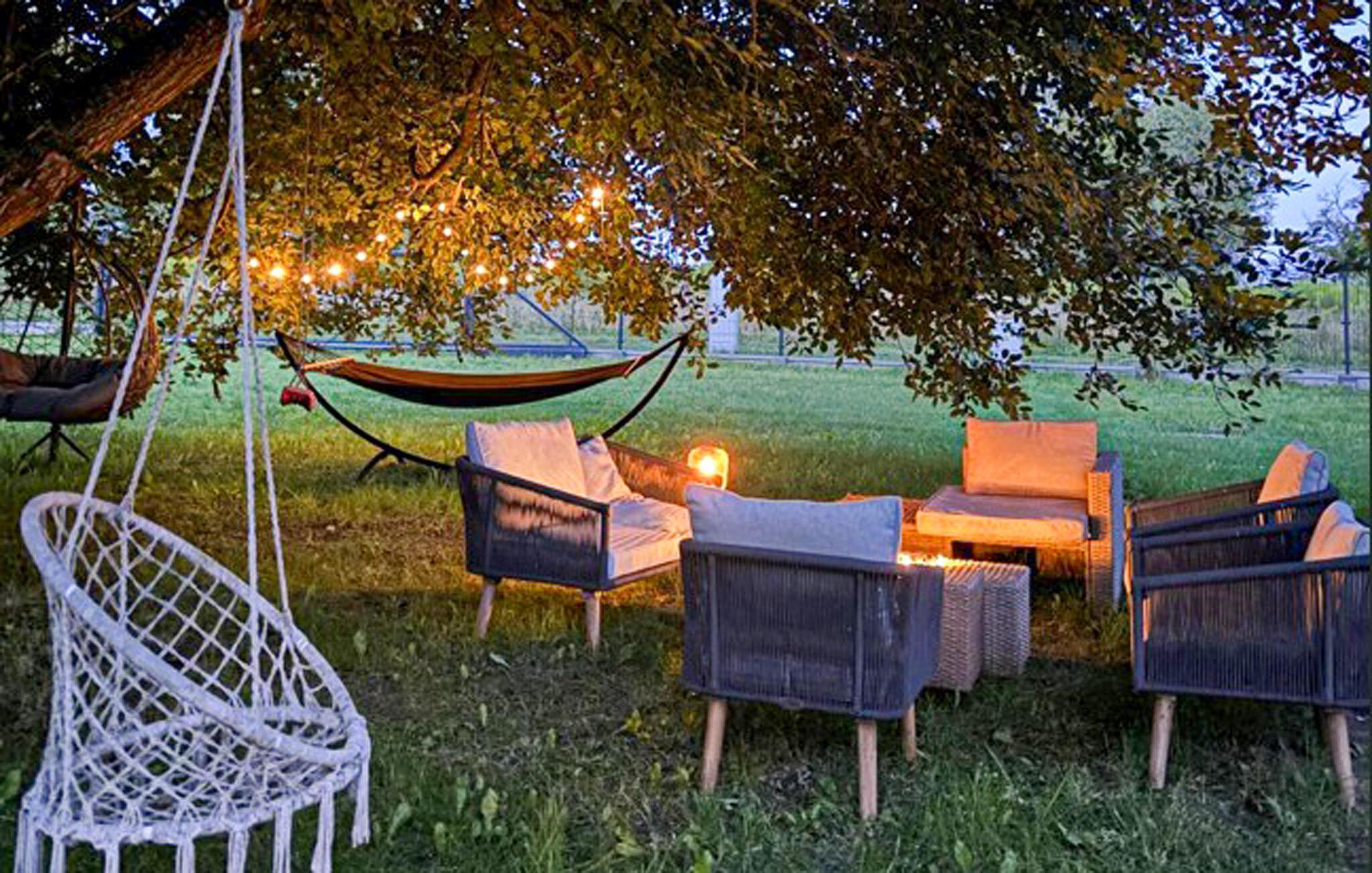 Træd ud på solterrassen og slap af. Tag plads i det udendørs spabad og slap af i det varme vand, mens I kigger ud over de naturlige omgivelser. Sid på loungemøblerne under skyggefulde træer eller hæng ud på den lille moles behagelige bænk lige ved vandet. Om aftenen skaber bålstedet i haven en særlig atmosfærisk atmosfære.