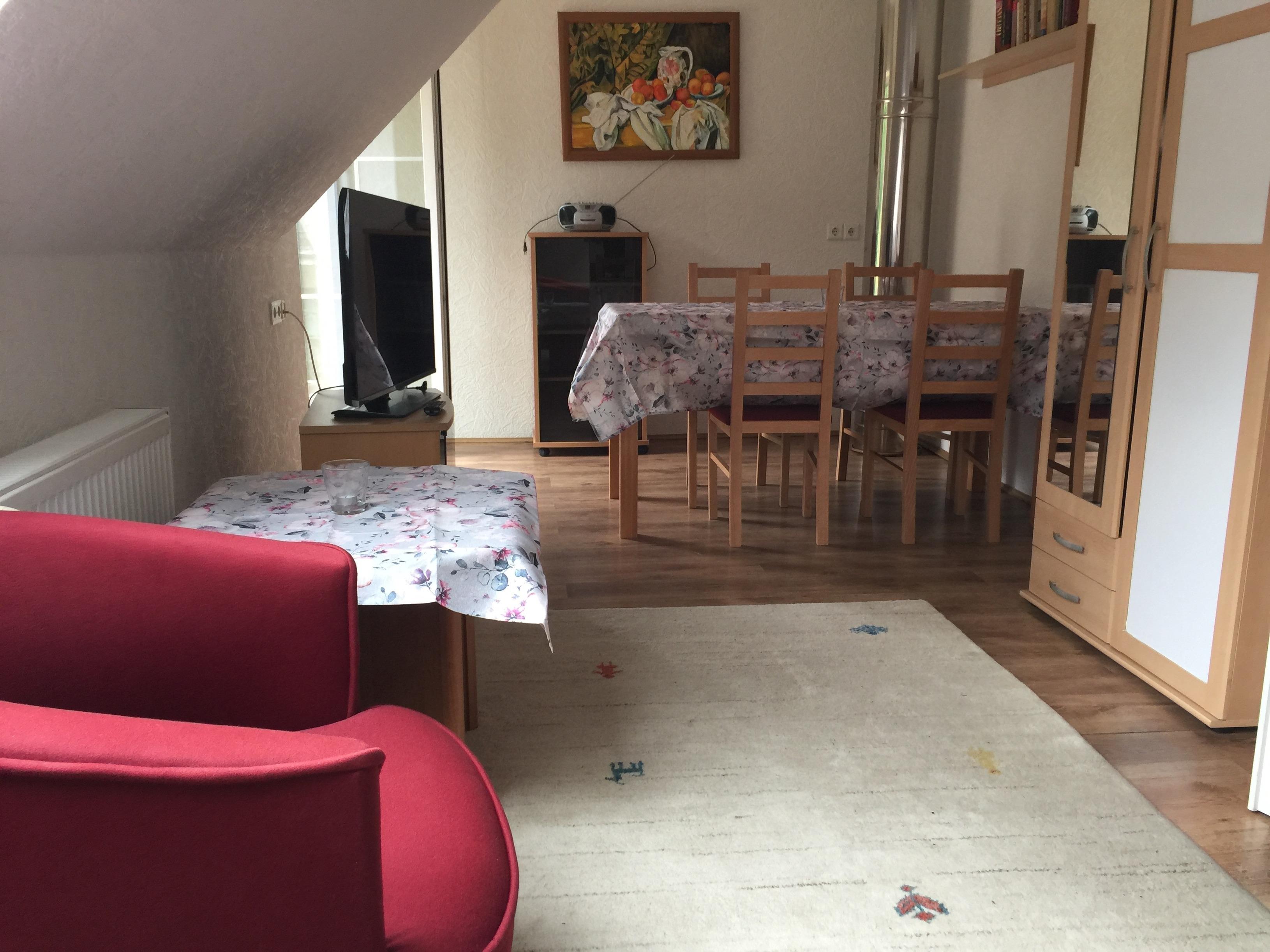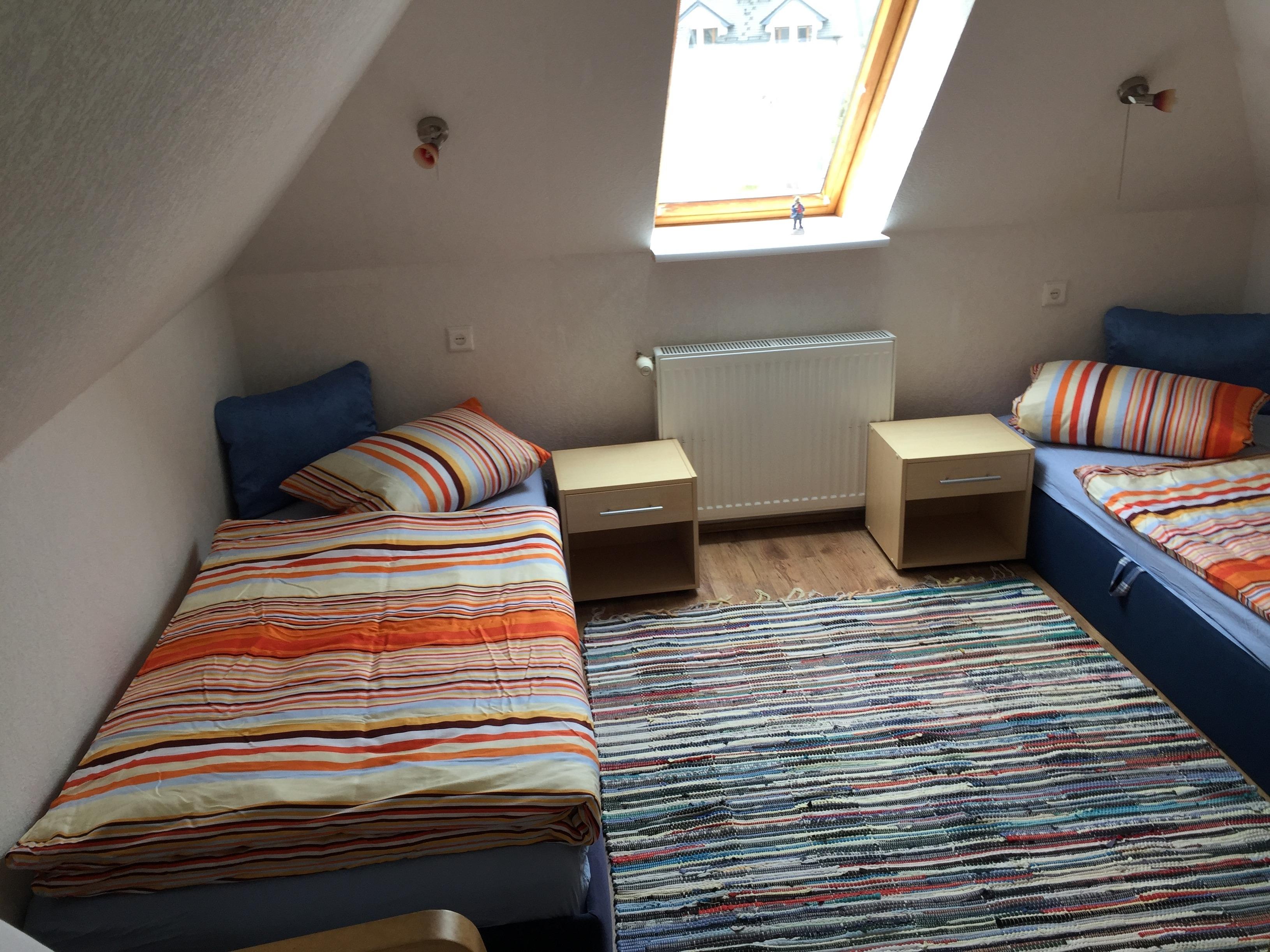 Das Ferienhaus mit großem Garten liegt am Waldrand in einem reizvollen Einfamilienhaus-Viertel. Die Lage ist ruhig, jedoch zentral, wenige Minuten vom Zentrum entfernt. Zwei Ferienwohnungen liegen im oberen Stockwerk des Hauses. Die untere Etage wird vom Gastgeber für die eigenen Ferien genutzt. Die Ferienwohnungen sind über eine separate Außentreppe zu erreichen. Jede Wohnung hat ein Wohnzimmer mit Balkon, 1 Schlafzimmer und ein Duschbad. In der Mitte der beiden Wohnungen liegt eine große Gemeinschaftsküche.