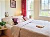Schlafzimmer mit Doppelbett (140cm x 200cm) und einem Kleiderschrank.
