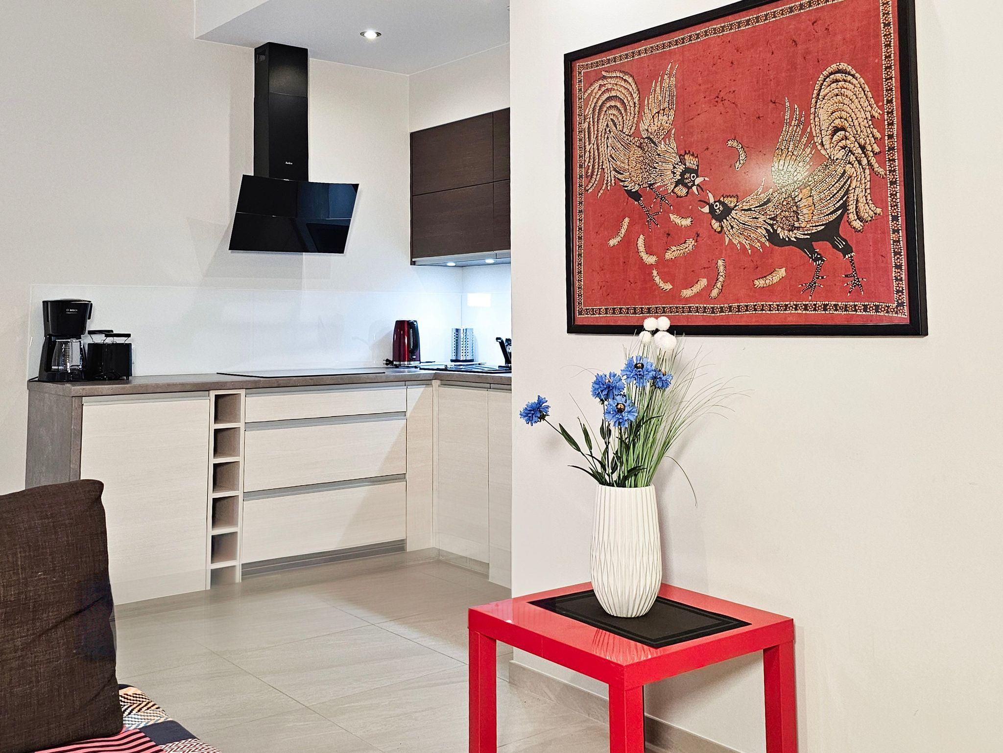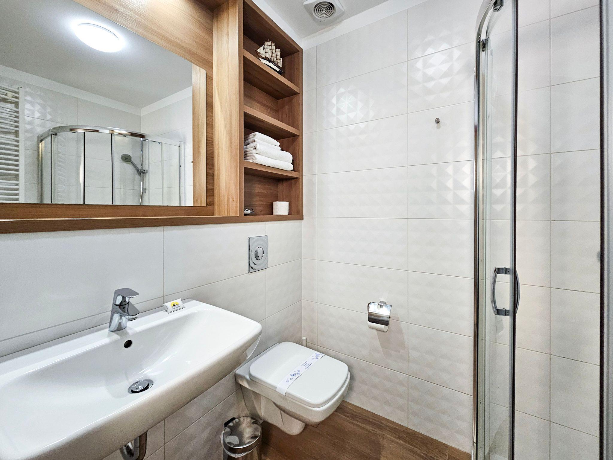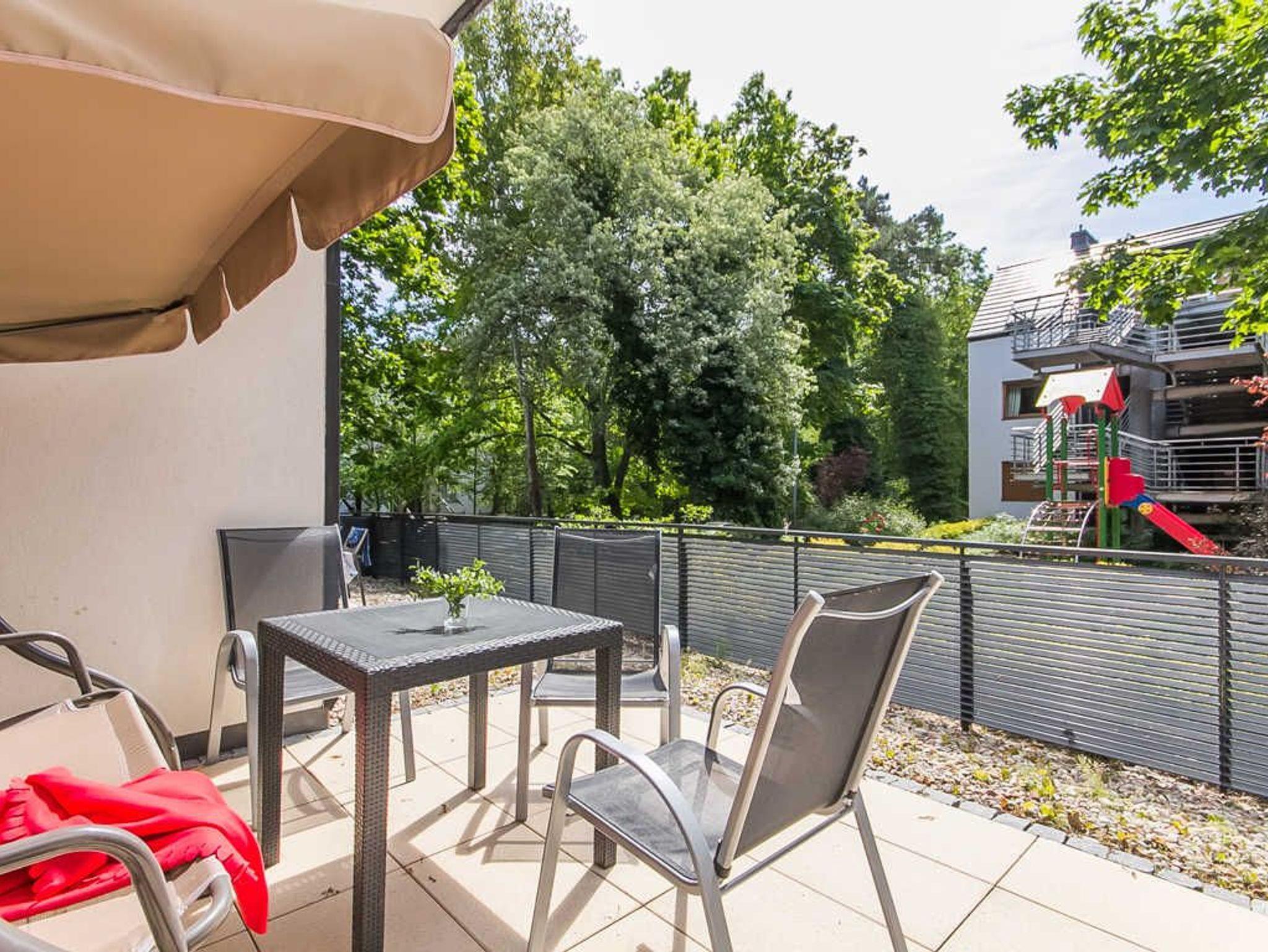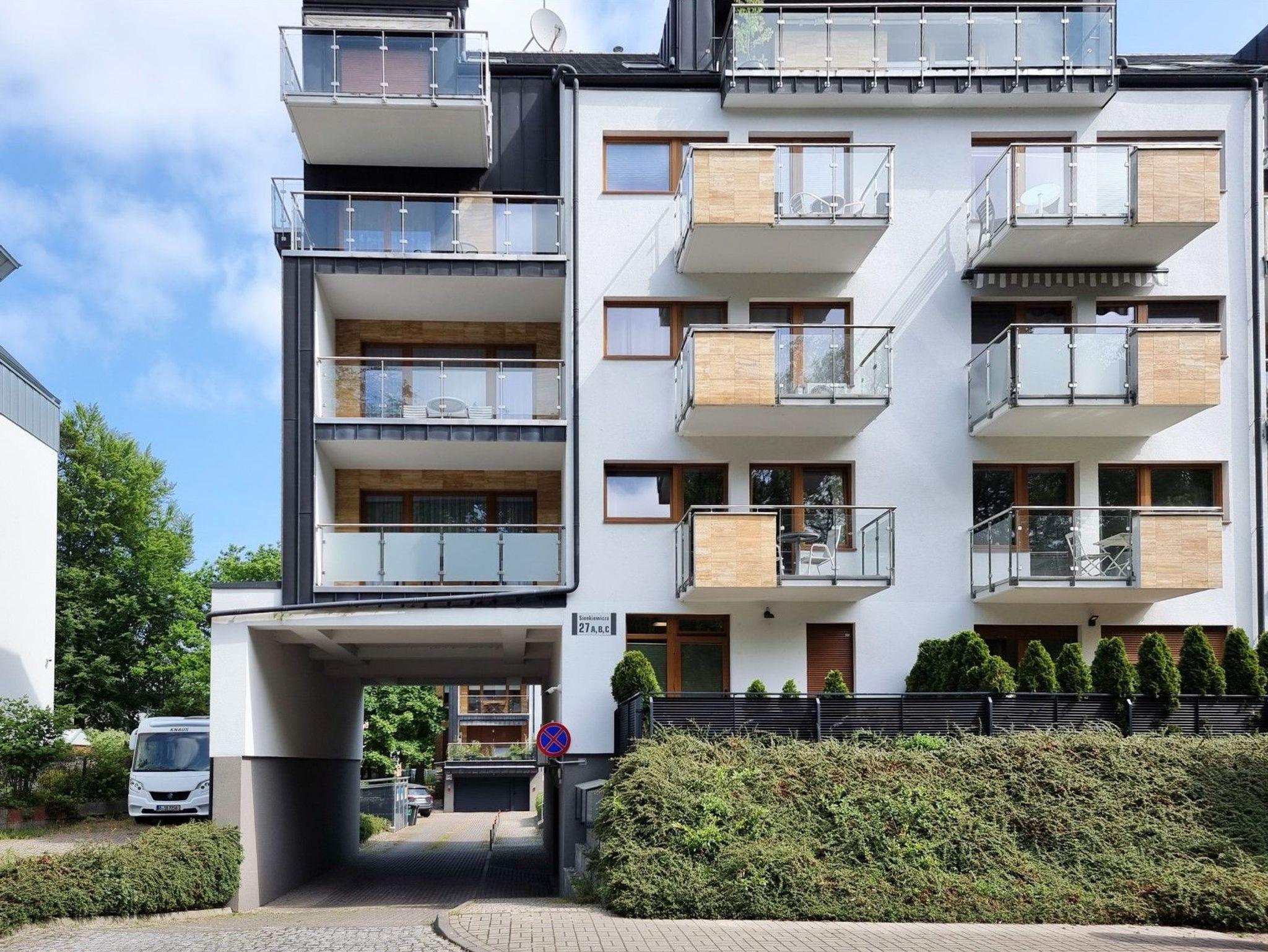 Die Ferienwohnung befindet sich im Wohnkomplex Rezydencja Sienkiewicza, im westlichen Teil des Kurviertels. Die Grüne, ruhige Umgebung, direkte Nähe zum Wald, eine kurze Entfernung zur Promenade und zum Strand (ca. 300 m) sind die Vorteile der Lage. In der Nähe gibt es ebenfalls einen kleinen Spielplatz für Kinder, Waldwanderwege, die Gesundheitspromenade, die Gradierwerke, einen Radweg entlang der 15km langen grenzüberschreitenden Promenade, die Swinemünde mit den Kaiserbädern auf der deutschen Seite der Insel Usedom (Ahlbeck, Heringsdorf, Bansin) verbindet. Ein ausgezeichneter Ort für Gäste, die Ruhe und Nähe zur Natur suchen.