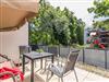 Vom Wohnzimmer aus können Sie auf die sonnige Terrasse mit Gartenmöbeln