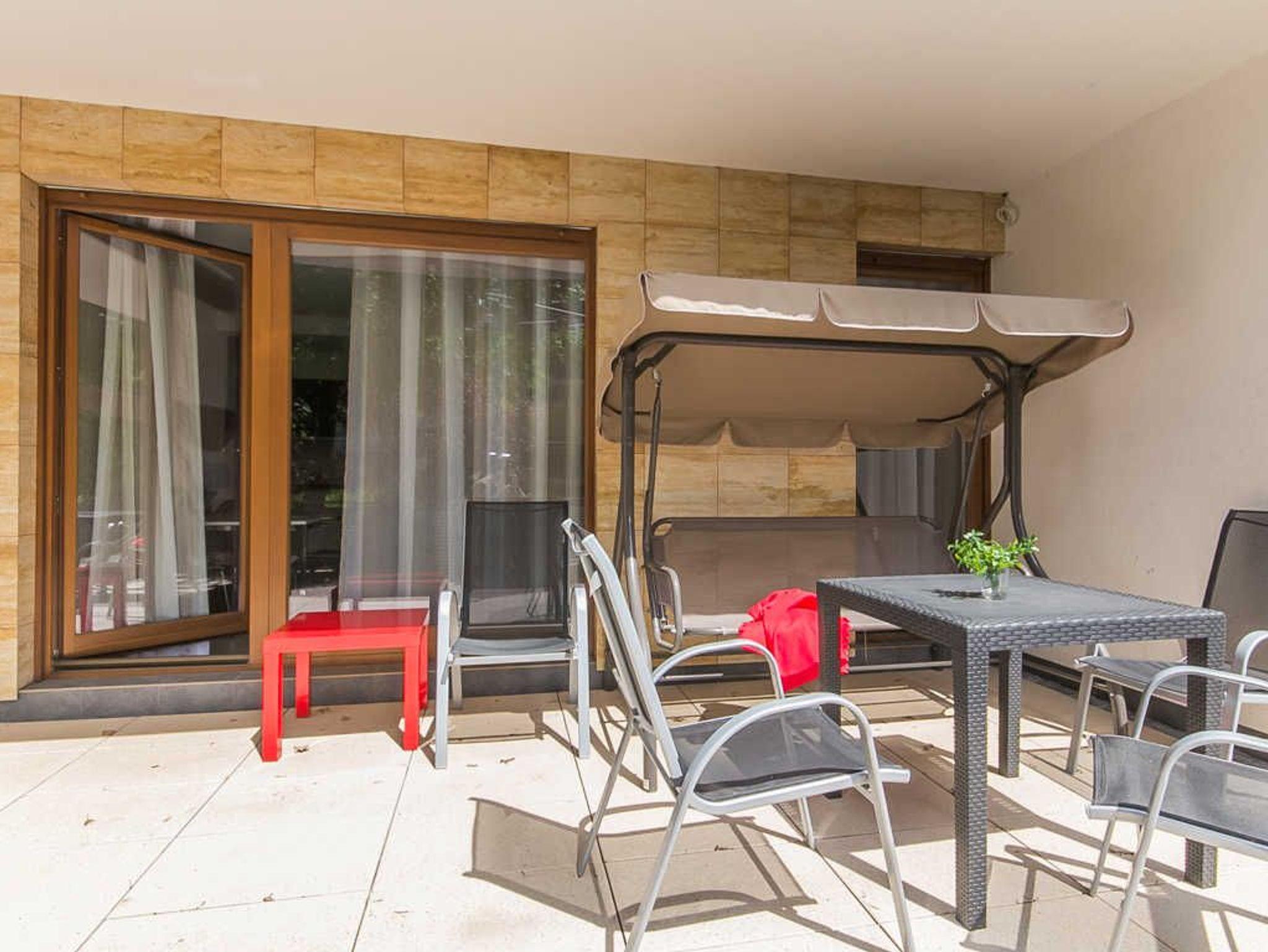 Die Fenster des Zimmers und der Terrasse sind nach Süden ausgerichtet.