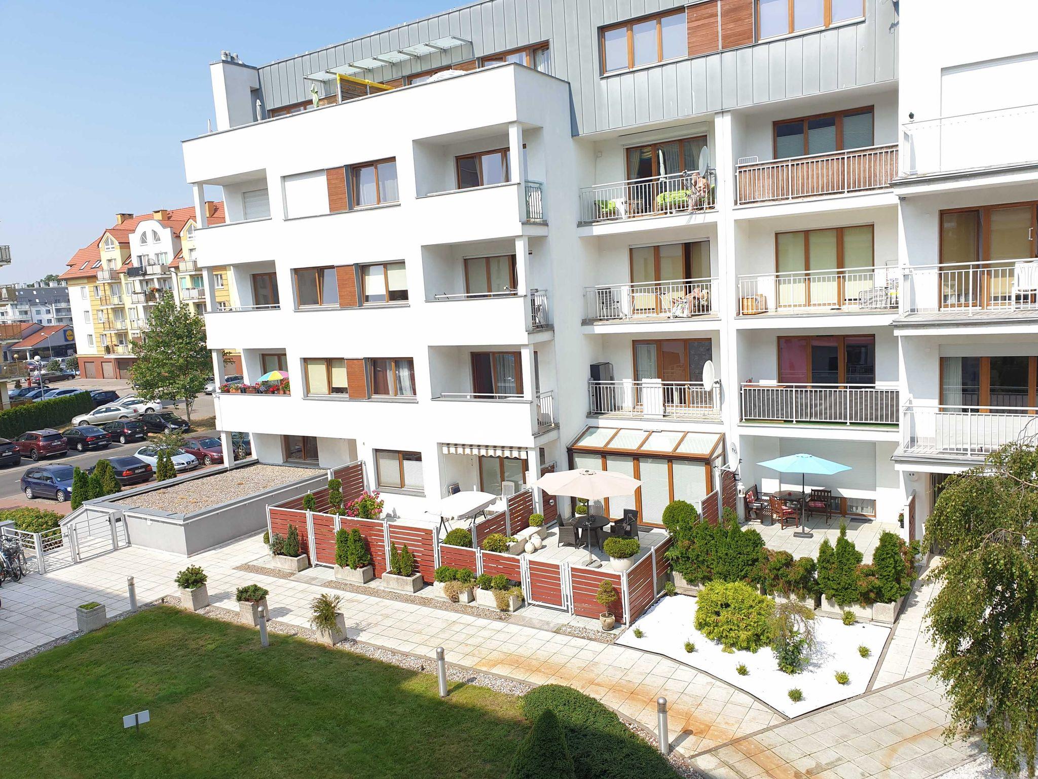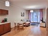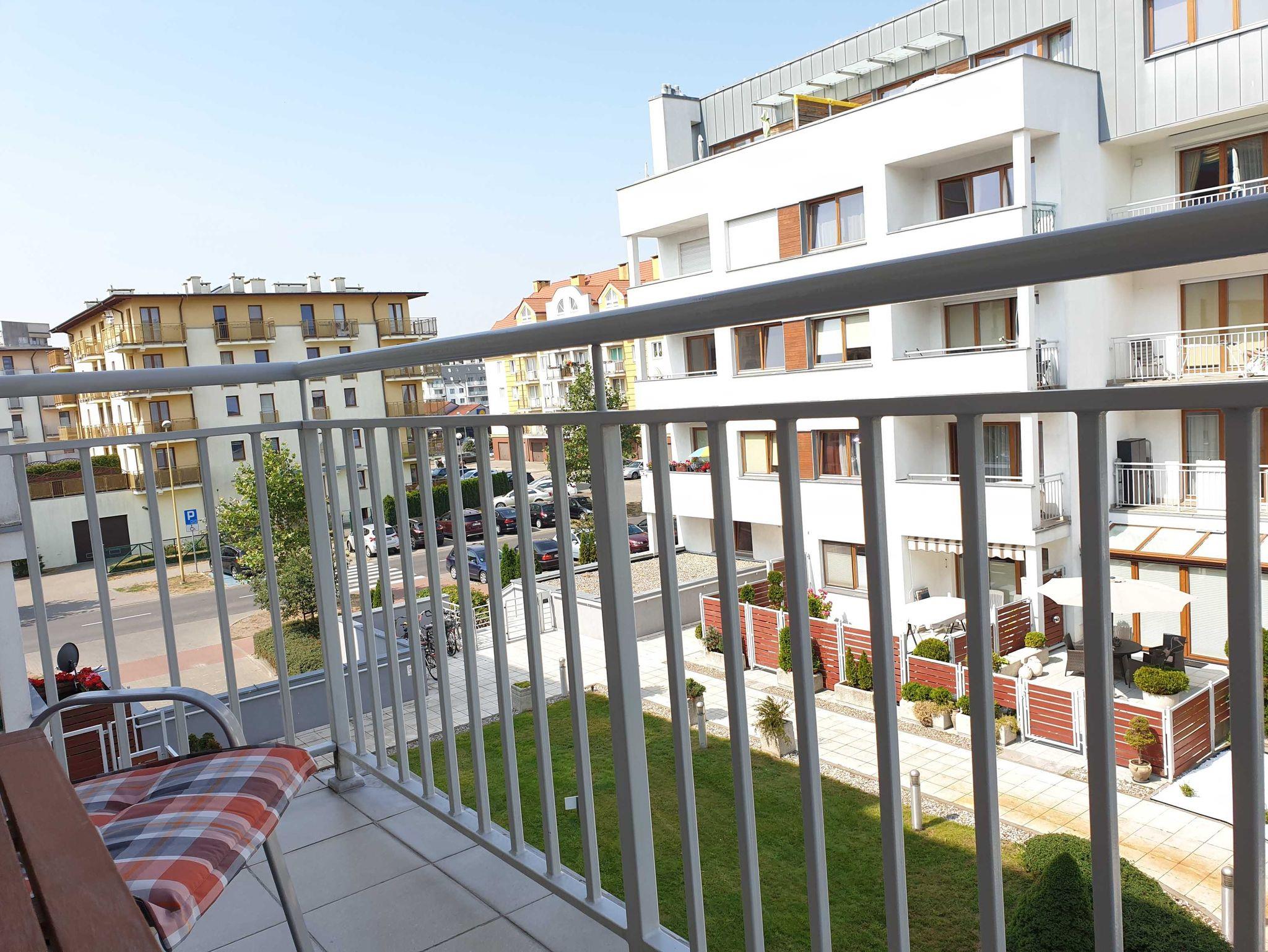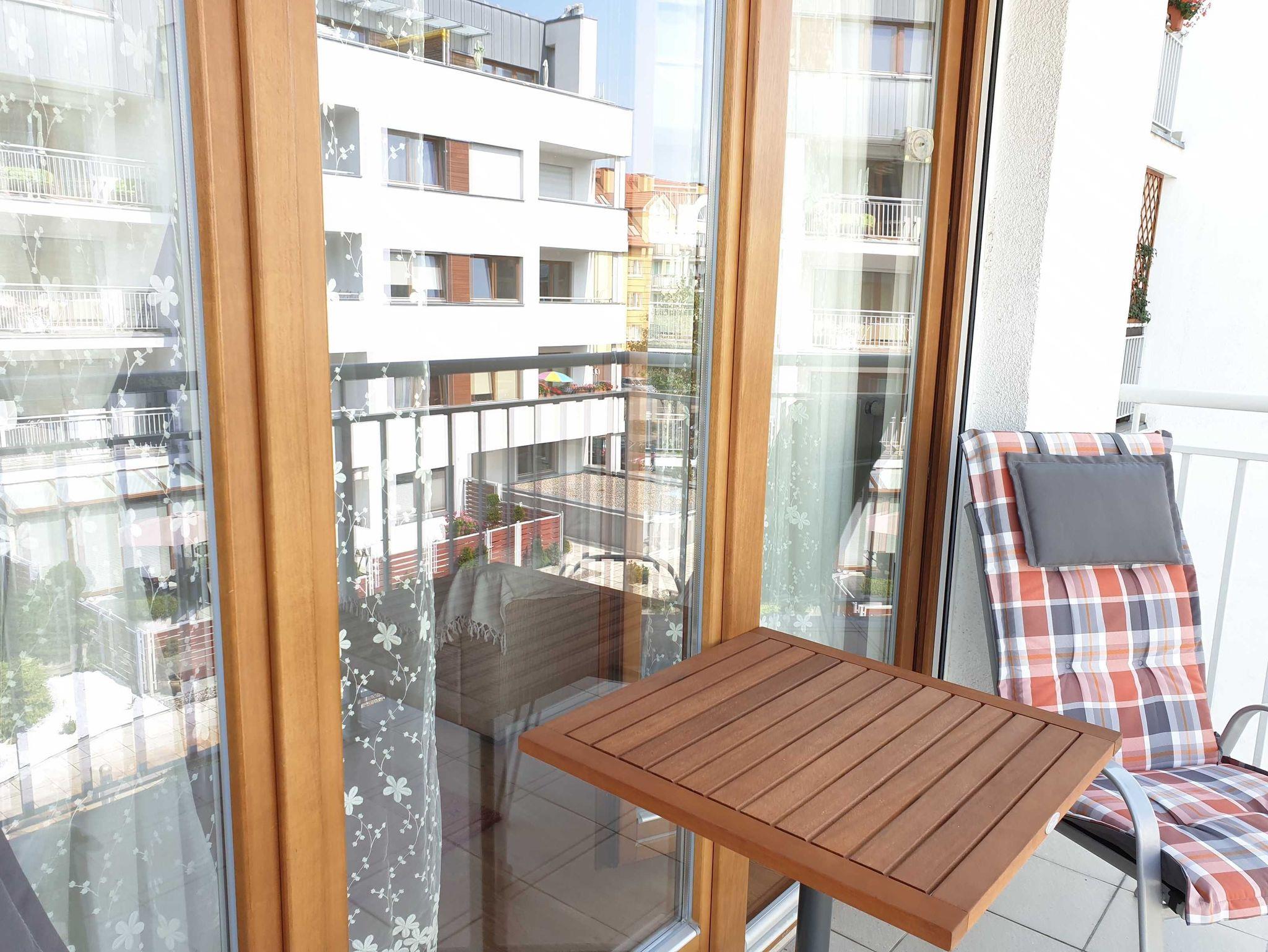 Die Ferienwohnung hat auch einen Esstisch und 4 Stühle. Das Wohnzimmer verfügt ein ausziehbares Sofa, Couchtisch und einen Sessel. Der LCD Flachbildfernseher ermöglicht es polnische Sender des Kabelfernsehers zu empfangen. Die Ferienwohnung hat einen WiFiRouter.