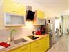 Die Küchenzeile ist mit notwendigen Geschirr und Besteck für die Zubereitung und den Verzehr von Mahlzeiten ausgestattet, ebenfalls mit einem Elektroherd mit 2 Heizflächen, einer Überlauf-Kaffeemaschine und einem Toaster.