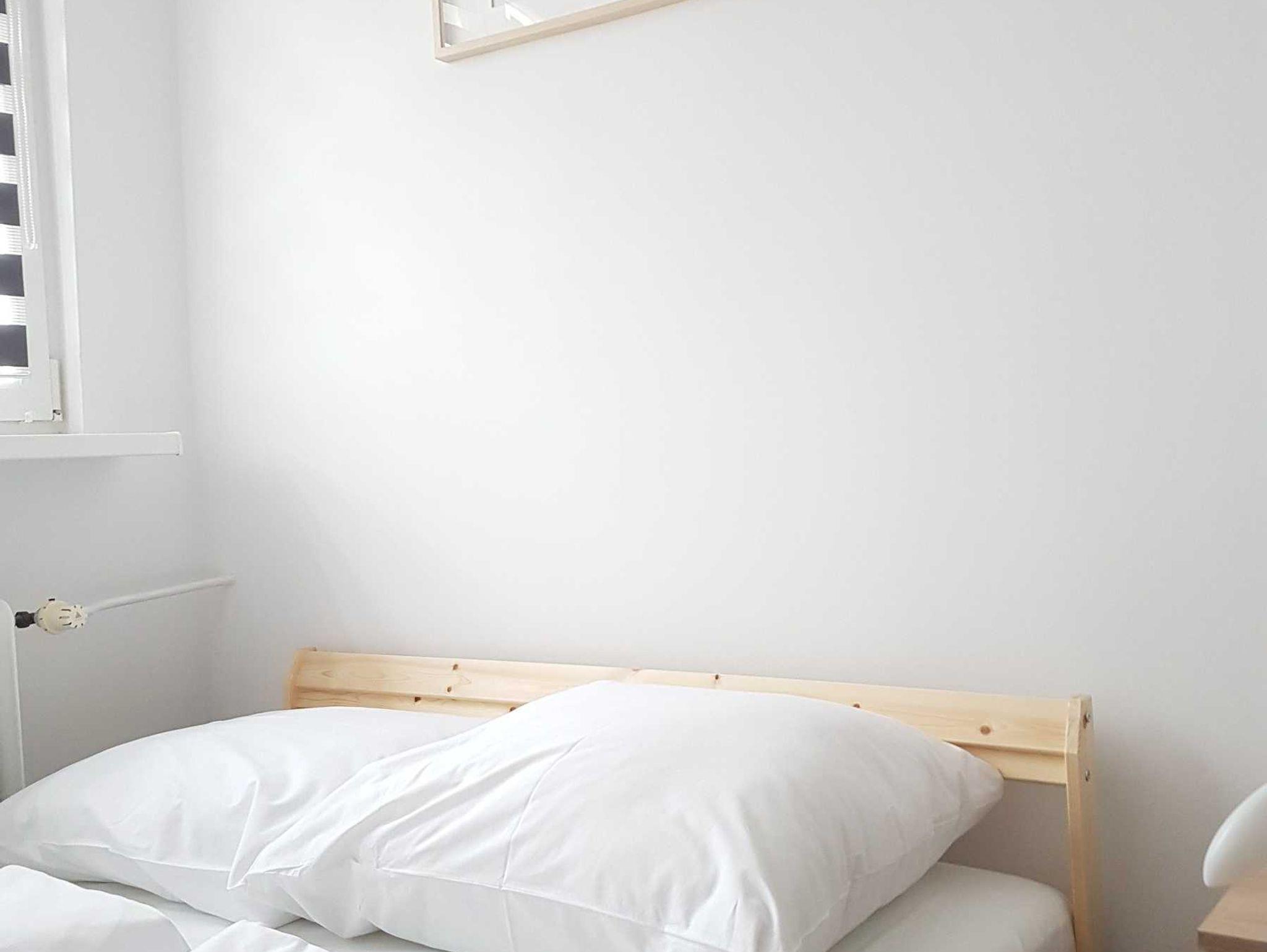 Sie besteht aus einem Schlafzimmer mit einem Doppelbett (140x200 cm) und einem Kleiderschrank, einem Wohnzimmer, einer separaten Küche sowie einem Badezimmer mit WC.