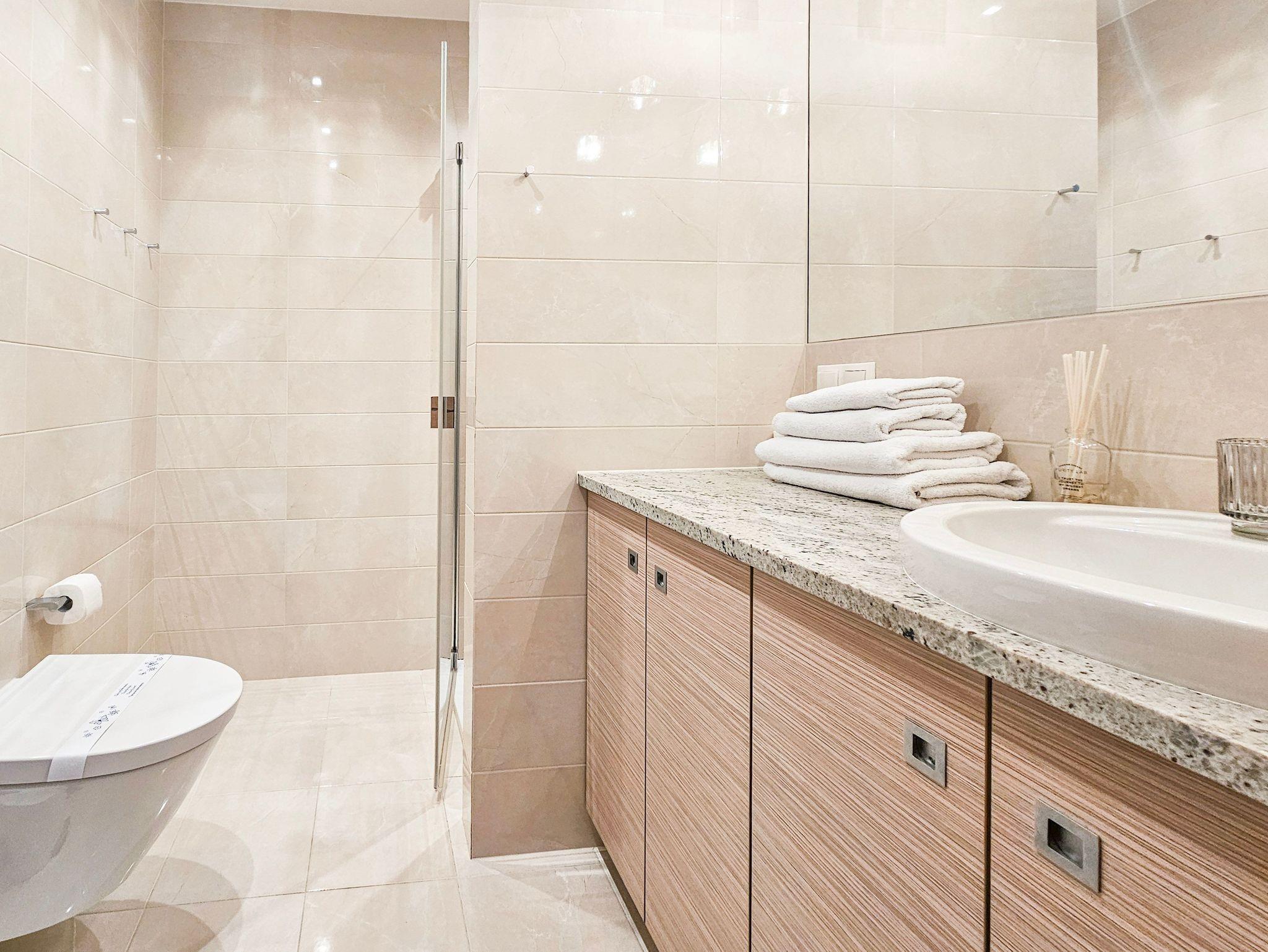 Ein geräumiges Zwei-Zimmer-Apartment, nahe am Strand gelegen, im westlichen Teil des Kurviertels von winoujcie. Es besteht aus einem Wohnzimmer mit Küchenzeile sowie einem separaten Schlafzimmer.