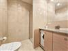 Das Badezimmer verfügt über eine Toilette, eine Duschkabine sowie eine Waschmaschine.