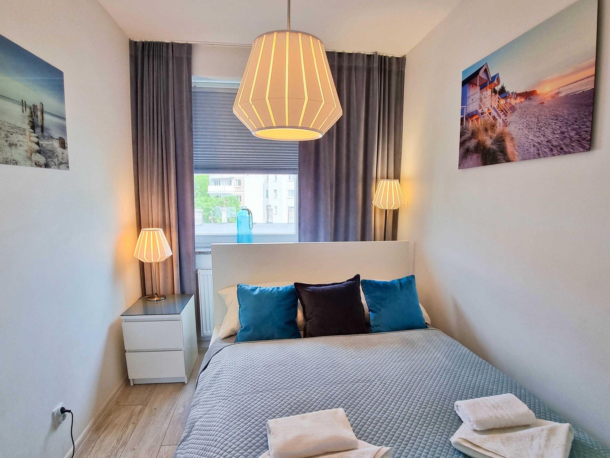 Stilvolle und elegante Dreizimmerwohnung im dritten Stock im Windrosenviertel. Wohnung im Stadtzentrum in unmittelbarer Nähe des Zdrojowy-Parks. Weniger als 10 Minuten bis zum Küstenviertel. Ideal für Touristen, die mit ihrem Haustier reisen.