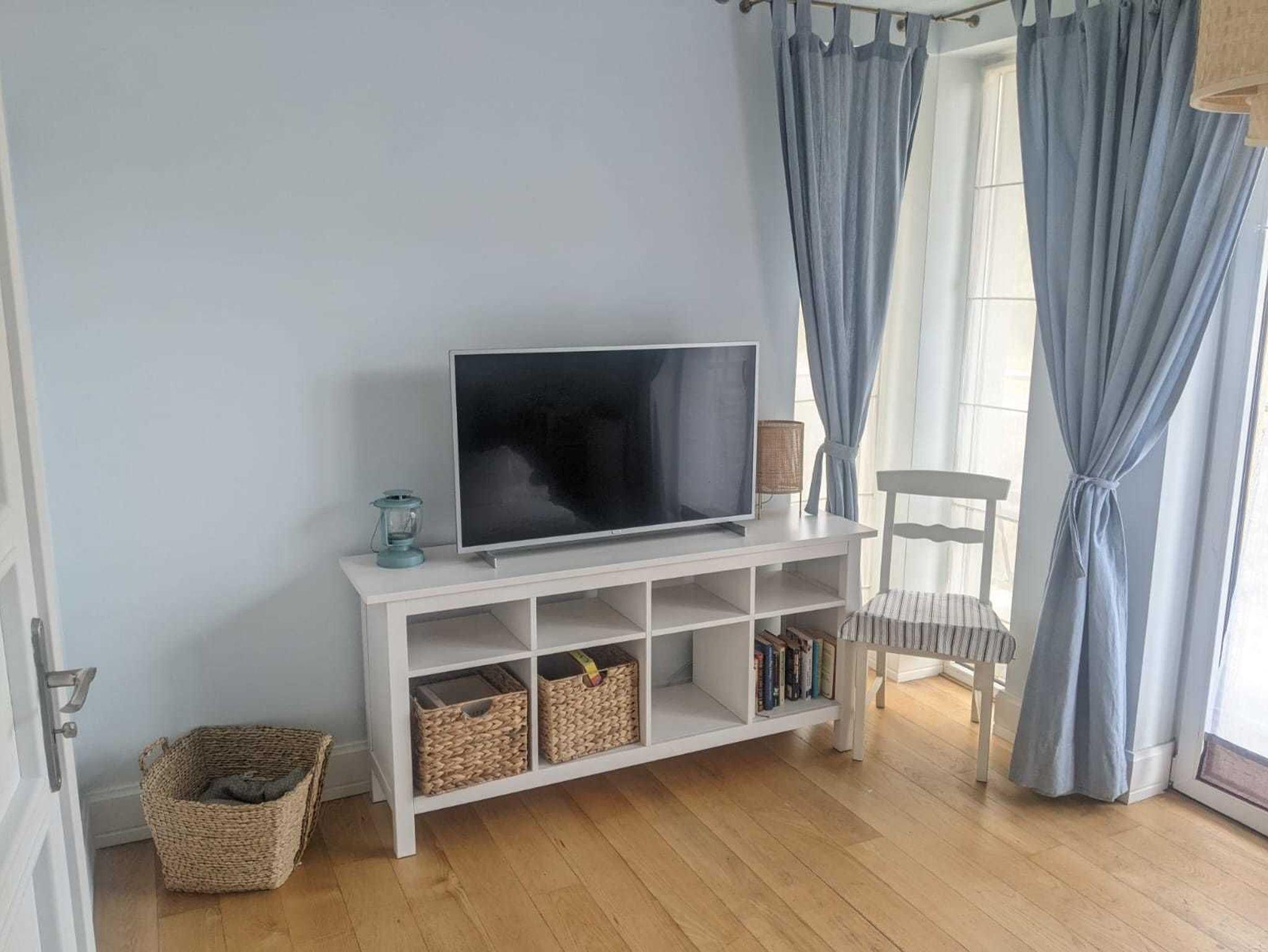 Mehrere Dutzend deutsche Fernsehkanäle können Sie über Satellit im 43-Zoll-LED-Fernseher mit eigenem Netflix-Konto empfangen. Sie haben einen kostenlosen schnurlosen Internetzugang (WLAN).