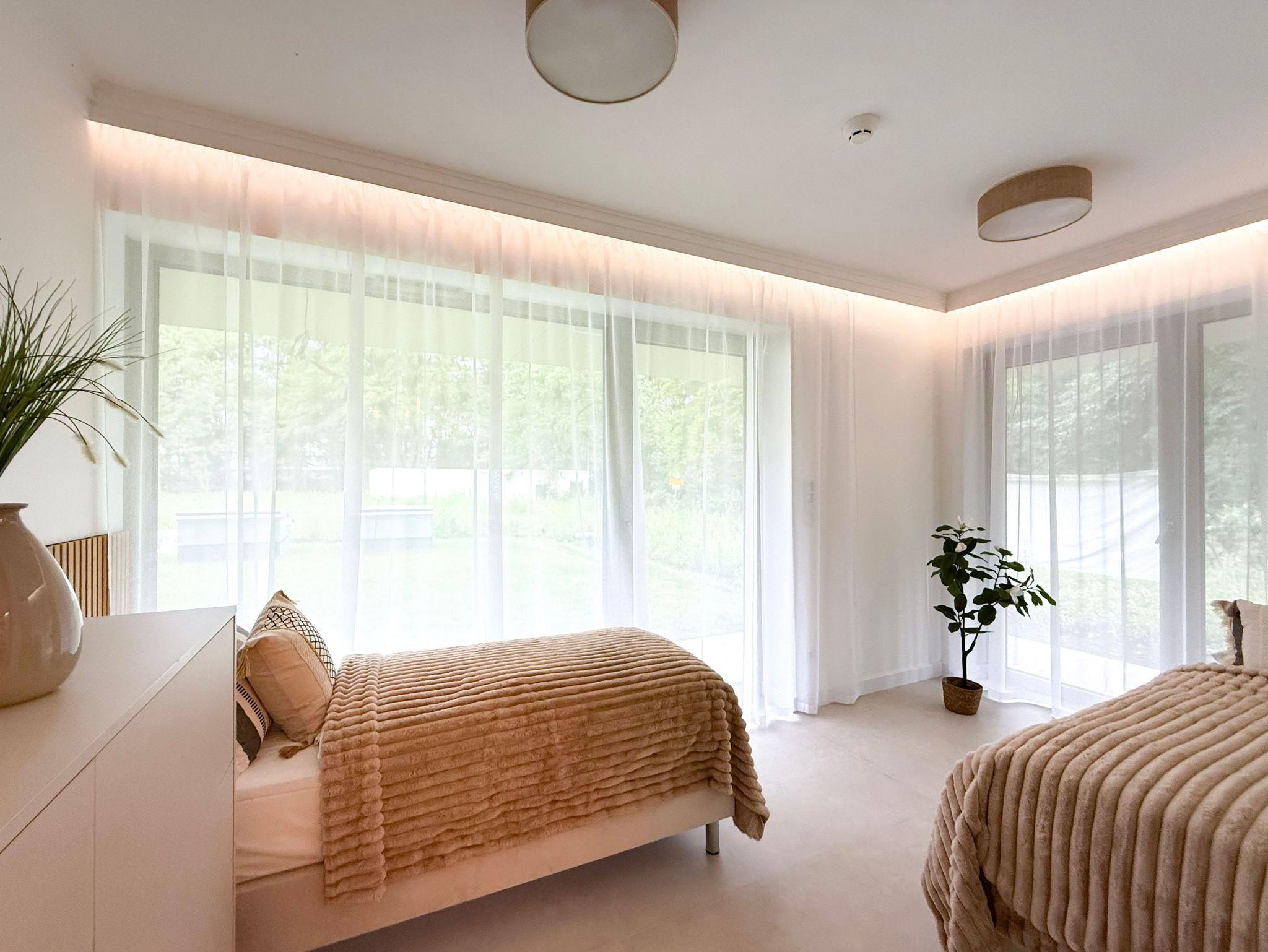 Eine moderne Wohnung im Greeneri-Komplex, direkt an der Grenze zum Kurpark gelegen. Sie besteht aus 2 Schlafzimmern, einem Wohnzimmer mit Küchenzeile und einem Badezimmer. Zur Wohnung gehört ein Stellplatz in der Tiefgarage.